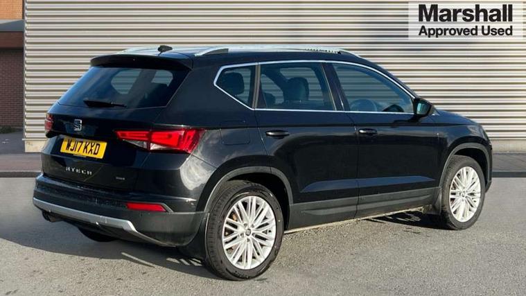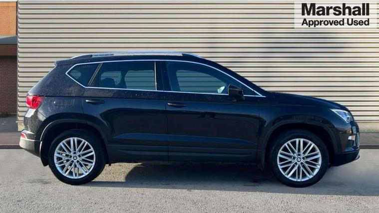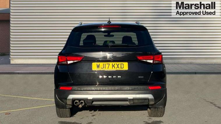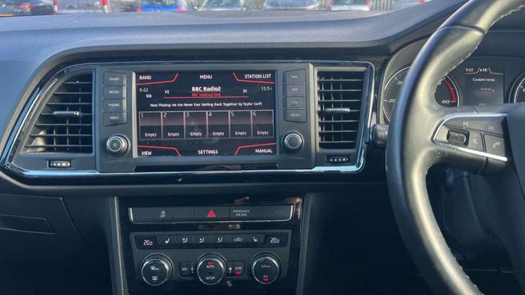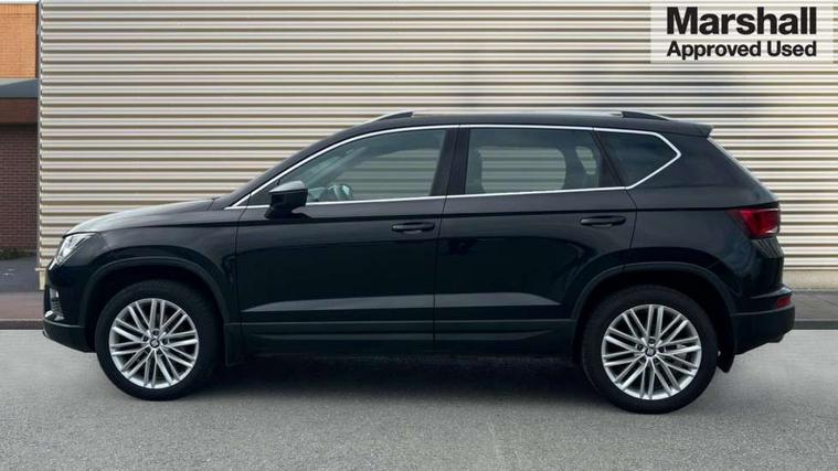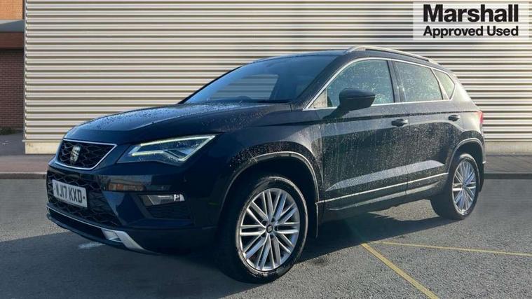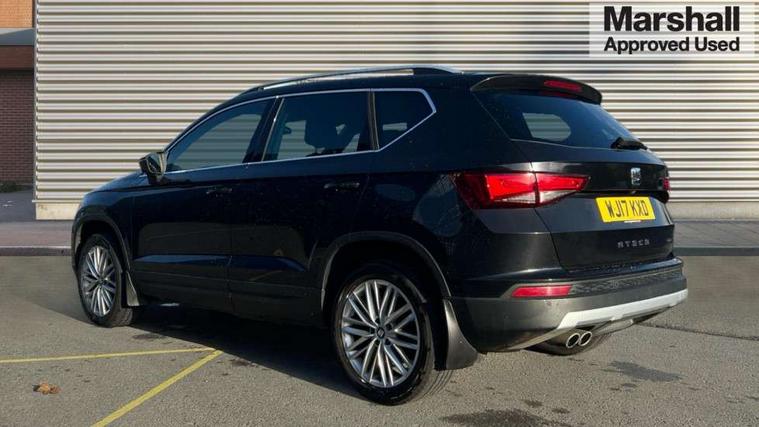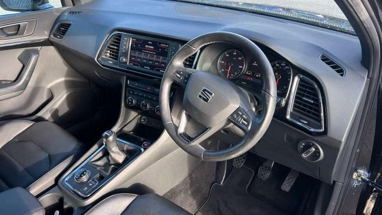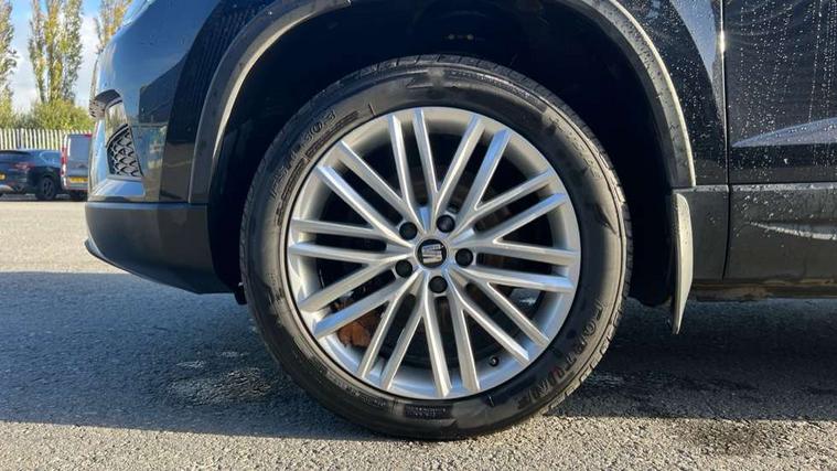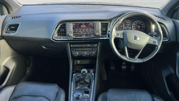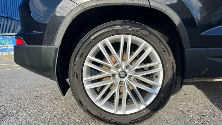 'Lights On' Reminder warning buzzer, Driver alert system, Full Link App interface, Low fuel warning light, Multi function display, Outside temperature gauge, Rear parking sensor, Rear view camera, Remote fuel flap release, SEAT Drive profile, SEAT logo boot release, Trip computer, Comfort suspension, XDS electronic differential lock, Steering wheel mounted audio/phone controls, Aluminium front door sills, Aluminium roof rails, Body colour bumpers, Body colour door handles, Body colour door mirrors, Chrome side window trim, Chromed centre radiator grille surround, Cornering front fog lights, Dark tinted rear windows, Electric folding door mirrors, Electrically adjustable and heated door mirrors, Front and rear electric windows, LED daytime running lights, LED Headlights, LED tail lights, Rear wash/wipe, Twin chromed exhaust pipes, Welcome lighting, 12V power point front, 3 height adjustable rear headrests, 60/40 split folding rear seat, Adjustable front armrest with storage compartment, Driver/passenger lumbar adjustment, Driver/passenger sunvisors with illuminated vanity mirrors, Dual zone climate control, Footwell illumination, Front cupholders x 2, Front reading lights, Front seat back storage pockets, Height adjustable driver's seat, Height adjustable front headrests, Height adjustable passenger seat, Illuminated boot, Illuminated glovebox, Isofix child seat preparation, Leather steering wheel and gear knob, Leather upholstery, Rear armrest, Rear central air outlet, Rear reading lights, Roof mounted sunglasses holder, Storage box under drivers seat, Convenience pack - Ateca, Seat Media System Plus pack - Ateca, Winter Pack - Ateca, 3x3 point rear seatbelts, ABS, Auto hold function, Automatic post collision braking, Curtain airbags, Driver/Front Passenger airbags, Drivers knee airbag, Electronic parking brake, Electronic stability control, ESP+EBA, Front and rear seatbelt reminder, Front assist including city emergency braking, Front passenger airbag deactivation, Front side airbags, Hill hold control, Predictive pedestrian protection, Tiredness recognition system, Traction control, Tyre pressure monitoring system, Immobiliser, Locking wheel bolts, Remote central locking, Volumetric alarm with back up horn, Chrome effect dashboard facia,
