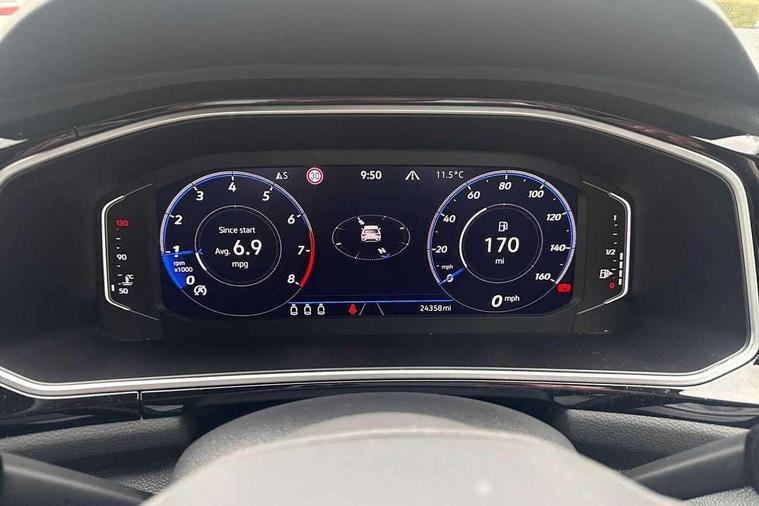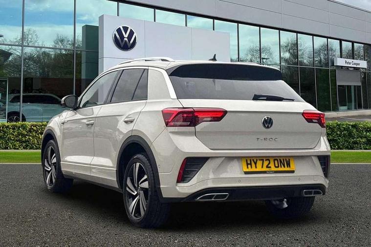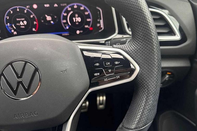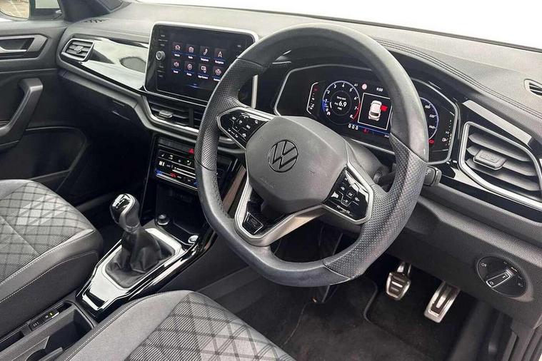 10.25" Digital cockpit pro, Bluetooth mobile phone interface, Driver alert system with fatigue detection, Driver tips and journey analysis, Emergency call service, Lane keeping system Lane Assist, Modified key software - reduce switch off time for key status change to Long no motion, Online services, Park assist including front and rear parking sensors, Service interval indicator, Tailgate/trunk lid release from outside, Think blue trainer driver tips and journey analysis, Warning sound and light for front seatbelts unfastened, Wireless app connect, Battery regeneration during braking, Start/stop function with battery regeneration, Diversity antenna for FM reception, Front and rear 6 speakers, Music playback - MP3, WMA and AAC files, Premium USB cable in choice of either Apple or Android smartphone compatibility, SD card slot, Simultaneous pairing of 2 compatible mobile devices, Title and cover art display, We Connect and We Connect Plus functionality, 3rd brake light, Auto dimming interior rear view mirror, Automatic hazard lights activation under emergency braking, Automatic headlight control with LED separate daytime running lights with coming/leaving home function, Extended roof spoiler, Exterior mirrors aspherical on driver side, convex on front passenger side, External USB type C socket and charging sockets, Front windscreen wiper with intermittent wipe and 4 position delay, Heated rear window, LED Plus headlamps, LED rear combination lamps, LED rear number plate lights, LED tail lamp rear comination lamps, Power windows with comfort operation and circuit breaker, R-Line design body coloured bumpers, Rain sensor, Rear exhaust tailpipe, Rear fog light on one side and reversing lights on both sides, Rear side wing doors, Rear wash/wipe with intermittent wipe setting, Remote electrically foldable door mirrors, puddle lights and reverse activated passenger's door mirror, 12V power socket in centre console, 3 rear head restraints, 3 seat bench in 2nd row, 4 load lashing points in luggage compartment, Air care climatronic air conditoning system with active combination filter and 2-zone temperature control, Black roof lining, Chrome plated radiator grille inserts, air vent surrounds and light switch surrounds, Door and side trim panel with leatherette insert, Drawer under drivers seat, Front + rear carpet mats, Front centre armrest, Front cupholders x 2, Front footwell illumination, Front reading light, Front scuff plates with R logo, Instrument lighting, white adjustable panel illumination, Interior ambient lighting and surround lighting, Interior light delay, Isofix child seat preparation, Leather gearshift handle, Load-through provision with cup holder when folded down ('Unsplit rear seat bench, split folding backrest, with centre armrest), Luggage compartment lighting, Single front passenger seat, Stainless steel pedals, Storage compartment in left and right luggage area, Storage compartment in rear doors, Storage compartments in driver and front passenger doors, Sunvisors with illuminated vanity mirrors, Variable boot floor, height adjustable and removable, Driver assistance pack without proactive passenger protection - T-Roc, 3 point height adj front seatbelts + pretensioners, 3 point seatbelts in outer rear with ECE label, ABS, Child locks on rear doors, Driver and front passenger airbag with front passenger airbag deactivation, Driver and front passenger safety-optimised head restraints, Drivers seatbelt reminder, Electronic parking brake, Electronic Stability Control (ESC) inc EDL (Electronic Differential Lock) and ASR (Traction Control), Front and rear passengers curtain airbag system including front side airbags, Front assist with city emergency braking and pedestrian monitoring, Front seat side impact airbags, Hill start assist, Predictive pedestrian protection, Rear disc brakes, Single tone horn, Tyre pressure loss indicator, Volkswagen roadside assistance, Alarm with interior protection, Anti-theft alarm system with interior monitoring, backup horn, and towing protection, Remote central locking with SAFELOCK, radio remote control with 2 remote control folding keys, Trims for alloy wheels,