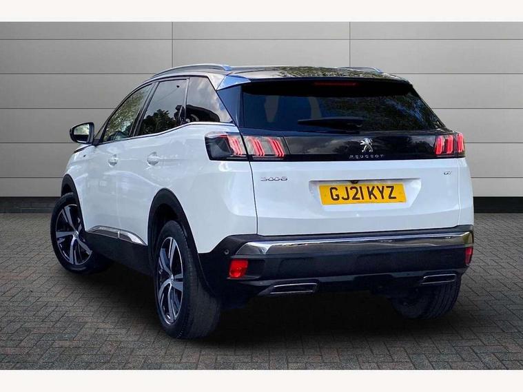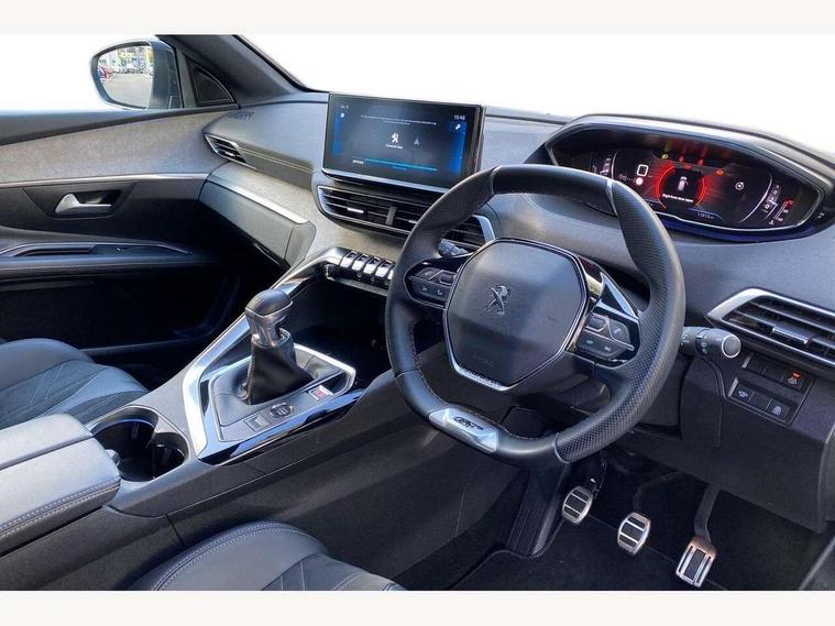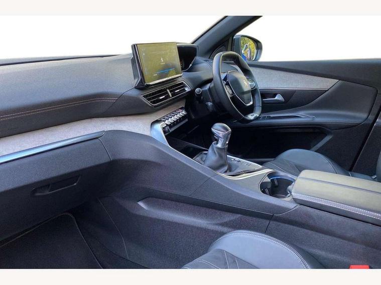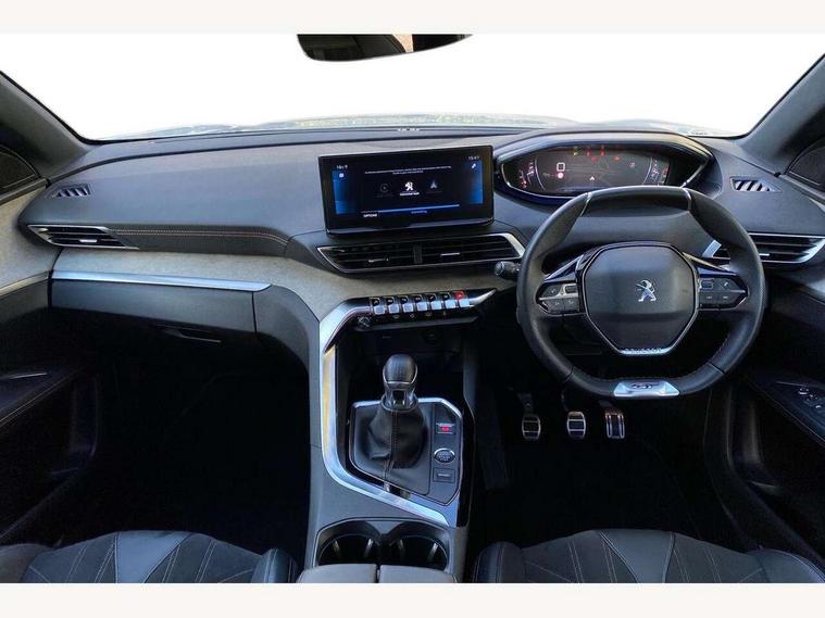 3D connected navigation with 10" HD touchscreen + voice recognition system, Bluetooth telephone facility, Driver attention alert system, Extended traffic sign recognition, Exterior temperature indicator with ice warning, Front parking sensors, Lane departure warning system, Mirror screen with mirror link, apple carplay and android auto, Multi function trip computer, PEUGEOT i-Cockpit with 8.0" capacitive touchscreen in centre console, Peugeot i-cockpit with compact multi-function sports steering wheel, PEUGEOT i-Cockpit with configurable 12.3" Head-up digital instrument panel, PEUGEOT SOS and assistance, Rear parking aid, Rear passenger USB charging sockets (x2) (type A), Speed limit recognition and recommendation, Dynamic stability control and electronic anti-skid system, Stop/start function, DAB Digital radio, USB socket, Automatic hazard light activation upon heavy brake application, Automatic triggered rear windscreen wiper in reverse gear, Body colour door handles, Body colour rear roof spoiler with stainless steel edging trim, Body protectors (bottom of front and rear bumpers + wheel arches + protection at bottom of doors) in black, Chrome front wing trim, Chrome rear bumper facia, Dark tinted rear side windows + tailgate window, Electric operated/heated door mirrors, Fog Mode, Frameless electrochrome rear view mirror, Front door sills with stainless steel insert featuring 'PEUGEOT' lettering, Front windscreen wiper with magic wash cleaning system, Full LED headlights with LED fog lights with static cornering function, Gloss black B and C pillar and aerodynamic deflector trim, Gloss black front bumper air scoops, Gloss black rear cluster connecting strip, GT emblem in satin copper (front wings and tailgate), Headlights left on audible warning, Heated rear windscreen with integrated antenna, LED daytime running lights, LED rear number plate lighting, LED side indicator lights integrated into door mirrors, LED third brake light, Nera black door mirrors, One touch electric front/rear windows with pinch protection, Power folding door mirrors with blind spot detection indicator and auto dipping function in reverse gear, Radiator grille in chrome edge trim and facets, Rear LED Peugeot signature 'Claw Effect' lights, Rear side wing doors, Stainless steel roof arches, Twin exhaust tailpipe, 1/3 to 2/3 split folding rear seats, 12V Sockets in dashboard, rear cabin and load area, 2 cupholders in front centre console, 2x Rear coat hooks, 3x Isofix child seat fittings in the front passenger and outer rear seats, 4 Grab handles retractable and damped, Aikinite stitching in armrest, gear lever and dashboard facia, Aluminium pedals, Blue ambient lighting for connecting zone, Blue ambient lighting to front door panels, central storage and cupholders, Centre front armrest with butterfly wing opening and illuminated storage compartment, Dual zone automatic climate control, Electric power steering with reach and rake adjustable steering column, Flocked front door pocket interior with blue ambient lighting, Flocked glovebox interior, Foldable front passenger seat, Footwell illumination, Front interior light with 2 reading spotlights and rear interior light with timer, Front seat back map pockets, Gear shift indicator, Height adjustable front seats, Illuminated glovebox, Individual left and right controls in boot for seat folding, LED interior lighting in storage spaces and load area, Mistral floor mats with Aikinite contrast stitching, Mistral full grain perforated leather steering wheel with aikinite stitch detail and satin chrome 'GT' emblem, Rear bench seat with central armrest and ski hatch, Rear centre console ventilation system, Roof lining - Mistral black, Satin chrome dashboard trim, Satin chrome digital instrument panel and touchscreen trim, Satin chrome front door panel recess trim, Satin chrome interior door handles, Satin chrome scorpion's tail and toggle switch trim, Seatbelt not fastened audible and visual alert for front seats, Seatbelt unfastened on the move audible and visual alert for front and rear seats, Sunvisors with illuminated vanity mirrors, Two position boot floor, Drive assist pack - 3008, Driver sport pack - 3008, Visibility pack - 3008, 3x Rear three-point retractable seatbelts with force limiters in the outer rear seats, ABS (Anti-lock Braking System) with EBD (Electronic Brakeforce Distribution) and EBA (Emergency Braking Assistance), Adaptive driver and front passenger airbags with passenger airbag deactivation function, Driver and front passenger side airbags, Electric child locking functionality on rear windows and doors, Electric parking brake, Front and rear curtain airbags, Front optimised safety headrests and 3 x rear retractable headrests with height adjustable, Front three point retractable seatbelts with pre tensioners and force limiters, Front ventilated disc brakes and rear disc brakes, Hill start assist, Two tone horn, Automatic door locking when moving off, Electronic immobiliser, Perimetric and volumetric alarm with lift and tilt sensor, Peugeot Open and Go System, Remote control central locking with two plip keys, Grey greval alcantara dashboard and door panel inserts, Puncture repair kit including compressor, sealant cartridge and towing eye,