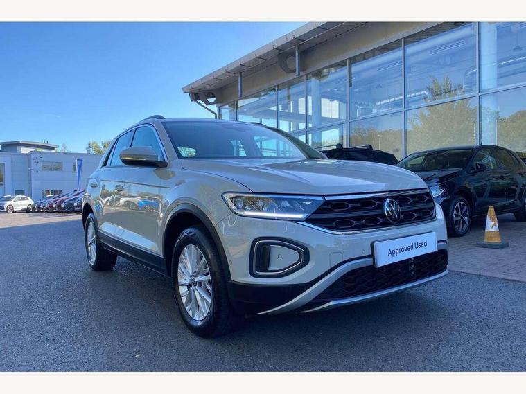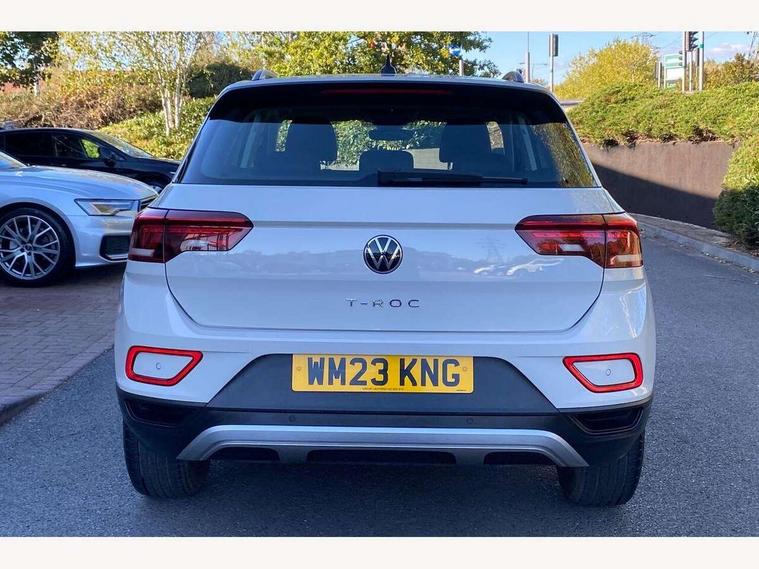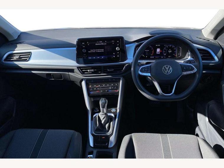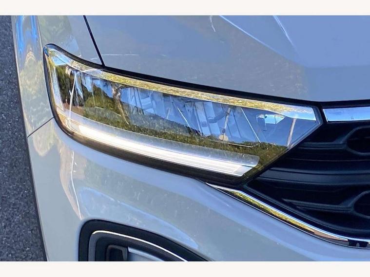 Bluetooth mobile phone interface, Driver alert system with fatigue detection, Driver tips and journey analysis, Emergency call service, Lane keeping system Lane Assist, Modified key software - reduce switch off time for key status change to Long no motion, Online services, Park assist including front and rear parking sensors, Power assisted speed sensitive steering, Service interval indicator, Tailgate/trunk lid release from outside, Think blue trainer driver tips and journey analysis, Warning sound and light for front seatbelts unfastened, Wireless app connect, Battery regeneration during braking, Front shock absorption, Rear shock absorption chassis with increased ride height, Start/stop function with battery regeneration, DAB Digital radio, Diversity antenna for FM reception, Music playback - MP3, WMA and AAC files, Premium USB cable in choice of either Apple or Android smartphone compatibility, SD card slot, Simultaneous pairing of 2 compatible mobile devices, Title and cover art display, We Connect and We Connect Plus functionality, 3rd brake light, Auto dimming interior rear view mirror, Automatic hazard lights activation under emergency braking, Automatic headlight control with LED separate daytime running lights with coming/leaving home function, Black roof rails, Body coloured bumpers and radiator grille with chrome trim and front fog lamps with chrome bezel, Body coloured exterior mirror housings and door handles, Extended roof spoiler, Exterior mirrors aspherical on driver side, convex on front passenger side, External USB type C socket and charging sockets, Front windscreen wiper with intermittent wipe and 4 position delay, Heated rear window, LED rear combination lamps, LED rear number plate lights, LED tail lamp rear comination lamps, Power windows with comfort operation and circuit breaker, Rain sensor, Rear exhaust tailpipe, Rear fog light on one side and reversing lights on both sides, Rear side wing doors, Rear wash/wipe with intermittent wipe setting, Remote electrically foldable door mirrors, puddle lights and reverse activated passenger's door mirror, 12V power socket in centre console, 3 rear head restraints, 3 seat bench in 2nd row, 4 load lashing points in luggage compartment, Air care climatronic air conditoning system with active combination filter and 2-zone temperature control, Ambient lighting with mirror logo projection, Cloth upholstery, Door and side trim panel in cloth, Drawer under drivers seat, Driver/front passenger seat height adjustment, Front centre armrest, Front comfort sports seats, Front cupholders x 2, Front reading light, Instrument lighting, white adjustable panel illumination, Interior light delay, Isofix child seat preparation, Leather gearshift handle, Load-through provision with cup holder when folded down ('Unsplit rear seat bench, split folding backrest, with centre armrest), Luggage compartment lighting, Lumbar support for driver's and front passengers seat, Non-folding front passenger seat backrest, Single front passenger seat, Storage compartment in left and right luggage area, Storage compartment in rear doors, Storage compartments in driver and front passenger doors, Sunvisors with illuminated vanity mirrors, Variable boot floor, height adjustable and removable, Driver assistance pack without proactive passenger protection - T-Roc, 3 point height adj front seatbelts + pretensioners, 3 point seatbelts in outer rear with ECE label, ABS, Child locks on rear doors, Driver and front passenger airbag with front passenger airbag deactivation, Driver and front passenger safety-optimised head restraints, Drivers seatbelt reminder, Electronic parking brake, Electronic Stability Control (ESC) inc EDL (Electronic Differential Lock) and ASR (Traction Control), Front and rear passengers curtain airbag system including front side airbags, Front assist with city emergency braking and pedestrian monitoring, Front disc brakes, Front seat side impact airbags, Hill start assist, Predictive pedestrian protection, Rear disc brakes, Single tone horn, Tyre pressure loss indicator, Volkswagen roadside assistance, Alarm with interior protection, Anti-theft alarm system with interior monitoring, backup horn, and towing protection, Remote central locking with SAFELOCK, radio remote control with 2 remote control folding keys, Pewter matt decorative inserts for intrument panel, centre console and door panels at the front, Trims for alloy wheels,