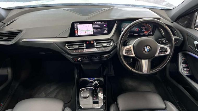 Active guard plus, Attentiveness assist, BMW ConnectedDrive online services, BMW Teleservices, Check Control warning system for monitoring of lights and door/luggage compartment open warning, Cruise control with speed limiter, Eco pro mode, Front axle single joint with specific axle kinematics to minimise drive influences on steering + provide increased rigidity agile driving behaviour, Integrated owners handbook, Lane departure warning system, Oil sensor for level and grade, On board computer, Optimum shift indicator, Personal Profile, Pull away assistant, Rigidly mounted rear subframe - Multi link construction with separate spring / damper configuration and excellent driving characteristics, Speed limit Info including no-overtaking indicator, Aluminium lightweight construction, Anti roll bar front and rear, Balancer shaft, Double VANOS twin scroll turbocharging system, Drive Performance Control, Electronic differential lock, High precision injection, M sport suspension, Petrol Particulate Filter, Twin tube gas filled shock absorbers with degressive characteristic curve, VALVETRONIC engine management, DAB Digital radio, Auto dimming rear view mirror, Automatic headlight beam throw control, Automatic windscreen wipers and automatic headlight, Body colour door handles, Body colour mirror caps, Body colour roof trims, Chrome 'M' logo side designation, Chrome exhaust twin tailpipes round 90mm in left, Chrome kidney grille frame with Satin Aluminium struts, Direction indicator side lights in exterior mirrors, Electrically adjustable exterior mirror with mirror adjustment switch on drivers armrest and aspheric on driver side, convex on passenger side, Fading support, Folding side mirrors with auto dimming/folding wing mirrors with auto dimming, Follow me home headlights, Front and rear bumper system with replaceable deformation elements, Front and rear electric windows with open and close fingertip control, anti trap facility and comfort closing, Front door sill finishers in black plastic with M designation in metallic look, Green tinted heat protection glazing, High gloss shadowline window frame, Recess cover mirror frames and B/C pillar embelisher trim, High level third brake light, Integrated front windscreen with washer jets, LED daytime running lights, LED eyebrow turn indicators, LED front fog lights, Lightweight engineering, Matt black air guide grilles, Matt black wheel arch trim, Model designation on electric bootlid, Nearside reverse light in rear light cluster, Preparation for high beam assistant, Rear fog lights, Rear side wing doors, Rear window wiper, Shark fin antenna, Trailer stabilisation logic, Visible VIN plate, Welcome lighting, 12V power socket in front centre console with blanking plug, 3 rear seat head restraints, 3 seat bench in 2nd row, 3 spoke sports leather steering wheel with black leather and stitching, pearl chrome decorative finish, specific M Badge, Anthracite headlining, Black boot net with lashing eyes, Cargo function on 2nd seat row, Child seat ISOFIX attachment for two outer rear seats and front passenger seat with anchorage points, Conditioned based service, Driver and front passenger backrest net on rear, Driver and front passenger seat heating, Driver side folding compartment in instrument panel, Folding rear clothes hook, Four grab handles integrated in roof lining, Front and rear door pockets with bottle holders, Front and rear side armrest integrated into door trim, Front armrest, Front sports seats, Glove compartment, Height adjustable front head restraints, Luggage compartment for bag hooks on left and right, foldable luggage compartment liner and four lashing eyelets, Manual adjust steering wheel, Multi-function controls for steering wheel, Single front passenger seat, Storage compartment in centre console, Storage compartment in luggage compartment, Stowage of the parcel shelf in luggage compartment trim, Sun visors with vanity mirrors and insert tab, Two front centre console cupholders, Two zone automatic air conditioning, Type C two USB ports in rear centre console, Velour floor mats, Additional interior lighting pack - 1 Series, BMW live cockpit professional pack- 1 Series, Connected pack professional - 1 Series, Interior lights pack - 1 Series, M Sport exterior styling aerodynamics pack - 1 Series, 2 tone horn, 3 point seatbelts on all seats, front pyrotechnic belt tensioners, stopper and belt force limiters, rear coded belt buckles, Airbags - Front driver/passenger, front and rear curtain head protection, front side, manual deactivation of front passenger airbag, Anti lock braking system (ABS) with brake assist, BMW emergency call, Brake drying, Braking readiness, Child proof locking system in rear door, City braking function, Comfort modes, Cornering brake control, Crash sensor activating of airbags, Unlocking doors, hazard warning lights, fuel cut off, interior lighting+activation of safety battery terminal clamp, Driver and front passenger seat belt security check, Dynamic stability control + (DSC+), Dynamic Traction Control - DTC, Electrically operated hand brake including automatic hold function, Front and rear disc brakes, Seatbelt warning, Side impact protection, Tyre pressure monitoring system, Warning triangle and first aid kit, Central locking switch for all doors, fuel filler cap and luggage compartment, Deadlocking function system to all doors, Drive away locking system on all doors and luggage compartment with de-activated in iDrive settings, Locking wheel bolts, Remote control with integrated key with High-gloss Black inlay and M designation and 1 button for open/ close lock, window, open luggage compartment, Start/stop button illuminated in centre console with keyless engine start and auto start stop deactivation button, Thatcham Cat.1 alarm and immobiliser, Wheel slip limitation close to the actuator (ARB), Contrast stitching on instrument panel, 18" Burnished M double spoke bi-colour alloy wheels finished in orbit grey - styl