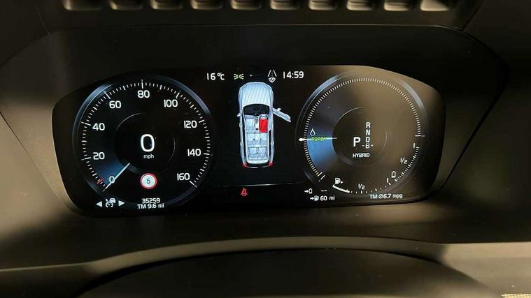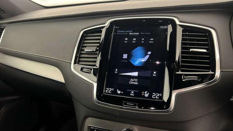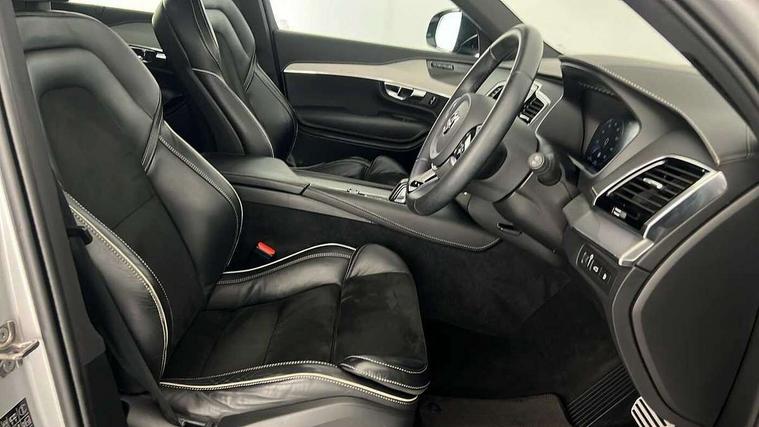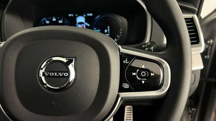 12.3" Active TFT crystal driver's instrument display, 9" centre console portrait touch screen, Adjustable steering wheel force, Bluetooth hands free telephone connection, Drive mode settings, Driver alert control with lane keeping aid, Driver assistance (pilot assist and adaptive cruise control), Driver awareness - Blind spot information system with steer assist, cross traffic alert with autobrake and rear collision warning and mitigation, Front and rear park assist, Handsfree power tailgate opening and closing, Oncoming Lane Mitigation, Sensus navigation with European mapping and traffic information, Service interval indicator, Smartphone integration with Apple CarPlay and Android auto, Speed limiter, Speed sensitive steering, Trip computer, Voice activated control for key functions, Volvo on call, 7m Charge Cable with 3 Pin Plug, 7m Type 2/mode 3 charge cable, 8 speed automatic transmission with start/stop + manual change functions, Active four C chassis - four corner adaptive dampers with electronic air suspension, All wheel drive system, Electric rear axle drive, Lithium-ion battery, Recharging port located in nearside front wing, DAB Radio (Digital Audio Broadcasting), Steering wheel audio controls, Steering wheel remote infotainment controls, Adaptive brake lights with high level LED brake lights, Auto dimming interior + exterior mirrors, Automatic headlight levelling system, Automatic LED Headlights + Active high beam incorporating daytime running lights, Body colour bumpers, Dark tinted windows for rear side windows and cargo area, Dual integrated exhaust pipes with high gloss black surround, Electric folding and heated door mirrors, Front and rear power windows, Heated washer nozzles, High gloss black Deco lower front bumper, High gloss black door mirrors, High gloss black lower rear valance, High gloss black mesh front grille with surround, High gloss black window surround, Home safe and approach lighting, Integrated roof rails in high gloss black, Puddle lights, Rain sensor with automatic windscreen wiper activation, Rear wash/wipe with intermittent wipe setting, Roof antenna, Roof spoiler, Visible VIN plate, 12V socket front tunnel console, rear passenger compartment and cargo area, 4 Zone electronic climate control + cooled glovebox, A-pillar parking ticket holder, Ambient door and instrument panel lighting, B Pillar ventilation, Bright metal luggage threshold, Cargo divider with grocery bag holder, Centre console cupholders and storage, Charcoal headlining, Driver's side lower dashboard storage compartment, Front and rear door pocket and front cupholder illumination, Front footwell and side step illumination, Front headrests, Front seat cushion extensions, Heated front seats, Height/reach adjustable steering column, Illuminated luggage compartment, Illuminated tailgate, Illuminated vanity mirrors + ticket holder, Illumination lockable glovebox compartment, Integrated sun curtains in rear doors, Load protection net, Lower dashboard, tunnel console, Lower door panel in blond, Multicolour theatre lighting, Outboard armrest with cupholder and storage for third row passengers, Power driver seat with multi directional lumbar support and memory for seat and exterior mirrors, Power folding 2nd row headrests, Power passenger seat with multi directional lumbar support and memory, Rear footwell and side step illumination, Rear headrests, Recharge aluminium tread plates, Semi automatic load cover, Sports floor mats, Sports leather gear knob, Sports pedals, Three 2nd row individual folding passenger seats with fore/aft adjustment, Two 3rd row individual folding passenger seats, Underfloor cargo storage, Lighting pack - XC90 Recharge, 7 three point seatbelts, City safety includes pedestrian, cyclist and large animal detection and front collision warning with full auto brake, Drivers knee airbag, Dual stage driver/passenger airbags, First aid kit, Front seats SIPS airbags, Hill descent control, Hill start assist, IC (Inflatable Curtains) - Full Length, Passenger airbag cut-off switch, Power parking brake with auto hold function, Road sign information display, Run off Road Mitigation, Run off Road Protection, Seatbelt reminder and pretensioners for all seats, SIPS (Side Impact Protection System), Slippery road and hazard light alert, Stability and Traction Control with Spin control, Engine Drag Control and Corner Traction Control, Tyre pressure monitoring system, Vehicle deceleration control with Anti-lock Brake System, Electronic Brake Distribution and Emergency Brake Assist, Warning triangle, WHIPS whiplash protection system - front, Anti-theft alarm including immobiliser/volume sensor + level sensor, Care key with user defined top speed, Key integrated remote control central locking + fuel flap with deadlocking system and auto open/close power windows, Keyless drive (includes keyless entry and keyless start) with remote tag, Locking wheel nuts, Private locking for glovebox and tailgate, Metal mesh inlays, Tailored Instrument Panel and Door Tops with Contrast Stitching, Tyre sealant kit + 12v compressor,