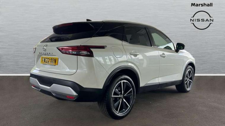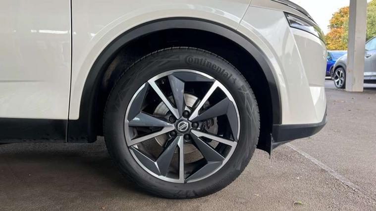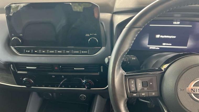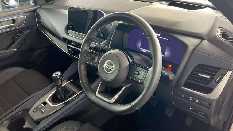 Blind spot warning, Drive modes (sport, normal, eco), Electric speed sensitive power steering, Emergency and breakdown call, Front and rear parking sensors, Full Digital 12.3" TFT Digital Combimeter, Google maps services - search, weather, 3D maps and Google street view, Hands free power tailgate, Idle stop/start system, Intelligent around view monitor, Intelligent Cruise control (ICC), Intelligent driver alert system, Intelligent forward collision warning, Intelligent lane intervention, Lane departure prevention, Lane departure warning system, Moving object detection, Nissan connect 12.3 inch touchscreen infotainment system, Nissan connect navigation, Push button starter, Rear cross traffic alert, Remote control services - door locks, lights, horn and car locator, Telematics - notifications and connectivity services, TomTom live traffic services, Traffic sign recognition with legal speed adjustment, Trip computer, Virtual personal assistant and firmware over the air capability, Wireless Apple CarPlay and wired Android Auto, Wireless charging pad, 6 speakers, AM/FM audio system with DAB, Bluetooth audio streaming, Front USB connections (Type-A and Type-C), Rear USB charging only ports (Type-A and Type-C), Auto dimming rear view mirror, Auto rear wiper when reversing, Automatic hazard signal with emergency stop signal, Body colour mirror caps, Body coloured door handles, Bodyside mouldings, Chrome side window finisher, Door handle with button, Dusk sensor, Electric auto folding door mirrors, Electrically adjustable and heated door mirrors with LED turn indicator, Fixed panoramic glass roof with electric sunshade, Follow me home headlights, Front and rear LED turning signals, Intelligent auto headlights, LED daytime running lights, LED rear lights, One touch front and rear electric windows with remote opening and closing, Partially body coloured bumpers, Privacy glass, Rain sensor, Rear bumper with graphite insert, Rear roof spoiler, Rear side wing doors, Rear styling plate, Roof rails, Shark fin antenna, Splash free rain sensing wipers, Super UV and infrared cut glass, Three blink turn signal, 12v power socket in dashboard and luggage, 2 way electrical driver lumbar adjustment, 2x Rear coat hooks, 3 bench rear seats in 2nd row, 3 rear headrests, 4 folding assist grip, 6 Luggage hooks - 4 on floor, 2 on side, 60/40 split folding rear seat bench, 8 way electric adjustable drivers seat, Ambient lighting around centre console, Ambient lighting in front doors, Centre console storage tray, Chrome interior door handles, Cloth/syntech leather monoform upholstery, Dark black/blueish PVC wrapping, Dark headlining, Driver and front passenger sunvisors with illuminated vanity mirrors, Driver seat back pocket, Dual zone automatic climate control with pollen filter, Front and rear door storage, Front cupholders x 2, Front door with bottle holders, Glovebox with light, Hard trunk cover, Height adjustable front headrests, Leather shift knob, Leather steering wheel, Luggage board system, Luggage space lighting, Manual lumbar support on passenger seat, Manually adjustable passenger (slide recline + lifter), Multifunction steering wheel, Passenger seat back pocket, PVC front centre console and armrest, Rear armrest with 2 cupholders, Rear door bottle holders, Single front passenger seat, Soft PVC kneepad, Steering wheel switches, Tilt/telescopic adjustable steering wheel, Two rear isofix child seat anchorage points with top tether, Welcome light and doors with console tray ambient lighting, Drive assist pack - Qashqai, Heat pack - Qashqai, Tech Pack (Drive Assist + HUD), 3x3 point rear seatbelt pretensioners + load limiters, ABS, ESP, EBD and brake assist, Active brake limited slip, Auto hold function, Child locks on rear doors, Curtain and front side, far side airbags, Driver and passenger airbags, Driver, passenger and 2nd row rear seat belt reminder, Electronic parking brake, Front seatbelt pretensioners + load limiters, Height adjustable front seatbelts, Hill start assist, Intelligent blind spot intervention, Intelligent front emergency braking with pedestrian, cyclist recognition and junction assist, Intelligent rear automatic braking, Tyre pressure monitoring system, Vehicle dynamic control, Capless fuel filler, Engine immobiliser, Nissan i-key, Remote central door locking with deadlocking, Thatcham Cat.1 alarm, Interior instrumental panel C finisher, 19" Alloy wheels, Tyre puncture repair kit,