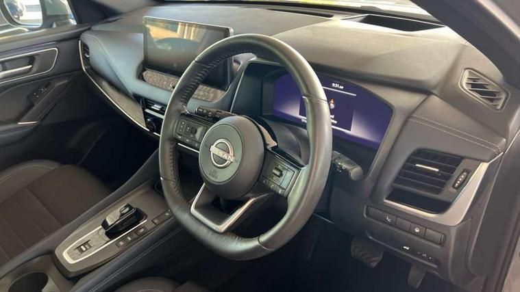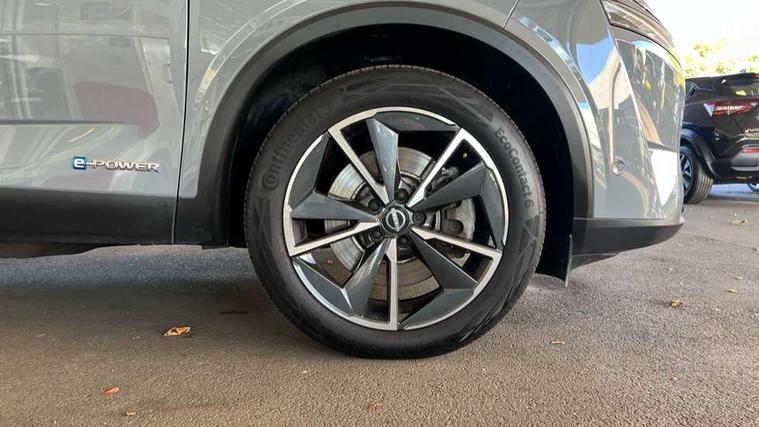 Advanced windscreen head up display, Blind spot warning, Drive modes (sport, normal, eco), e-Pedal step, Electric speed sensitive power steering, Emergency and breakdown call, Front and rear parking sensors, Full Digital 12.3" TFT Digital Combimeter, Google maps services - search, weather, 3D maps and Google street view, Hands free power tailgate, Idle stop/start system, Intelligent around view monitor, Intelligent Cruise control (ICC), Intelligent driver alert system, Intelligent forward collision warning, Intelligent lane intervention, Lane departure prevention, Lane departure warning system, Lane keep assist, Moving object detection, Nissan connect 12.3 inch touchscreen infotainment system, Nissan connect navigation, ProPILOT with Navi-Link, Push button starter, Rear cross traffic alert, Rear view camera, Remote control services - door locks, lights, horn and car locator, Telematics - notifications and connectivity services, TomTom live traffic services, Traffic sign recognition with legal speed adjustment, Trip computer, Virtual personal assistant and firmware over the air capability, Wireless Apple CarPlay and wired Android Auto, Wireless charging pad, 6 speakers, AM/FM audio system with DAB, Bluetooth audio streaming, Front USB connections (Type-A and Type-C), Rear USB charging only ports (Type-A and Type-C), Auto dimming rear view mirror, Auto rear wiper when reversing, Automatic hazard signal with emergency stop signal, Body colour mirror caps, Body coloured door handles, Bodyside mouldings, Chrome side window finisher, Door handle with button, e-POWER badging, Electric auto folding door mirrors, Electrically adjustable and heated door mirrors with LED turn indicator, Follow me home headlights, Front and rear LED turning signals, Headlights auto levelling system, Intelligent auto headlights, LED 3rd brake light, LED daytime running lights, LED headlights with adaptive driving beam, LED rear lights, One touch front and rear electric windows with remote opening and closing, Partially body coloured bumpers, Privacy glass, Rear bumper with graphite insert, Rear reversing light (bulb lighting), Rear roof spoiler, Rear side wing doors, Rear styling plate, Shark fin antenna, Splash free rain sensing wipers, Super UV and infrared cut glass, Thermaclear heated windscreen, Three blink turn signal, 12v power socket in dashboard and luggage, 2x Rear coat hooks, 3 bench rear seats in 2nd row, 3 rear headrests, 4 folding assist grip, 6 Luggage hooks - 4 on floor, 2 on side, 60/40 split folding rear seat bench, Ambient lighting around centre console, Ambient lighting in front doors, Centre console storage tray, Chrome interior door handles, Cloth/syntech leather monoform upholstery, Dark black/blueish PVC wrapping, Dark headlining, Driver and front passenger sunvisors with illuminated vanity mirrors, Driver seat back pocket, Dual zone automatic climate control with pollen filter, e-POWER shifter, Electrically adjustable driver seat, Electrically adjustable lumbar support for driver, Front and rear door storage, Front centre console and armrest, Front cupholders x 2, Front door with bottle holders, Glovebox with light, Hard trunk cover, Heated front seats, Heated steering wheel, Height adjustable driver's seat, Height adjustable front headrests, Height adjustable passenger seat, Leather steering wheel, Luggage board system, Luggage space lighting, Manual lumbar support on passenger seat, Manually adjustable passenger (slide recline + lifter), Multifunction steering wheel, Passenger seat back pocket, Rear armrest with 2 cupholders, Rear door bottle holders, Single front passenger seat, Soft PVC kneepad, Steering wheel switches, Tilt/telescopic adjustable steering wheel, Two rear isofix child seat anchorage points with top tether, Welcome light and doors with console tray ambient lighting, Glass roof pack with roof rails - Qashqai, 3x3 point rear seatbelt pretensioners + load limiters, ABS with EBD and brake assist, Active brake limited slip, Auto hold function, Child locks on rear doors, Curtain and front side, far side airbags, Driver and passenger airbags, Driver, passenger and 2nd row rear seat belt reminder, Electronic parking brake, Front seatbelt pretensioners + load limiters, Height adjustable front seatbelts, Hill start assist, Intelligent blind spot intervention, Intelligent front emergency braking with pedestrian, cyclist recognition and junction assist, Intelligent rear automatic braking, Tyre pressure monitoring system, Vehicle dynamic control, Capless fuel filler, Engine immobiliser, Intelligent Key, Remote central door locking with deadlocking, Thatcham Cat.1 alarm, Interior instrumental panel C finisher, 19" Diamond cut alloy wheels, Tyre puncture repair kit,