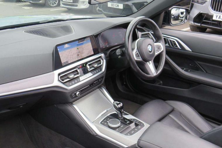 Active guard plus, Attentiveness assist, Auto start-stop, BMW ConnectedDrive online services, BMW iDrive controller on centre console, BMW Live Cockpit Professional Nav with 12.3" instrument display + 10.25" display, Intelligent Voice Assist, BMW OS 7, HDD, 2USB, 4G LTE connect, BMW service history, BMW Teleservices, Brake pad wear indicator in front and rear, Check Control warning system for monitoring of lights and door/luggage compartment open warning, Condition based service, Cruise control with brake assist, Electric power steering with Servotronic steering optimised at all speed ranges, Gearshift time display in manual mode, Instrument cluster with speedometer with mph readout, tachometer, fuel gauge and oil temperature gauge, Integrated owners handbook, Oil sensor for level and grade, warning by check control system, On board computer - average speed, fuel consumption, outside temp display with acoustic warning, clock/date, service interval, odometer/trip meter, Optimum shift indicator, Variable sport steering, 48V Mild hybrid technology, 8 speed automatic steptronic transmission with gearshift paddles, Balanced 50/50 weight distribution, Diesel particulate filter, Drive performance control - ECO PRO, comfort and sport modes, Incorrect fuelling protection, Low centre of gravity, M sport suspension, Stroke dependent dampers, DAB tuner, Electronic service booklet, Acoustic glazing, Automatic headlight beam throw control with load dependent regulating reaction, dynamic compensation of braking dive and acceleration squat, Automatic windscreen wipers and automatic headlight, Automatically dimming electrochromatic rear view mirror, BMW emblem on engine compartment lid and tailgate, BMW kidney grille with mesh grille front side of the nuggets in matt aluminium and frame in chrome high gloss, Body colour fuel filler flap, Body colour roof fin, Brushed aluminium inserts in the front door sill finishers with BMW designation, Dynamic brake lights, Electric windows - front and rear, with open/close fingertip control, anti trap facility and comfort closing function all round, Exhaust tailpipe - split left and right, Exterior mirrors - electrically folding with anti-dazzle, Fading support, Front and rear bumper system, Front apron plastic in body colour, Green tinted heat protection glazing, High gloss shadow line exterior trim, Illuminated bow type door handles in body colour drivers side with door lock, Interior rear view electrochromatic mirror with automatic anti dazzle function, LED daytime running lights, LED front fog lights, Licence plate panel integrated into front bumper and tailgate, Lightweight engineering, M designation on front side panels, left and right, Model designation on right side of tailgate, One piece front bumper cover including towing eye cover in body colour, Preparation for high beam assistant, Rear boot, Side frame decorative moulding black matt, Third brake light, Two part LED tailights in L-shape with components in smoked glass, brake light, LED turn indicator and rear fog light, Visible VIN plate, Welcome lights in interior and door handle area, Widened track and increased camber values for max transverse dynamics, agility and steering precision, Window recess cover black high gloss, Windscreen wipers with integrated heated washing jets, 12V power socket in front centre console, 2 2nd row folding seats, 2 front cupholder in centre console with clamping elements and matt black inlay, 2 Rear seat headrests, 2nd row centre armrest with built-in cupholders, 3 spoke M sport leather multifunction steering wheel, 3 zone automatic air conditioning, 4 pieces lashing eyelets in luggage compartment, Ambient lighting with welcome carpet light, Armrest integrated in front and rear door trim + front centre console armrest, Electric seat adjustment with memory, Four grab handles integrated in roof lining, Front and rear door exit lighting (left / right), Front and rear door pockets, Front and rear footwell lights, Front and rear reading lights, Front headrests, Front seat backrest width adjustment, Front sport seats, Heated driver and front passenger seats, Height adjustable mechanically and infinitely variable steering column, Illuminated armrest storage compartment, Illuminated glove compartment with separate small compartment, Luggage compartment light, Make-up mirror lights, Single front passenger seat, Storage compartment in rear centre console, Sunvisors with vanity mirrors and ticket pocket, Toolkit located in luggage compartment, USB type - C cable charging function in the rear centre console, Velour front floor mats, Vernasca leather upholstery, Connected professional package - 4 Series, M sport exterior styling pack - 4 Series, Park assist pack - 4 Series, 2 x 3-point rear seatbelts, Battery safety cut-off, BMW emergency call, Brake energy regeneration, Braking pre-tensioning, Child proof rear door locking, Child seat ISOFIX attachment for the two outer rear seats, Coasting in idle in ECO PRO mode, Cornering brake control (CBC), Crash sensor activating of airbags, Unlocking doors, hazard warning lights, fuel cut off, interior lighting+activation of safety battery terminal clamp, Driver and front passenger side airbags, integrated in the door side seat backrest bolsters for all seat variants, Driver/Front Passenger airbags, Dry braking, Dynamic brake control, Dynamic stability control + (DSC+) - Anti-lock Braking System (ABS) with brake assist and cornering brake control + Automatic Stability Control (ASC), Dynamic Traction Control - DTC, Electric parking brake including automatic hold function and automatic release of the parking brake when driving off, Electronic differential lock control (EDLC), Front and rear ventilated brake disc, Front passenger manual airbag deactivation, Head airbags for all 4 outer seats, Hill start assistant, Seat belt security check for driver and front passenger, Seat belt with belt stopper, pyrotechnic belt tensioners and belt force limiter
