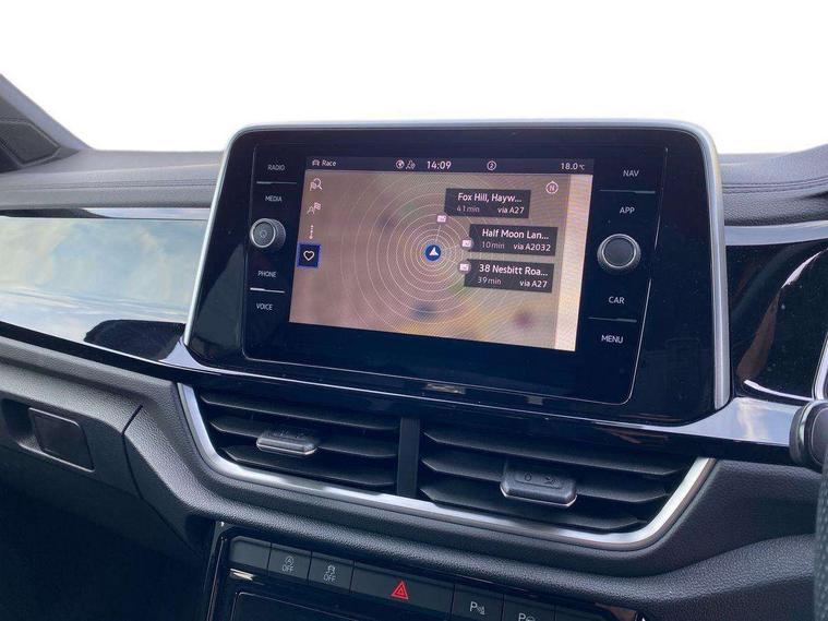 10.25" Digital cockpit pro, Bluetooth mobile phone interface, Driver alert system with fatigue detection, Driver tips and journey analysis, Emergency call service, Lane keeping system Lane Assist, Modified key software - reduce switch off time for key status change to Long no motion, Online services, Park assist including front and rear parking sensors, Service interval indicator, Tailgate/trunk lid release from outside, Think blue trainer driver tips and journey analysis, Warning sound and light for front seatbelts unfastened, Wireless app connect, Battery regeneration during braking, Four wheel drive, Start/stop function with battery regeneration, Diversity antenna for FM reception, Front and rear 6 speakers, Music playback - MP3, WMA and AAC files, Premium USB cable in choice of either Apple or Android smartphone compatibility, SD card slot, Simultaneous pairing of 2 compatible mobile devices, Title and cover art display, We Connect and We Connect Plus functionality, 3rd brake light, Auto dimming interior rear view mirror, Automatic hazard lights activation under emergency braking, Automatic headlight control with LED separate daytime running lights with coming/leaving home function, Extended roof spoiler, Exterior mirrors aspherical on driver side, convex on front passenger side, External USB type C socket and charging sockets, Front windscreen wiper with intermittent wipe and 4 position delay, Heated rear window, LED Plus headlamps, LED rear combination lamps, LED rear number plate lights, LED tail lamp rear comination lamps, Power windows with comfort operation and circuit breaker, Privacy glass for rear side windows and rear window, R-Line design body coloured bumpers, Rain sensor, Rear fog light on one side and reversing lights on both sides, Rear side wing doors, Rear wash/wipe with intermittent wipe setting, Remote electrically foldable door mirrors, puddle lights and reverse activated passenger's door mirror, 12V power socket in centre console, 3 rear head restraints, 3 seat bench in 2nd row, 4 load lashing points in luggage compartment, Air care climatronic air conditoning system with active combination filter and 2-zone temperature control, Ambient lighting - 10 colour (blue), Black roof lining, Chrome plated radiator grille inserts, air vent surrounds and light switch surrounds, Door and side trim panel with leatherette insert, Drawer under drivers seat, Driver/front passenger seat height adjustment, Front + rear carpet mats, Front centre armrest, Front cupholders x 2, Front footwell illumination, Front scuff plates with R logo in door apertures, Front sport seats, Heated leather wrapped multi function sports steering wheel with tiptronic, Instrument lighting, white adjustable panel illumination, Interior light delay, Isofix child seat preparation, Leather gearshift handle, LED interior light with switch off delay/dimmer and 2 front/rear LED reading lights, Load-through provision with cup holder when folded down ('Unsplit rear seat bench, split folding backrest, with centre armrest), Luggage compartment lighting, Lumbar support for driver's and front passengers seat, Non-folding front passenger seat backrest, R-logo stitching in floor mats, Single front passenger seat, Stainless steel pedals, Storage compartment in left and right luggage area, Storage compartment in rear doors, Storage compartments in driver and front passenger doors, Sunvisors with illuminated vanity mirrors, Variable boot floor, height adjustable and removable, Driver assistance pack - T-Roc, R styling pack - T-Roc, 3 point height adj front seatbelts + pretensioners, 3 point seatbelts in outer rear with ECE label, ABS, Child locks on rear doors, Driver and front passenger airbag with front passenger airbag deactivation, Driver and front passenger safety-optimised head restraints, Drivers seatbelt reminder, Electronic parking brake, Electronic Stability Control (ESC) inc EDL (Electronic Differential Lock) and ASR (Traction Control), Front and rear passengers curtain airbag system including front side airbags, Front assist with city emergency braking and pedestrian monitoring, Front seat side impact airbags, Hill descent control, Hill start assist, Predictive pedestrian protection, Rear disc brakes, Single tone horn, Tyre pressure loss indicator, Volkswagen roadside assistance, Alarm with interior protection, Anti-theft alarm system with interior monitoring, backup horn, and towing protection, Keyless entry and start, Remote central locking with SAFELOCK, radio remote control with 2 remote control folding keys, Trims for alloy wheels,