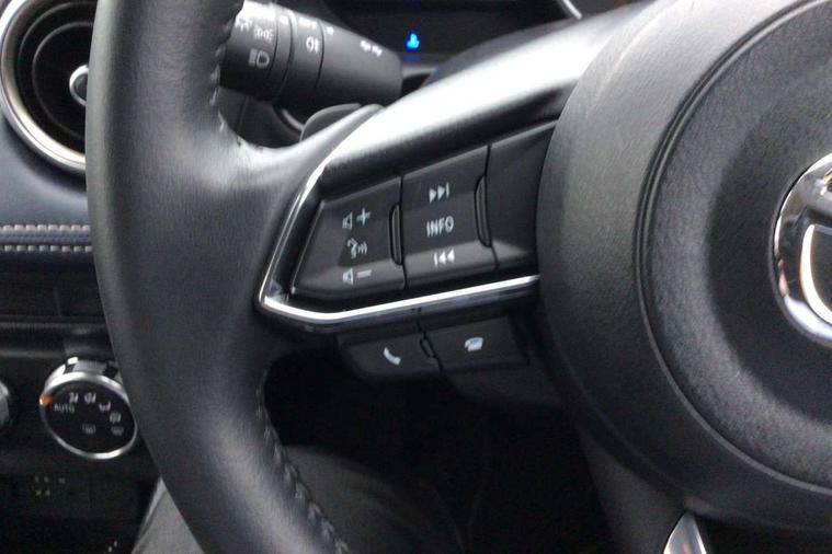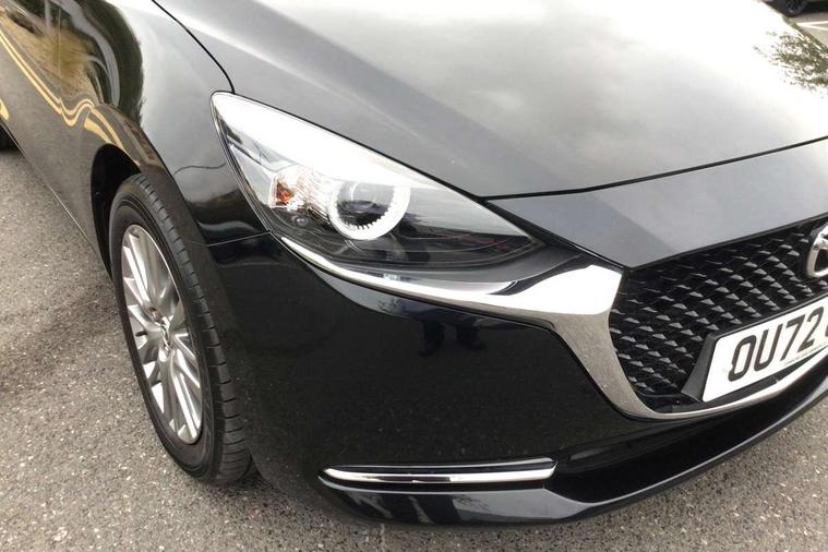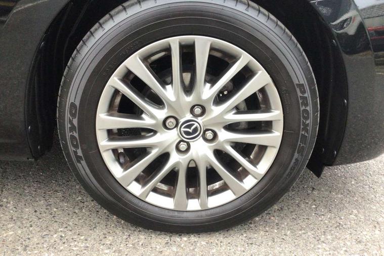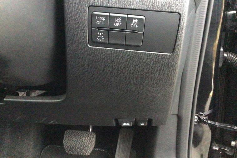 Adjustable speed limiter, Analogue speed display meter, Cruise control, Digital instrument cluster, Digital rev counter, Drive mode selection and paddle shift, E-call, Emergency stop signalling system, Engine start/stop button, Integrated bluetooth, Lane departure warning system, Lane keep assist, Mazda connect with 8" colour touch screen, Navigation system, PAS, Rear parking sensor, Service indicator, Trip computer, Wireless Apple CarPlay and wired Android Auto, i-stop, AM/FM/DAB radio with 6 speakers with USB and AUX inputs, Multimedia Commander including separate volume dial, Steering wheel mounted audio/bluetooth controls, Auto dimming rear view mirror, Auto headlight levelling, Body colour door mirrors, Body coloured front bumper with bright lower bezel, Body coloured rear bumper with bright lower mouldings, Chrome exhaust tailpipes, Chrome finish signature wing on front grille, Chrome front lower bezel, Chrome rear lower bezel, Coming/leaving home lighting function, Dusk sensing headlights, Electric adjustable/heated/folding door mirrors, Electric front/rear windows with one touch auto up/down for driver's window, Gloss black front grille, LED Headlights, LED indicator lights, LED third brake light, Privacy glass, Rain sensing front wipers with adjustable sensitivity and speed, Rear side wing doors, Rear wiper, Shark fin antenna, Signature LED daytime running lights, 3 seat bench in 2nd row, 60/40 split rear seats, Climate control air conditioning, Cloth upholstery, Driver, Front passenger and two rear grab handles with coathooks, Drivers seat manual slide recline and height adjustment, Drivers/front passengers covered vanity mirrors and drivers ticket holder, Folding rear seats, Front centre storage with two cupholders, Front head restraints, Front passenger and driver door pockets, Front passenger seat manual slide, recline and height adjust, Front passenger seatback pockets, Gear shift indicator, Glovebox, Interior courtesy light with integrated spotlight, ISOFIX child seat anchorage points attached on outer rear seats, Leather handbrake, Leather steering wheel and gear knob, Luggage compartment light, Satin silver dials, Single front passenger seat, Three height adjustable rear head restraints, Tilt/telescopic adjustable steering wheel, 2x3 point front seatbelts with pre-tensioners, 3 point seatbelts on all rear seats, Anti-lock braking system (ABS), Autonomous emergency braking, Collision mitigation braking system, Dynamic stability control + Traction control, ESP, Front and rear curtain airbags, Front driver, passenger and rear seat seatbelt warning, Front dual stage driver and single stage front passenger airbags, Front side airbags, Front smart city brake support, G-Vectoring control plus, Hill launch assist, Manual child lock in rear doors, Passenger airbag cut-off switch, Tyre pressure monitoring system, Deadlocking system, Immobiliser, Power door locks, Remote central locking, Smart keyless entry, Thatcham accredited alarm and immobiliser, Dark blue soft touch dashboard, 16" Bright finish alloy wheels, Emergency tyre repair kit,