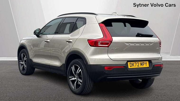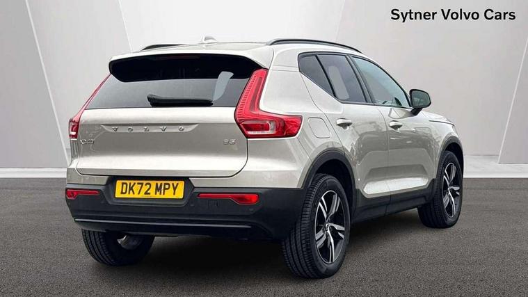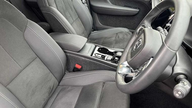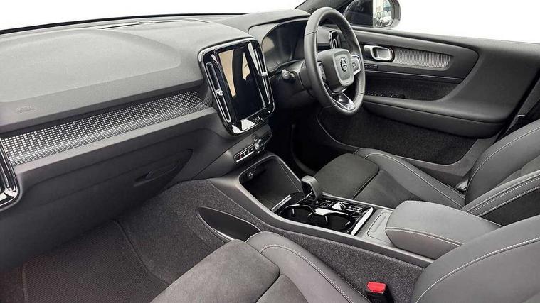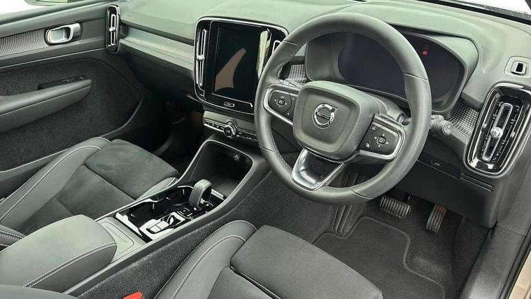 12.3" Progressive Driver Display, 9" centre console portrait touch screen, Adjustable steering wheel force, Bluetooth hands free telephone kit, Cruise control, Driver awareness - blind spot information system with steer assist, cross traffic alert with autobrake, rear collision warning and migitation, E-call, Front park assist, Google automatic services - Nav with google maps, apple carplay/android auto, voice recognition with google assistant, Hands free power tailgate, Lane keep assist with driver alert control, Oncoming Lane Mitigation, Rear park assist, Rear park assist camera, Speed limiter, Speed sensitive steering, Wireless/Inductive Mobile Phone Charging, Dynamic chassis, DAB Digital radio, High performance sound, 8 speakers/250W, front USB and 2 rear type C USB, Steering wheel mounted remote controls, Adaptive brake lights with high level LED brake lights, Auto dimming feature for exterior door mirrors, Auto dimming interior mirror, Automatic headlamp levelling, Automatic LED Headlights + Active high beam incorporating daytime running lights, Front aluminium tread plates, Front and rear electric windows, High gloss black front and rear skid plate, High gloss black mesh front grille with high gloss black surround, High gloss black window trim, Home safe and approach lighting, Integrated roof rails in high gloss black, LED front fog lights, Puddle lights, Rain sensor with automatic windscreen wiper activation, Rear side wing doors, Rear wiper, Roof antenna, Roof spoiler, Visible VIN plate, 12V socket in front tunnel console and luggage compartment, 2-Zone electronic climate control with CleanZone air quality system and pollen filter, 3 seat bench in 2nd row, 3 Spoke tailored steering wheel with chrome trim, 60/40 versatile split folding rear seat, A-pillar parking ticket holder, Ambient front door and instrumental panel lighting, Centre console cupholders and storage, Flexible load floor and grocery bag holder, Floor mats, Front door pocket and front cupholder illumination, Front footwell illumination, Front headrests, Front reading light and theatre lighting, Front seat cushion extensions, Front tunnel pocket, Glovebox bag hook, Heated front seats, Height adjustable passenger seat, Height/reach adjustable steering column, High gloss centre tunnel deco, Illuminated glovebox, Illuminated luggage compartment, Illuminated tailgate, Illuminated vanity mirrors, Integrated waste bin, Isofix attachments on outer rear seats, Load protection net, Multi directional lumbar support, Power driver seat with memory + exterior mirrors memory, Rear armrest / integral cup holders / storage tray, Rear headrests, Rear reading and courtesy lights, Single front passenger seat, Underfloor cargo storage, Climate pack without heated front seats - XC40, 3x3 point rear seatbelts, City safety with steering support with Pedestrian + cyclist + front collision warning with full auto brake and rear auto brake, Drivers knee airbag, Dual stage driver/passenger airbags, Electronic parking brake with auto hold, First aid kit, Front and outer rear seatbelt reminder and pretensioners, Front seats SIPS airbags, Hill descent control, Hill start assist, Inflatable curtain, Passenger airbag cut-off device, Power child locks on rear doors, Road sign information display, Run off Road Mitigation, Run off Road Protection, SIPS (Side Impact Protection System), Slippery road and hazard light alert, Stability and Traction Control with Spin control, Engine Drag Control and Corner Traction Control, Tyre pressure monitoring system, Vehicle deceleration control with Anti-lock Brake System, Electronic Brake Distribution and Emergency Brake Assist, Warning triangle, WHIPS whiplash protection system - front, Anti-theft alarm including immobiliser/volume sensor + level sensor, Key integrated remote control central locking + fuel flap with deadlocking system and auto open/close power windows, Keyless drive includes keyless entry and keyless start, Locking wheel nuts,