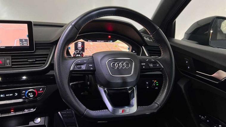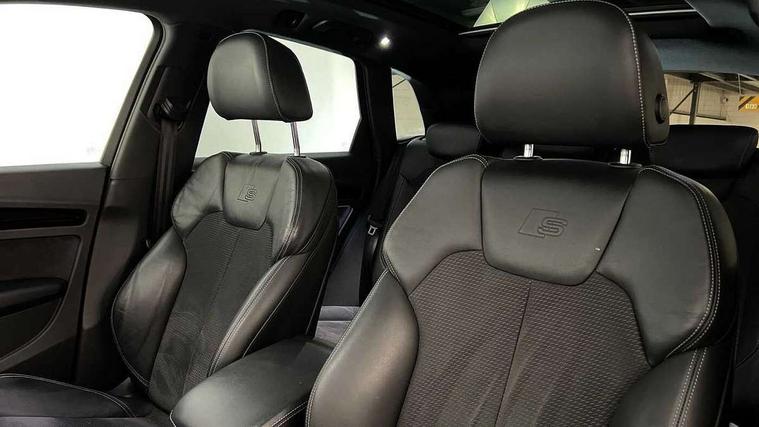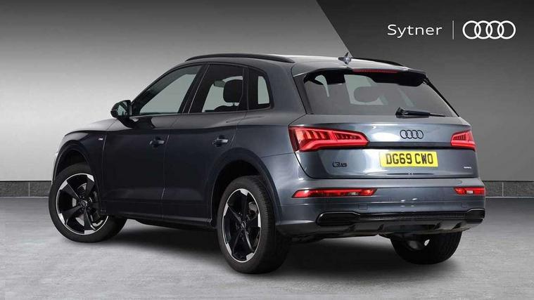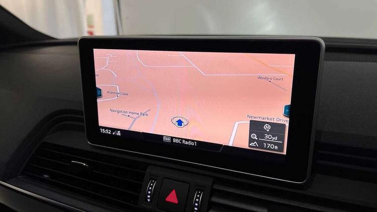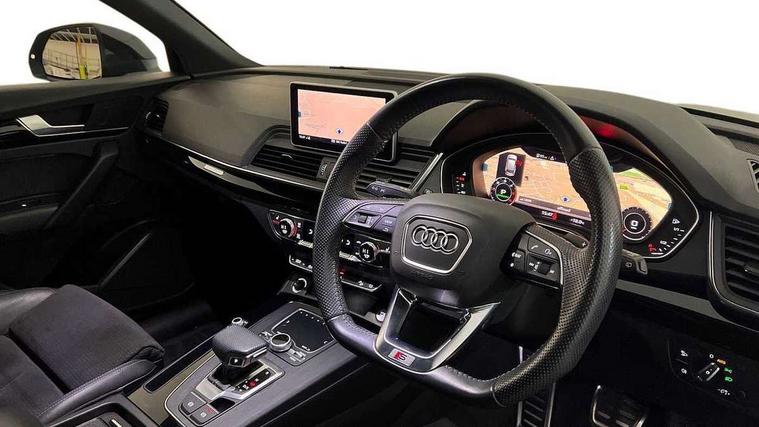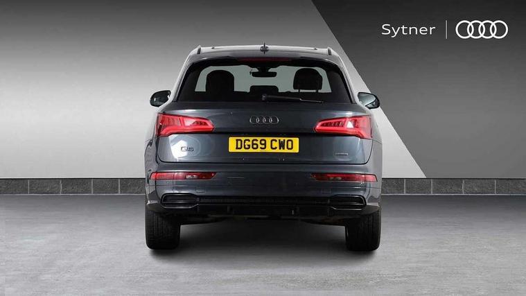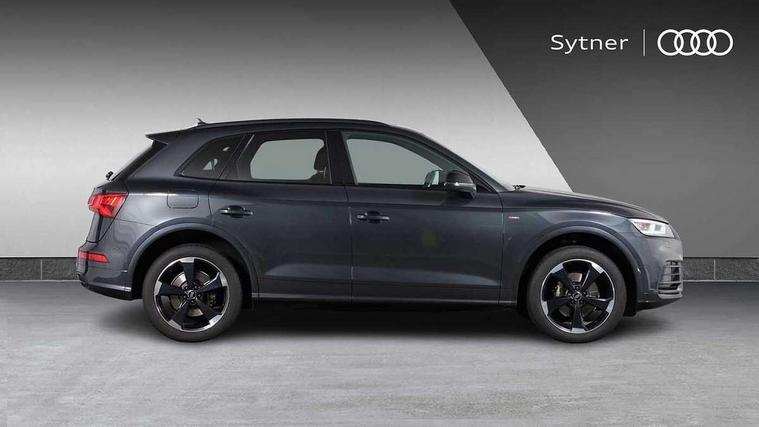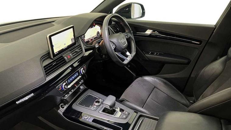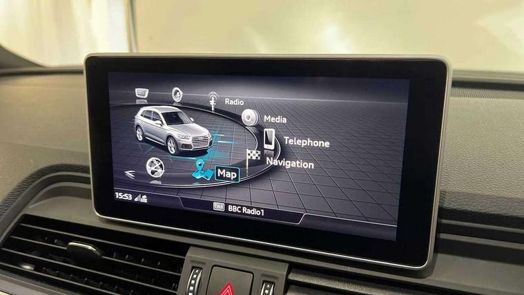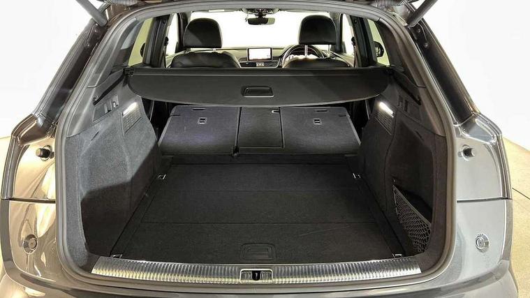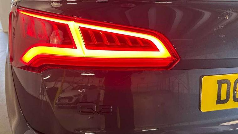 7" Colour driver information system, Audi connect safety and service (e-call), Audi drive select, Audi parking system plus with front and rear sensors, Audi Pre sense collision avoidance, Audi smartphone interface, Automatic start-stop system with coasting functionality and efficiency programme, Cruise control + speed limiter, Electro - mechanical power assisted steering, MMI Navigation, Mobile telephone preparation - bluetooth interface, Power tailgate, Service interval indicator, Voice control system, Diesel particulate filter, Dynamic suspension, Quattro on demand, 2 x USB charging port with aux input socket, 2x SD card slot, CD player, DAB Digital radio, MMI radio plus with 7" colour MMI screen and MMI controller, Acoustic windscreen, Air inlets in matt titanium black with blades in matt aluminium silver, Auto dimming rear view mirror, Automatic headlight levelling, Black roof rails, Body colour bumpers, Body colour rear diffuser with matt aluminium silver surrounds, Body colour underbody protection, Chrome exhaust tailpipe, Electric adjustable/heated/folding door mirrors, Front and rear electric windows, High beam assistant, LED headlights with LED rear lights + dynamic rear indicators, Light and rain sensor for auto activation of lights and windscreen wipers, Loading sill protector in stainless steel, Privacy glass with front acoustic glazing, Rear wiper, Titanium black door mirror housings, 3 rear headrests, 3 spoke flat bottom high multi-function leather steering wheel, 40:20:40 split folding rear seat with rear centre armrest, Black cloth headlining, Contrast stitching on seats, steering wheel and gear lever gaiter, Deluxe 3 zone electronic climate control, Front centre armrest, Front sport seats with S embossed logo, Front/rear floor mats, Heated front seats, Height adjustable front head restraints, Height/reach adjustable steering column, ISOFIX child seat mounting and top tether, Luggage compartment carpet, Manual seat adjustment with 4-way electric lumbar support, Perforated leather gearknob, Removable luggage compartment floor, Stainless steel pedals, Sunvisors with vanity mirrors, Trunk roller cover, LED interior light pack - Q5, Non Smokers pack, Titanium black styling pack - Q5, 3 point seatbelts on all seats, 6 airbags - Driver, front passenger, curtain and side airbags, Electromechanical parking brake, Electronic stabilisation control including ABS, ASR and EDL, Front passenger airbag deactivation, Hill descent control, Hill hold assist, Multi collision brake assist, Pop-up bonnet for pedestrian protection, Pre sense city, Seat belt force limiter, Seatbelt monitoring, Tyre pressure warning, Warning triangle and first aid kit, Anti theft alarm, Anti-theft wheel bolts, Keyless Go access/ignition system, Remote central locking, Black piano finish inlays, 20" 5 arm rotor design sport alloy wheels in gloss anthracite black, diamond cut finish, Tool kit,