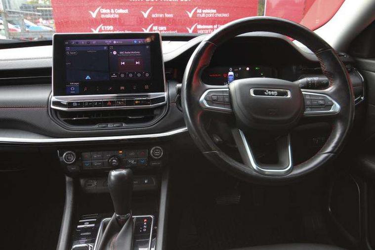 160 MPH primary speedometer, Active lane management, Active speed limiting device, Adaptive cruise control with Stop and Go, Drowsy driver detection, E-call, Electric power steering, Full speed forward collision warning plus mitigation, Instrument cluster- 10.25" TFT Colour display, Instrument panel, Intelligent speed assist, Media centre electronic storage, Outside temperature display, Selec-Terrain system for Trailhawk with sport mode, Tachometer, TBM - Connected services (e-call), Traffic sign recognition (TSR), Vehicle information centre, 7.4 kW onboard charger, Battery run - down protection, Battery skid plate, Boost and load point shift, CO2 improvement, E- launch, E-creeping, E-Parking, E-Queueing, Electric drive, Electronic roll mitigation, EV/PHEV mode 2 charging cable, Off road suspension, Bluetooth audio streaming, DAB Digital radio, Global telematics box module (TBM), Media hub (USB A-C TYPE), Steering wheel mounted audio controls, Uconnect 5 R1 Radio - Low 10.1" display, USB host flip, 4XE badge/ E TORQUE badge, Accent/body colour bumpers, Aspherical driver's exterior mirror, Auto dimming rear view mirror, Auto high beam, Automatic headlights, Belly pan - underbody protection, Black mic grille/neutral gray rings, Black side roof rails, Black window surrounds, Body colour door handles, Coastdown and run-in optimization, Compass badge, Deep tint privacy glass, Door mirrors: power adjustable and folding, heated with auto folding function and indicators, Front fascia/belly pan skid plate, Front/rear grey insert, Gloss black badges, Gloss black exterior door mirrors, Headlamp leveling system, Headlamp off time delay, Heated rear window, Jeep badge, LED front fog lamps, LED rear lights, LED reflector headlamps high with segmented DRL, Lower bodyside cladding in black, Neutral gray headlamp bezels, Neutral grey exterior accents, Power windows - driver and passenger express up/down, Rain sensitive windscreen wipers, Rear fascia, Rear fog lamps, Rear side wing doors, Rear windshield washer/wiper, Red rear tow hook, Removable short mast antenna, Skid plate shield - front suspension, Skid plate shield - fuel tank, Skid plate shield - transfer case, Skid plate shield - transmission, Smartbeam headlights, Third brake light, Trail rated badges, Trailer sway damping, Trailhawk badges gloss black, Trailhawk hood decal, UK front number plate bracket, Windshield wiper de-icer, 3 rear seat head restraints, 3 seat bench in 2nd row, All weather floormats with Jeep logo, Auxiliary 12V rear power outlet - rear cargo area, Cargo area lights, Cargo compartment carpet, Cargo compartment cover, Cargo compartment organiser, Cargo compartment reversible mat, Cargo load floor, Cargo tie down loops, Centre console with sliding armrest, Centre rear 3 point seat belt, Child seat anchorage points, Coat hooks, Dash insulation, Driver assist handle, Dual zone temperature control with preconditioning capability and heater, Fold flat front passenger seat, Front head restraints, Front height-adjust seatbelts, Front map pocket LED lamps, Front map reading lights, Front seats back map pockets, Full length centre console, Glovebox light, Glovebox with damped soft close door, Heated front seats, Heated steering wheel, Illuminated door entry system, Interior door handle LED lamps, Internal rear grab handles, Leather wrapped gear knob, No Alternator, Overhead console, Overhead dome LED lamps, Passenger assist handles, Rear air conditioning and heater vents, Rear seat armrest with cupholder, Red interior stitching accents, Single front passenger seat, Spare wheel storage insulation, Sunvisors with illuminated vanity mirrors, Tilt/telescopic steering column, Vinyl wrap steering wheel, Power pack - Jeep, AEB with pedestrian and cyclist detection, All speed traction control, Automatic electronic hold brake, Driver's front airbag, Dual note electric horns, Dual tyre pressure - turn changes, Electrical steering column shaft lock, Electronic parking brake, Electronic stability control, Energy recovery system, Front and rear side curtain airbags, Front passenger airbag, Front passenger airbag detector, Front side airbags, Hill descent control, Hill start assist, Jeep call assistance label, Passenger airbag deactivation switch, Rain brake support, Rear door child protection locks, Rear seat belt reminder, Tyre pressure monitoring display, Capless fuel filler, Occupant detection system, Passive entry and keyless go (Key fob without panic button), Power locking fuel filler door, Premium security alarm, Front and rear air vents, Speakers in satin chrome silver, 17" Alloy wheels, Temporary spare tyre with Steel wheel,