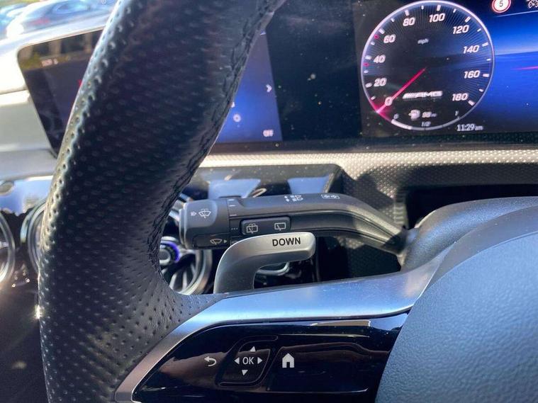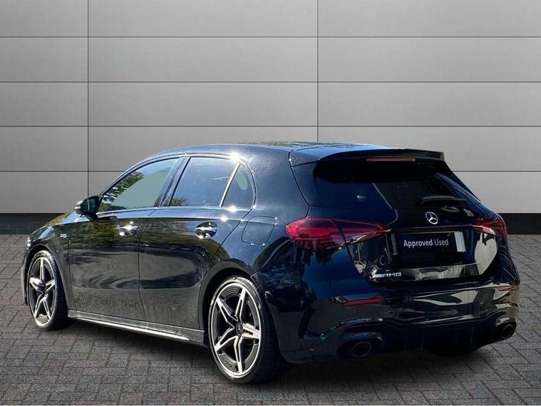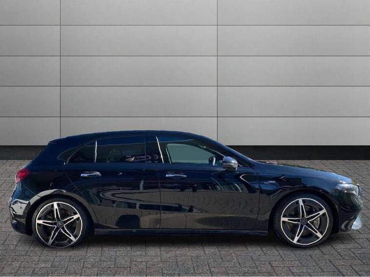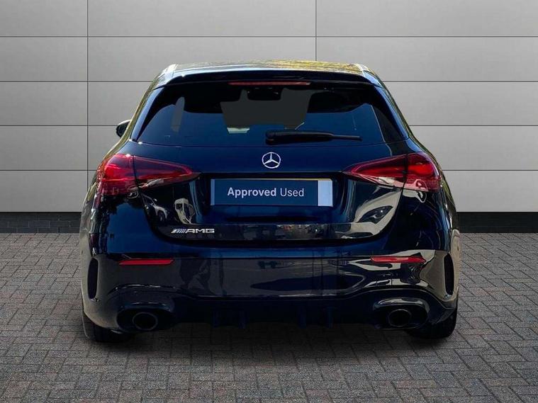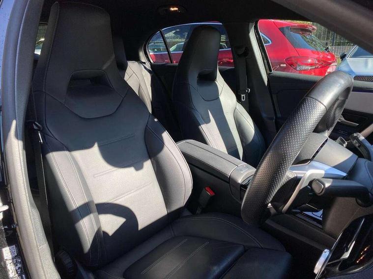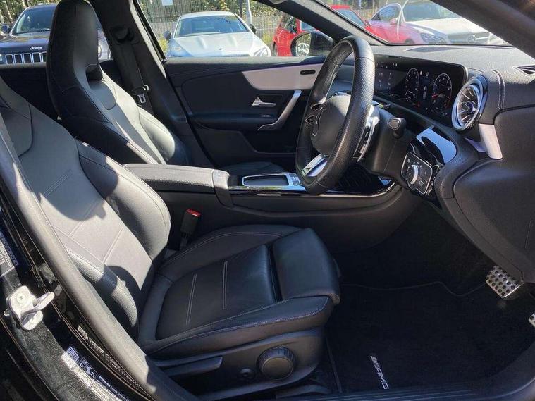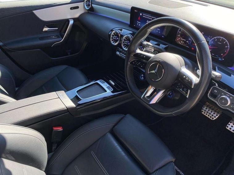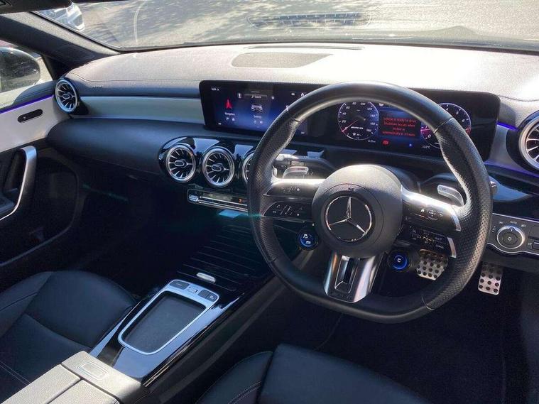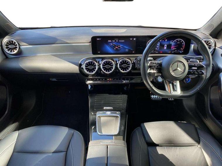 10.25 inch touchscreen central media display, 10.25" Digital instrument cluster display screen, Attention assist, Brake pad wear indicator warning light, Car wash mode, Cruise control + speed limiter, Direct steering, Direction indicators with lane change function, Dual bluetooth interfaces, DYNAMIC SELECT with driving programs (Slippery, Comfort, Sport, Sport+ and Individual), Easy pack tailgate hands-free access, ECO start/stop function, Engine start/stop button, Fluid level warning indicator for fuel, oil, coolant and washer fluid, Hard-disk navigation, Hey Mercedes Voice activation, Lamp failure indicator, MBUX augmented reality for navigation, Mercedes me connect including emergency call system, accident recovery, breakdown and maintenance management, Mercedes me remote services, Outside temperature gauge, Owners manual in English, Pre-installation of private car share, Preinstallation for Mercedes Benz link, Remote boot closing, Service indicator (ASSYST), Smartphone integration with Apple CarPlay and Android auto, Speed sensitive power steering, Trip computer in multifunction display with current consumption indicator, Wireless charging, AMG suspension, DAB Digital radio, MBUX multimedia system, Mercedes Benz advanced sound system (225 W) with 10 speakers, 1 central speaker, speakers on doors, a tweeter on door, one sub woofer + boost amplifier, 4 Electric Front and Rear windows, Adaptive brake lights, AMG body styling - AMG front apron with front splitter and AMG rear apron and visible exhaust tailpipe trim elements, AMG Front apron with flics as air deflector elements on the outer air intakes, AMG radiator grille with twin blade lamella and AMG Lettering, AMG Rear apron with specific diffuser look with four vertical fins and two round chrome plated tailpipe trim elements with a diameter of 90 mm, AMG spoiler lip on roof, Beltline strips in High gloss Black, Body colour bumpers, Body colour door handles with chrome inserts, Body colour side skirt, Electric adjustable and heated door mirrors with integrated LED side indicators, Front splitter and trim elements on the louvres in the outer air inlets, Front wings wheel arches with TURBO 4MATIC lettering, Headlamp assist automatic headlamp activation, Heat insulating dark tinted rear and rear side windows, Heated glass rear windscreen + timer control, LED High level third brake light, LED High Performance headlamps including integral LED daytime running lamps and adaptive highbeam assist, LED tail lamp, Privacy glass, Radio aerial, Rain sensing windscreen wipers with two sensitivity settings, Rear fog lights, Rear side wing doors, Rear windscreen wiper, Wider wheel arches for AMG wheels, Window line trim strip in black, 3 seat bench in 2nd row, 4 way lumbar support, 40:20:40 split folding rear seats, AMG floor mats, AMG Performance steering wheel in nappa leather, Automatic child seat recognition sensor, Black air vents with surround in silver chrome, Black roof lining, Brushed stainless steel sports pedals with rubber studs, Front centre armrest with stowage, Front seat backs luggage nets, Heated front seats, Height/reach adjustable steering column, Illuminated AMG front door sills with changeable cover, Interior lighting - 64 colour Ambient lighting, Interior mirror with reading lamps in black and frameless, Rear armrest with 2 cupholders, Seat occupancy sensor for front passenger seat, Silver coloured aluminium gear shift paddles on steering wheel, Single front passenger seat, Sports seats with integrated headrests, Stowage compartment in centre console with retractable cover, Sunvisors with illuminated vanity mirrors, Twin front cupholders, Two zone thermotronic luxury automatic climate control, AMG night pack - A Class, Light and sight pack - A Class, Mirror package - A Class, Parking pack - A Class, Seat comfort pack - A Class, USB pack plus - A Class, 3 rear 3 point seatbelts, ABS with Brake Assist, Active bonnet, Adaptive brake assist with hold function and hill start assist, Black seatbelts, Bonnet with power domes, Childproof locks manually operated for rear doors and electrically operated for rear power windows, Crash responsive emergency lighting, Driver and passenger head and side airbags, Drivers knee airbag, Dual stage driver/passenger airbags, Electronic parking brake, ESP curve dynamic assist, ESP with ASR, Exit warning, Front and rear seatbelt reminder, Front brake calipers with AMG lettering, ISOFIX and top tether child seat fixing points in two outer rear seats, Tyre pressure monitoring system, Warning triangle and first aid kit, Window airbags, Alarm system/interior protection/immobiliser, Guard 360 degree vehicle protection, Keyless entry lock/unlock, Keyless Go, Remote central locking and crash sensor with emergency opening function, Light longitudinal grain aluminium trim, 19" AMG 5 twin spoke light alloy wheels aerodynamically optimised painted in matt black with high sheen finish, Summer tyres, Tirefit sealant kit,