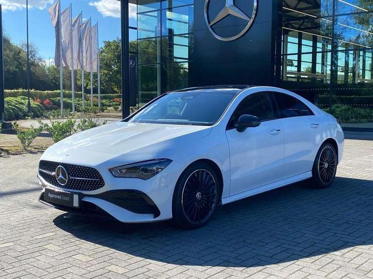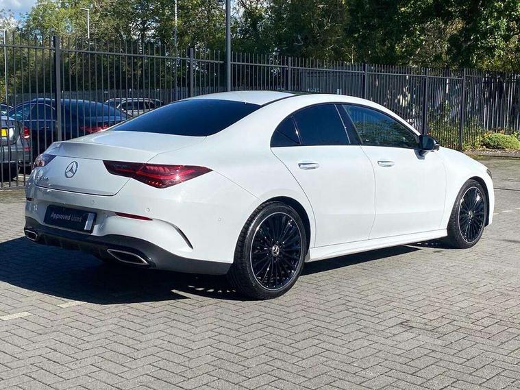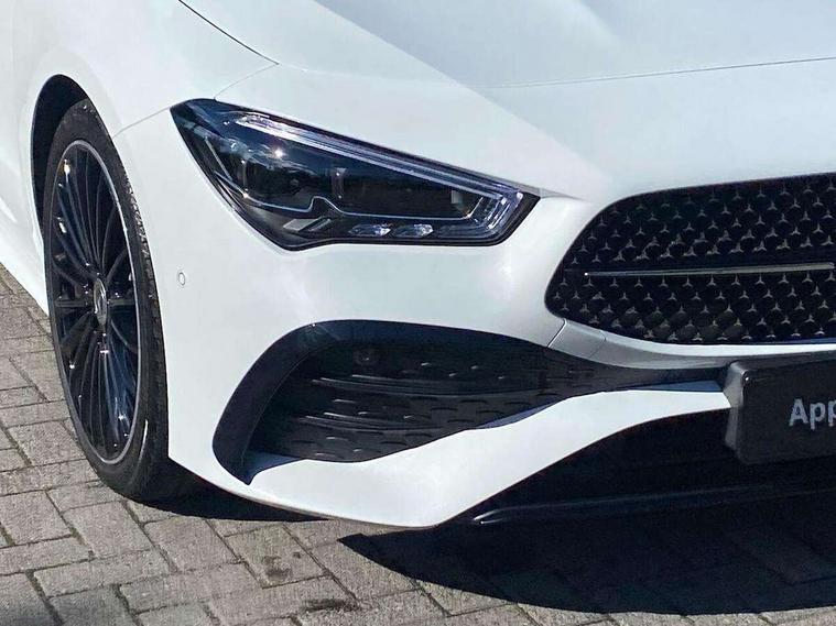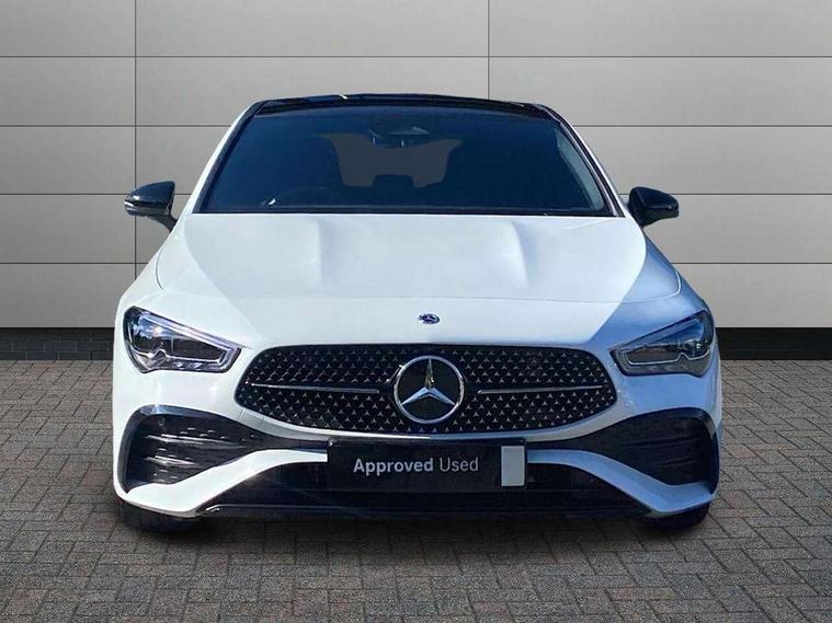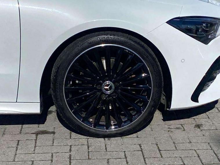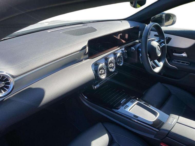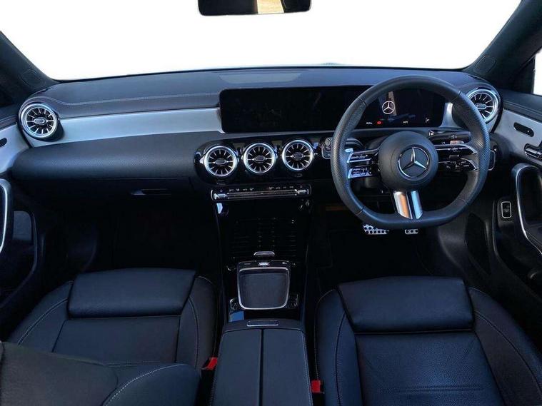 10.25 inch Instrument display with digital cockpit, 10.25 inch touchscreen central media display, Active lane keeping assist, Attention assist - Monitors steering behaviour and long journey fatigue, Bluetooth connection, Car wash mode, Cruise control with limiter, Direct steer system, DYNAMIC SELECT with a choice of driving modes (ECO, Comfort, Sport and Individual), ECO start/stop function, Fluid level warning indicator for fuel, oil, coolant and washer fluid, Hard-disk navigation, Hey Mercedes Voice activation, Lamp failure indicator, MBUX augmented reality for navigation, Mercedes me connect including emergency call system, accident recovery, breakdown and maintenance management, Mercedes me remote services, Outside temperature gauge, Owners manual in English, Pre-installation of private car share, Radio aerial integrated into front and rear windshields, Service indicator (ASSYST), Smartphone integration with Apple CarPlay and Android auto, Traffic sign assist, Trip computer in multifunction display with current consumption indicator, Wireless charging in the front centre console, Comfort suspension with ride height lowering, Rear axle multi-link, DAB digital radio tuner, MBUX multimedia system, Mercedes Benz advanced sound system (225 W) with 10 speakers, 1 central speaker, speakers on doors, a tweeter on door, one sub woofer + boost amplifier, Pre installation for Mercedes Benz Link, Adaptive brake lights, AMG body styling with AMG front apron and rear apron and visible exhaust tailpipe in chrome trim elements, Body colour door handles, Electric panoramic sunroof with automatic tilt and convenience closing fuinctions, rain sensor auto closing and electronic roller sunblind, Electric windows, Electrically adjustable and heated door mirrors with integrated LED indicators, Exhaust system with 2 Visible tailpipe trim elements and rear apron with trim in chrome, Hand free access, Headlamp assist automatic headlamp activation, Heated glass rear windscreen + timer control, High gloss beltline strips, High level LED third brake light, Integrated LED daytime running lights, Interior mirror with black reading lamps and frameless, LED tail lamp, Multibeam LED headlamps with adaptive highbeam assist plus, Privacy glass with dark tinting on rear side windows and rear window, Radiator grille with Mercedes-Benz pattern in chrome and central Mercedes star, single louvre in high-gloss black with chrome inserts, Rain sensing windscreen wipers with two sensitivity settings, Rear boot, Rear fog lamp, Rear side wing doors, Variable front intermittent wipers, 3 seat bench in 2nd row, 3 twin spoke flattened multifunction steering wheel in nappa leather - horizontal twin spoke in high gloss black, vertical twin spoke in silver chrome, 40:20:40 split folding rear seat backrests, Air conditioning - Two zone thermotronic luxury automatic climate control with display, Air vents with surround in silver chrome, Automatic child seat recognition sensor, Black roof lining, Brushed stainless steel sports pedals with rubber studs, Electrically adjustable front memory seats including 4 way lumbar support, Floor mats with stitched AMG lettering, Fluorescent jacket, Front centre armrest with stowage, Galvanished gear shift paddles in silver chrome, Heated front seats, Illuminated front door sills with Mercedes Benz lettering and changeable cover, Interior lighting - 64 colour Ambient lighting, Luggage net on driver/front passenger seat backrest, Manually height and reach adjustable steering column, Rear armrest with two integral cup holders for drinks, Rear head restraints, Single front passenger seat, Sport seats with fixed head restraints, Stowage compartment in centre console with retractable cover, Sunvisors with illuminated vanity mirrors, Twin front cupholders, Two outer rear seat isofix and top tether child seat fixing points, Keyless go comfort pack - CLA, Light and sight pack - CLA, Mirror pack - CLA, Night package - CLA, Parking pack with 360 degree camera - CLA, Seat comfort pack - CLA, USB package plus - CLA, Active bonnet pedestrain safety measure which detects an impact and raises bonnet by 65mm, Adaptive brake assist with hold function and hill start assist, Anti lock braking system (ABS) with brake assist, Black seat belts, Bonnet with power domes, Brake calipers with Mercedes-Benz lettering, Brake pad wear warning indicator, Childproof locks manually operated for rear doors and electrically operated for rear power windows, Crash responsive emergency lighting, Driver and front passenger head and sidebags, Driver and front passenger windowbags, Drivers knee airbag, Dual stage driver and front passenger airbags, Electric parking brake, Electronic stability programme with acceleration skid control, ESP curve dynamic assist, Exit warning, Front and rear seatbelt reminder, Front passenger seat occupancy sensor, Perforated front brake discs, Sports braking system, Three point rear seat belts, Tyre pressure monitoring system, Warning triangle and first aid kit, Alarm system with immobiliser and interior protection -Thatcham category 1, Guard 360 deg vehicle protection - tow away protection with visual, acoustic warning, interior monitoring, preinstallation for parking damage, Remote central locking and crash sensor with emergency opening function, Light aluminium with longitudinal grain interior trim, 19" AMG multi-spoke black painted light alloy wheels with high sheen rim finish, Summer tyres, Tirefit tyre sealant kit,