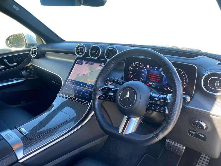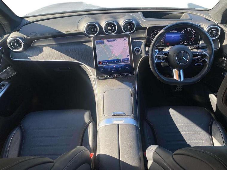 11.9" high resolution multimedia colour display, 12.3" Digital individually configurable instrument display, Acoustic presence indicator, Attention assist, Collision prevention assist plus, Direct steer speed sensitive steering, DYNAMIC SELECT with a choice of driving modes (ECO, Comfort, Sport, Sport+ and Individual), Easy pack automatic powered tailgate, eCall emergency call system, ECO start/stop function, Fingerprint scanner, Fluorescent jacket for driver, Hard disk navigation, Head up Display, Instrument display in miles with English lettering, MBUX navigation premium, MBUX voice control activated by keywords "Hey Mercedes", Mercedes me connect, Outside temperature display, Remote and charging services plus, Remote boot release, Road sign recognition system, Service indicator (ASSYST), Smartphone integration, Status display for rear seat belts in instrument cluster, Wireless charging, 1 x type 2 and 3 phase 4m straight wallbox cable, 49 litre fuel tank, 4MATIC permanent four wheel drive, 7.4 kW monophase on board charger, 9G TRONIC plus automatic transmission, Alternating current charging system (AC charging), Comfort suspension, Petrol Particulate Filter (PPF), Residual engine heat utilisation, Self levelling suspension, Burmester 3D surrround sound system, DAB digital radio tuner, MBUX extended functions, Sound personalisation, USB ports x 2 USB C ports in centre console, Adaptive high beam assist plus, Aluminium look running boards with rubber studs, Aluminium roof rails, AMG bodystyling front apron, rear apron and side skirts, AMG Line exterior, Auto headlights, Body colour bumpers, Digital light LED headlights with projection function, Electric panoramic glass sunroof, Electrically adjustable door mirrors, Front and rear electric windows, Headlight washers, Heat and noise insulating acoustic glass, Heat insulating dark tinted glass, Heated door mirrors, Heated rear window, Integrated LED daytime running lights, LED indicator lights, LED rear fog lights, LED tail lamp, LED third brake light, Radiator grille with Mercedes Benz pattern and integreated Mercedes star and louvre in dark grey matt with chrome inlay and black frame, Rain sensor windscreen wipers, Rear side wing doors, Rear wiper, Transparent Bonnet, Two chrome plated tailpipe trim elements, Welcome and follow-me home light functionality, Wider wheel arch for AMG wheels, 3 seat bench in 2nd row, 40:20:40 split folding rear seats, Ambient light in 64 colour with dynamic multicolour LED interior lightings, AMG line interior, AMG sports seats, Automatic child seat recognition sensor, Black fabric roof lining, Black floor mats with AMG lettering, Double cup holder in centre console, Easy-pack removable load compartment cover, Electrically height/reach adjustable steering column, Front centre armrest with stowage compartment, Front head restraints, Galvanised steering wheel gearshift paddles, Heated front seats, Illuminated door sill panels with Mercedes Benz lettering, Illuminated glove compartment, Instrument panel and beltlines in Artico man made leather in nappa look, Multi function steering wheel with audio and onboard settings control, Multifunction sports steering wheel in nappa leather, Rear centre headrest, Rear head restraints, Rear top tether child seat ISOFIX attachment, Single front passenger seat, Sports pedals with stainless steel surfaces and rubber studs, Steering wheel with audio and onboard settings control, Sun visors, THERMOTRONIC 4 zone automatic climate control, Anti theft protection package - GLC, Boot comfort package - GLC, Exterior chrome package - GLC, Interior chrome package - GLC, Interior lighting pack - GLC, Memory pack - GLC, Mirror pack - GLC, Parking package with 360 degree camera - GLC, Seat comfort package - GLC, Stowage space package - GLC 300e/300de, USB Package - GLC, 3 rear 3 point seatbelts, Anti-lock braking system (ABS), ASR traction control, Automatic front passenger airbag deactivation, Black seat belts, Brake calipers with Mercedes-Benz lettering + perforated brake discs, Child proof door locks, Dual-stage airbags - driver and front passenger, driver knee bag and window bags for driver, front passenger and rear passengers, Electronic parking brake, Electronic stability programme (ESP) with curve dynamic assist and cross wind assist, Front and rear seatbelt reminder, Front seatbelt pretensioners, Hill start assist, Tyre pressure monitoring system, 360 degree guard vehicle protection plus, Anti theft alarm system with preinstallation for collision detection, Dashcam, Immobiliser, Keyless Go entry and starting function, Anthracite lime wood trim, Centre console in metal structure finish, 20" AMG multi spoke light alloy wheels in painted black rim flange with high sheen finish, Summer tyres, TIREFIT with tyre inflation compressor,