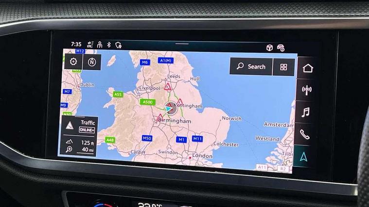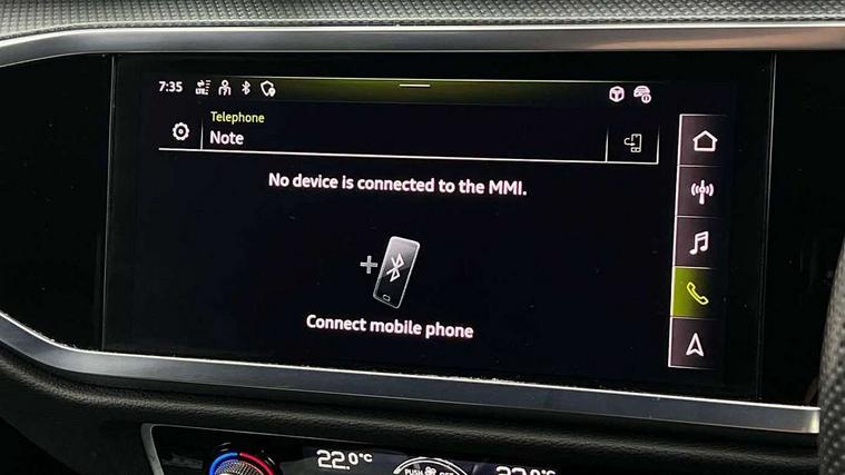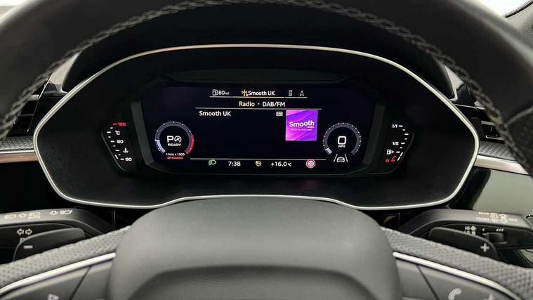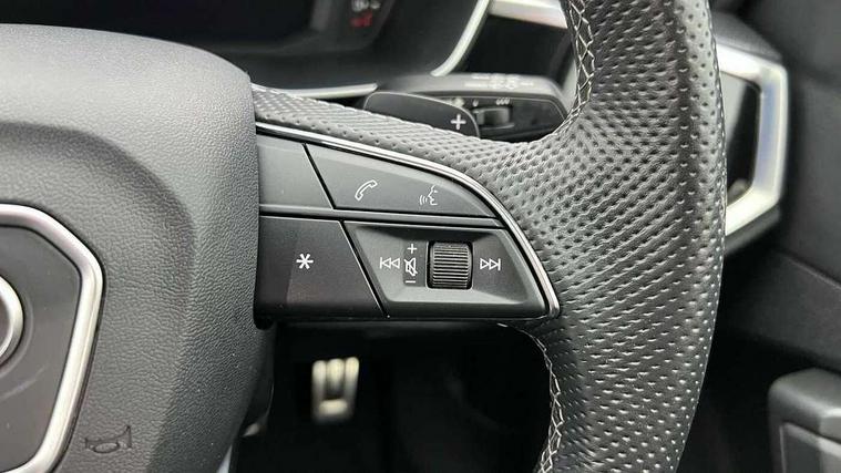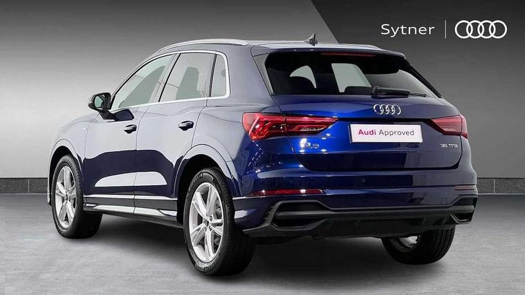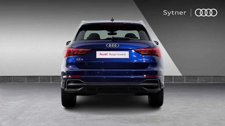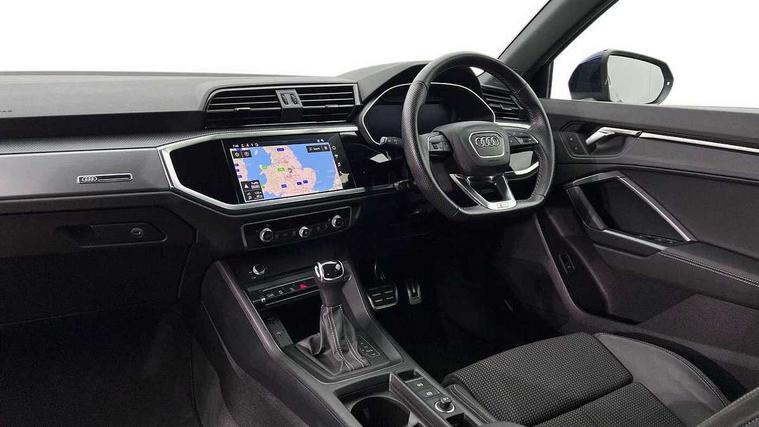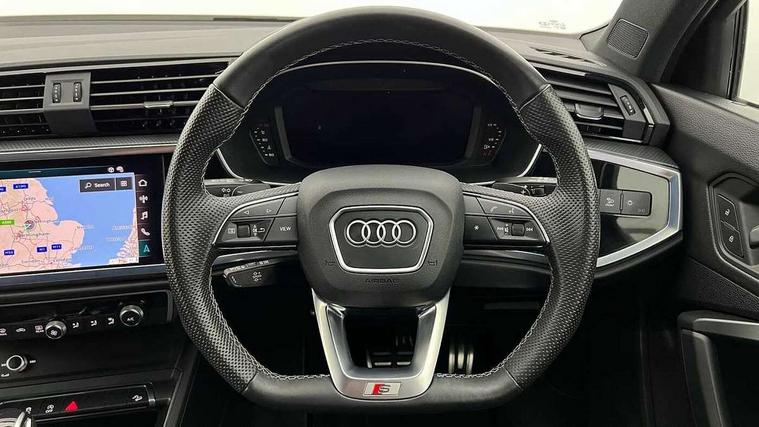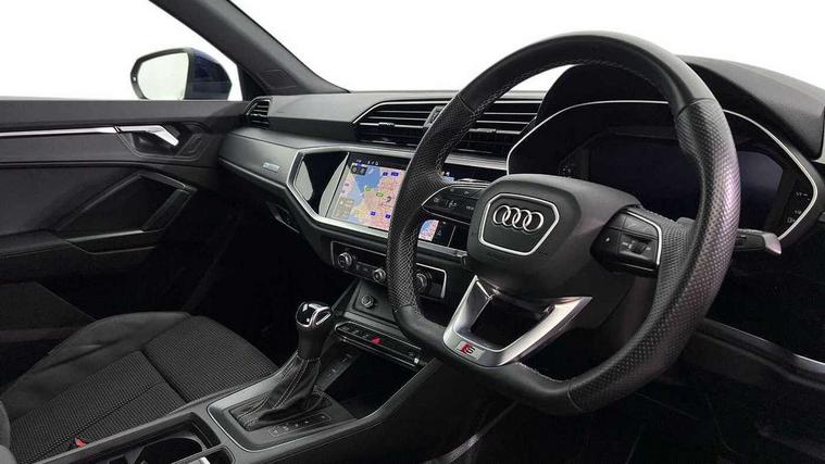 Amazon alexa Integration, Audi drive select, Audi lane departure warning, Audi Virtual Cockpit - 10.25" display, Bluetooth interface, Camera based traffic sign recognition, Legal emergency call, MMI Navigation Plus with high resolution 10.1 inch touchscreen colour display, Power operated tailgate, Progressive steering, Service interval indicator, Smartphone interface includes wireless Apple carplay/Android Auto, Start stop system with recuperation, Voice control system with natural language interaction, Sports suspension, 2 USB-C ports with charge and data functions, 6 passive loudspeakers, DAB digital radio module, Acoustic windscreen, Aluminium roof rails, Aluminium window trim, Auto dimming frameless rear view mirror, Body colour front spoiler blade, Body coloured bumpers, Electrically folding, adjustable and heated door mirrors with integrated LED side indicators and kerb view function for passenger side, Front and rear electric windows, Front fog lights, Front side air inlets in matt platinum grey, Grille vertical bars in aluminium silver/Matt, High gloss black finish B and C pillars, LED Dynamic rear indicators, LED headlights with LED daytime running lights, LED rear lights, LED third brake light, Privacy glass dark tinted rear and rear-side windows (from B-pillar backwards), Rain and light sensors, Rear diffuser grille in grained matt black, Rear diffuser strip in matt titanium black, Rear side wing doors, Rear wiper, S line badges on front wings, S Line front and rear bumpers, Side skirt insert in matt Platinium grey, Titanium black radiator grille, Variable front intermittent wipers, 12V socket in rear centre console, 3 seat bench in 2nd row, 40:20:40 folding with manual adjustment for 60:40 forwards/backwards position and backrest angle, Adjustable rear seat bench/backrest with centre armrest and cupholder, Black cloth headlining, Dual zone electronic climate control, Front and rear black floor mats with contrast stitching in rock grey, Front and rear headrests, Front and rear roof module including reading lights, Front centre armrest, Glove compartment lighting, Height and reach adjustable steering wheel, Illuminated door sill trims with S logo, ISOFIX child seat mounting for front passenger with airbag deactivation and outer rear seat including top tether attachment point for outer rear seats, Luggage compartment light, Manual front seats with height adjustment, Perforated leather gearknob, Single front passenger seat, Stainless steel luggage compartment sill finisher, Stainless steel pedals, Ambient lighting pack - Q3, Non smoking pack - Q3, 3x3 point rear seatbelts, 6 airbags - Driver, front passenger, curtain and side windows, Audi pre-sense front with pedestrain and cyclist recognition, Electrically operated child locks on rear doors, Electromechanical parking brake, Electronic stabilisation control including ABS, ASR and EDL, Front seatbelt reminder, Hill descent control, Hill hold assist, Pre sense basic, Seatbelt monitoring, Tyre pressure warning, Warning triangle and first aid kit, Anti theft alarm, Anti theft wheel bolts, Immobiliser, Remote central locking, Dark matt brushed aluminium inlay, Detail dashboard around MMI touch colour display in glass look, black with surround in aluminium look, Leatherette door armrest,