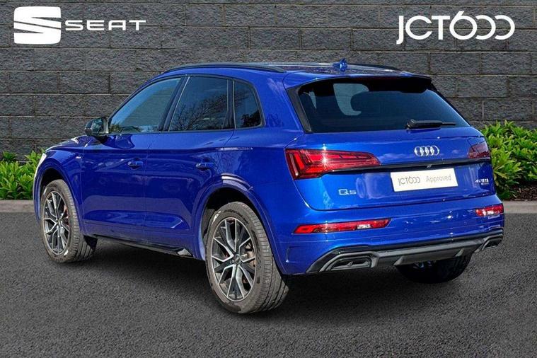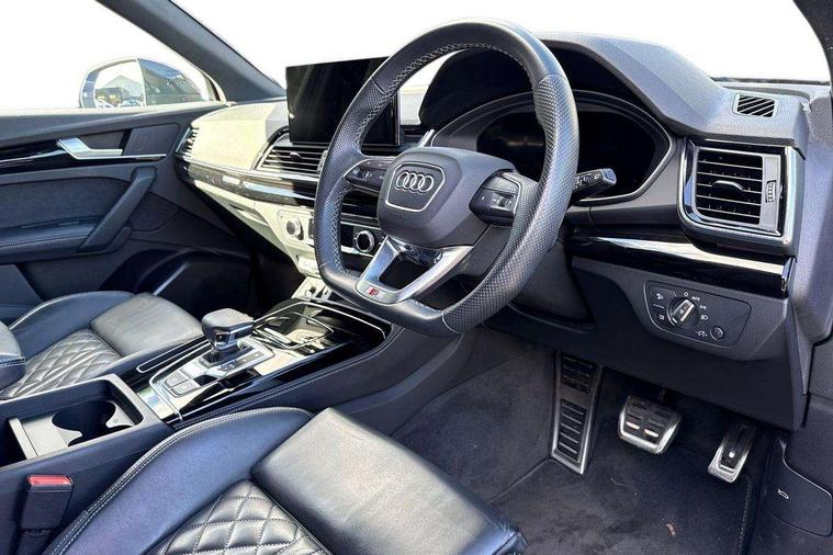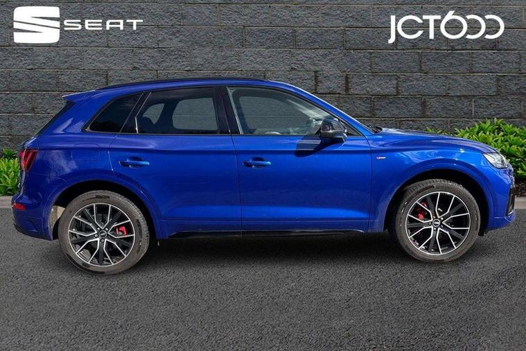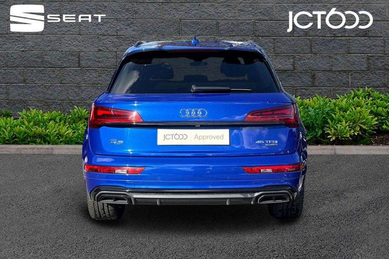 Audi connect safety and service (e-call), Audi connect with Amazon Alexa Integration, Audi drive select, Audi virtual cockpit plus with 12.3" screen and three different layout designs, Audi wireless smartphone interface, Automatic start-stop system with coasting functionality and efficiency programme, Bluetooth interface, Electro - mechanical power assisted steering, MMI navigation plus with 10.1" touch screen, Power tailgate, Reversing camera, Service interval indicator, Voice control system with Audi hotword activation "Hey Audi", Quattro on demand, S line sports suspension, 2 x USB charging port with aux input socket, DAB Digital radio, Acoustic windscreen, Audi beam with Audi rings logo, Audi matrix LED headlights with dynamic front and rear indicators, Audi rings at front and rear in black, Audi rings decal on rear doors, Auto dimming door mirrors, Auto dimming rear view mirror, Automatic headlights and windscreen wipers, Black door mirrors, Black roof rails, Body colour bumpers, Body colour underbody protection, Chrome plated exhaust trims, Daytime running lights, Door sills in Selenite silver, Electric adjustable/heated/folding door mirrors, Front air inlet surrounds in titanium black, Front and rear electric windows, Headlight washers, High gloss black B pillar trims and triangular rear door trim, High level LED brake light, Rear chrome trim strip below lights, Rear privacy glass and rear side windows, Rear side wing doors, Rear spoiler, Rear wiper, Roof bars, Without model and engine badging at rear, 3 rear headrests, 4 way electric lumbar support for driver and front passenger, 40:20:40 split folding 3 rear bench seat in 2nd row with rear centre armrest, Black cloth headlining, Comfort front centre armrest, Contrast stitching on seats, steering wheel and gear lever gaiter, Deluxe 3 zone electronic climate control, Electrically adjustable front seats, Fine Nappa leather upholstery with diamond pattern contrast stitching + front sport seats with S embossed logo, Front/rear floor mats, Gear lever in black leather, Heated front seats, Height adjustable front head restraints, Height/reach adjustable steering column, Illuminated door sill trims with S logo, ISOFIX child seat mounting and top tether, Luggage compartment cover, Rear seat bench plus, Removable luggage compartment floor, Single front passenger seat, Stainless steel pedals, Sunvisors with vanity mirrors, Black styling package - Q5 Edition 1, Extended interior upholstery pack - Q5, Extended LED Interior multi coloured Lighting Pack - Q5, 3 point seatbelts on all seats, 6 airbags - Driver, front passenger, curtain and side airbags, Electrically operated child locks on rear doors, Electromechanical parking brake, Electronic stabilisation control including ABS, ASR and EDL, Front and rear brake calipers painted in red, Front passenger airbag deactivation, Hill descent control, Hill hold assist, Multi collision brake assist, Pop-up bonnet for pedestrian protection, Pre sense city, Seat belt force limiter, Seatbelt monitoring, Tyre pressure warning, Warning triangle and first aid kit, Anti theft alarm, Anti-theft wheel bolts, Keyless Go access/ignition system, Remote central locking, Piano black finish inlay,