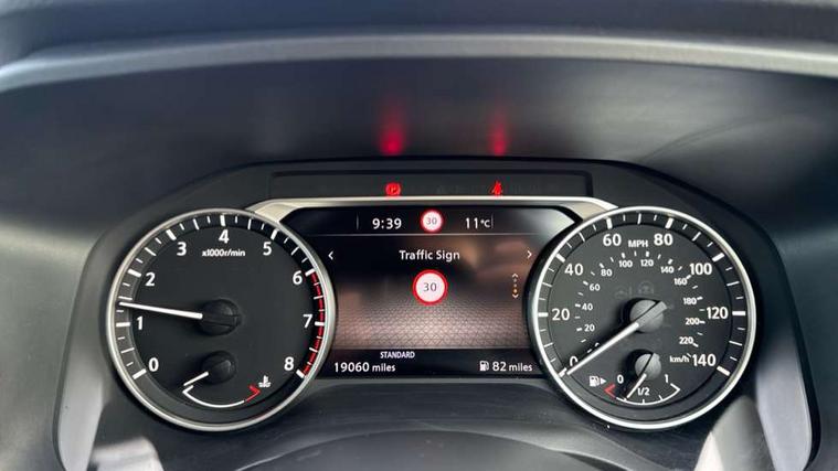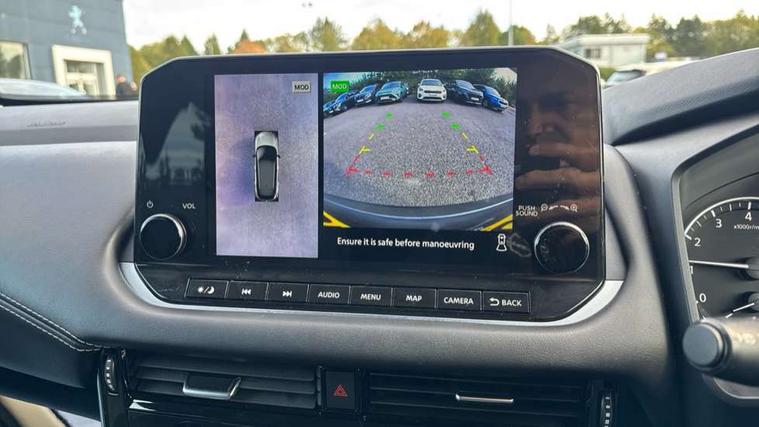 Android auto/Apple CarPlay (Wired), Blind spot warning, Drive modes (sport, normal, eco), Electric speed sensitive power steering, Emergency and breakdown call, Front and rear parking sensors, Full Digital 12.3" TFT Digital Combimeter, Google maps services - search, weather, 3D maps and Google street view, Idle stop/start system, Intelligent around view monitor, Intelligent Cruise control (ICC), Intelligent driver alert system, Intelligent forward collision warning, Intelligent lane intervention, Lane departure prevention, Lane departure warning system, Maximum speed limiter, Moving object detection, Nissan connect 12.3 inch touchscreen infotainment system, Nissan connect navigation, Push button starter, Rear cross traffic alert, Rear view camera, Remote control services - door locks, lights, horn and car locator, Telematics - notifications and connectivity services, TomTom live traffic services, Traffic sign recognition with legal speed adjustment, Trip computer, Virtual personal assistant and firmware over the air capability, Wireless apple carplay, 6 speakers, AM/FM audio system with DAB, Bluetooth audio streaming, Front USB connections (Type-A and Type-C), Rear USB charging only ports (Type-A and Type-C), Auto dimming rear view mirror, Auto rear wiper when reversing, Automatic hazard signal with emergency stop signal, Body colour mirror caps, Body coloured door handles, Bodyside mouldings, Chrome side window finisher, Door handle with button, Dusk sensor, Electric auto folding door mirrors, Electrically adjustable and heated door mirrors with LED turn indicator, Follow me home headlights, High beam assist, Intelligent auto headlights, LED daytime running lights, LED Headlights, LED rear lights, One touch front and rear electric windows with remote opening and closing, Partially body coloured bumpers, Privacy glass, Rear bumper with graphite insert, Rear reversing light (bulb lighting), Rear roof spoiler, Rear side wing doors, Rear styling plate, Shark fin antenna, Splash free rain sensing wipers, Super UV and infrared cut glass, Three blink turn signal, 12v power socket in dashboard and luggage, 2 way electrical driver lumbar adjustment, 2x Rear coat hooks, 3 bench rear seats in 2nd row, 3 rear headrests, 4 folding assist grip, 6 Luggage hooks - 4 on floor, 2 on side, 6-way manually adjustable driver's seat, 60/40 split folding rear seat bench, Ambient lighting around centre console, Centre console storage tray, Chrome interior door handles, Cloth monoform upholstery, Driver and front passenger sunvisors with illuminated vanity mirrors, Driver seat back pocket, Dual zone automatic climate control with pollen filter, Front and rear door storage, Front centre console and armrest, Front cupholders x 2, Front door with bottle holders, Glovebox with light, Hard trunk cover, Height adjustable front headrests, Height adjustable passenger seat, Leather shift knob, Leather steering wheel, Luggage board system, Luggage space lighting, Manually adjustable passenger (slide recline + lifter), Multifunction steering wheel, Passenger seat back pocket, Rear armrest with 2 cupholders, Rear door bottle holders, Single front passenger seat, Soft PVC kneepad, Steering wheel switches, Sunglasses holder, Tilt/telescopic adjustable steering wheel, Two rear isofix child seat anchorage points with top tether, Welcome light and console tray ambient lighting, 3x3 point rear seatbelt pretensioners + load limiters, ABS with EBD and brake assist, Active brake limited slip, Auto hold function, Child locks on rear doors, Curtain and front side, far side airbags, Driver and passenger airbags, Driver, passenger and 2nd row rear seat belt reminder, Electronic parking brake, Front seatbelt pretensioners + load limiters, Height adjustable front seatbelts, Hill start assist, Intelligent blind spot intervention, Intelligent front emergency braking with pedestrian, cyclist recognition and junction assist, Intelligent rear automatic braking, Tyre pressure monitoring system, Vehicle dynamic control, Capless fuel filler, Engine immobiliser, Nissan i-key, Remote central door locking with deadlocking, Thatcham Cat.1 alarm, Interior instrumental panel B finisher, 18" Diamond cut alloy wheels, Tyre puncture repair kit,