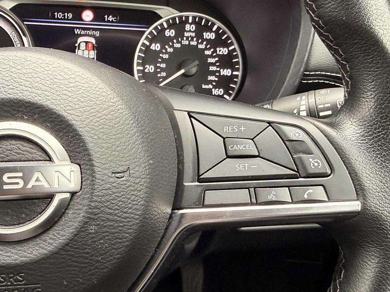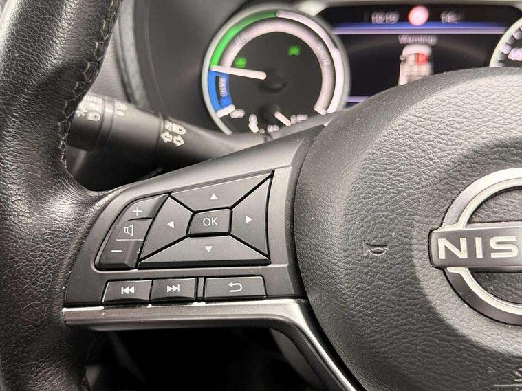 7" full colour TFT screen combimeter, Apple CarPlay and Google Android auto, Drive modes select (Eco, normal and sport), e-Pedal step, Emergency and breakdown call, EV mode selector, Front parking sensor, Intelligent lane intervention, Lane departure warning system, Nissan connect 8" touch screen entertainment system, Nissan connect nav with TomTom traffic, Nissan connect services and Wifi connection, Outside temperature sensor, Power Steering, Rear parking sensor, Traffic sign recognition, Trip computer, Voice recognition, Gasoline particulate filter, 6 speakers, Bluetooth system, USB, Aux-in and 12V socket, DAB Digital radio, Rear console USB port, Auto dimming interior rear view mirror, Auto headlights, Automatic hazard signal with emergency stop signal, Body colour bumpers, Body colour door handles, Electrically adjustable door mirrors with integrated indicators, Follow me home headlights, Front and rear electric window with one touch driver window, Heated and auto folding door mirrors, High beam assist, LED daytime running lights, LED headlamps, LED rear fog lamp, LED rear lamps, Rain sensor windscreen wipers, Rear privacy glass, Rear side wing doors, Rear wiper, Three blink turn signal, 3 height adjustable rear headrests, 3 seat bench in 2nd row, 60/40 split folding rear seat, Automatic climate control, Card holder on driver sunvisor, Cloth upholstery with black and metallic grey syntech leather inserts, Driver and passenger sliding and reclining seats, Driver side rear coat hanger, Driver/passenger sunvisors and vanity mirrors, Front and rear cabin lights, Front armrest, Front door pockets with bottle holders, Front head restraints, Front/rear passenger grab handles, Grey synthetic leather kneepad, Height adjustable driver's seat, Internal chrome door handles, Leather gearshift knob, Leather steering wheel, Luggage board, Luggage space lighting, Monoform sporty seats, Multifunction steering wheel, Rear door bottle holders, Single front passenger seat, Steering wheel mounted gearshift paddles, Telescopic steering wheel adjustment, Two cupholders in front centre console, Two rear isofix child seat anchorage points with top tether, Welcome light and console tray ambient lighting, ABS with EBD and brake assist, Active ride control, Active Trace Control, Driver and passenger airbags, Driver and passenger side airbags, Electric handbrake with auto hold function, Electronic Stability Programme (ESP), Front and rear curtain airbags, Height adjustable seatbelts, Hill start assist, Intelligent emergency braking with pedestrian and cyclist recognition, Rear door child safety locks, Seatbelt reminder for driver/front passenger and rear seats, Single tone horn, Three 3 point rear seatbelts, Traction control, Tyre pressure monitoring system, VDC Dynamic Vehicle Control, Ventilated rear brake discs, Alarm, Immobiliser, Intelligent key and start push button with walk away lock and approach unlock functions, Remote central locking,