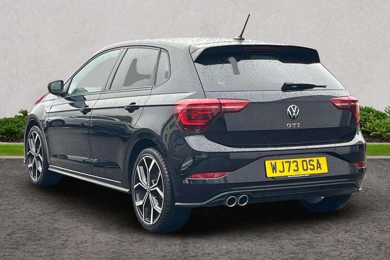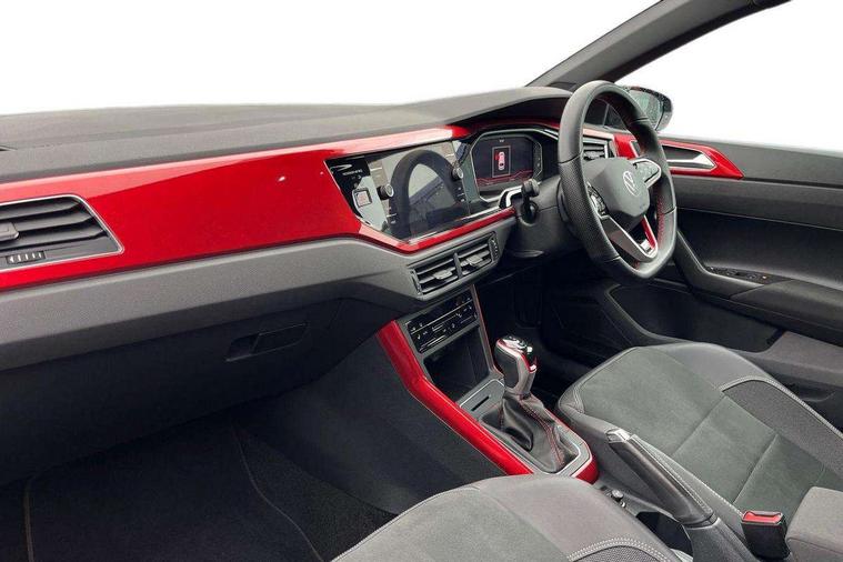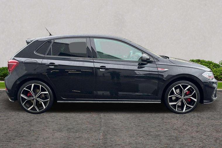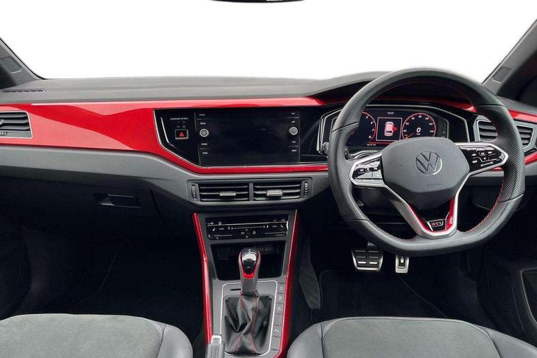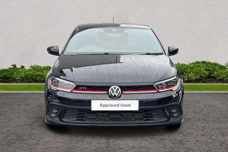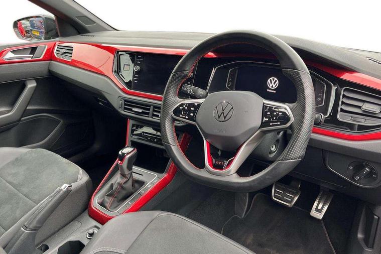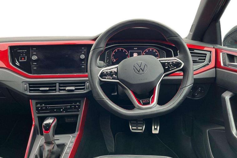Adaptive cruise control with follow-to-stop and speed limiter, Bluetooth mobile phone interface, Digital Cockpit Pro with 10.25" Display, Driver alert system, Dynamic road sign display, Eco mode, Emergency call service, Power assisted speed sensitive steering, Preparation for We connect and We connect plus, Speedo and rev counter, electronic odometer, trip, service interval display and fuel gauge, Travel Assist - Lane keeping system and traffic jam assist, Travel assist including emergency assist, Trip computer, Warning signal and warning light for front and rear seatbelts not fastened, Washer fluid level indicator, Wireless app connect, Adaptive chassis control, Front wheel drive, Heavy duty rear axle, Rear shock absorpion sports version, Sports select suspension lowered by 15mm, Start-stop system with battery regeneration (recuperation - energy recovery during braking), DAB Digital radio, Diversity antenna for FM reception, Front and rear 6 speakers, Body colour bumpers, Body colour door handles, Electric front windows, Front scuff plates in aluminium with GTI logo, Heat insulating darkened glass in side and rear windows, Heat insulating glass windscreen, Power folding adjustable/heated exterior mirrors and front passenger exterior mirror lowering function, Rain sensor, Rear electric windows, Rear fog light, Rear side wing doors, Rear windscreen washer and wiper with interval delay, Sport bumpers with air intakes with honeycomb structure, Third brake light, Twin chrome exhaust tailpipes, 12V power socket in centre console, 2 USB-C ports in the front, 2 USB-C charging sockets on the center console in the rear, 3 rear head restraints, 60/40 split folding rear seat and rear seat bench not split, Air care climatronic air conditoning system with active combination filter and 2-zone temperature control, Black roof lining, Chrome plated radiator grille inserts, air vent surrounds and light switch surrounds, Door and side trim panel, Driver and front passenger seat height adjustment, Driver/passenger sunvisors with illuminated vanity mirrors, Front + rear carpet mats in recycled material, Front centre armrest, Front footwell illumination, Front seat backrest storage pockets, GTI sports gearshift knob in aluminium leather, Handbrake lever handle in leather, Headliner in recycled material, Isofix child seat preparation easy-fit (for two outer rear seats, and front passenger seat) compatible with I-size, LED interior light with switch off delay and dimmer, 2 reading lights front and rear, Luggage compartment cover, Luggage compartment floor, Luggage compartment lighting, Single front passenger seat, Stainless steel pedals, Standard pedal cluster, Three spoke leather wrapped multifunction sports steering wheel with shifting paddles, IQ LED matrix headlights pack - Polo, Light and sight pack - Polo GTI, 3 point height adj front seatbelts + pretensioners, 3x3 point rear seatbelts, ABS, Driver and front passenger airbag with front passenger airbag deactivation, Drivers and front passengers safety optimised head restraints, ESC (Electronic stability control) + EDL (Electronic Differntial lock) and ASR (Traction control), Extended and predictive pedestrian/ cyclist protection, Front and rear disc brakes with red brake calipers, Front curtain and side airbags with center airbag, Hill hold control, Manual child lock in rear doors, Two tone horn, Tyre pressure loss indicator, Alarm with interior protection, Anti-theft alarm system with interior monitoring, backup horn, and towing protection, Anti-theft wheel bolts, Electronic engine immobiliser, Chrome applications on rotary light, mirror adjustment, window regulator switches, outlet with frame in black, Low rolling resistance tyres,