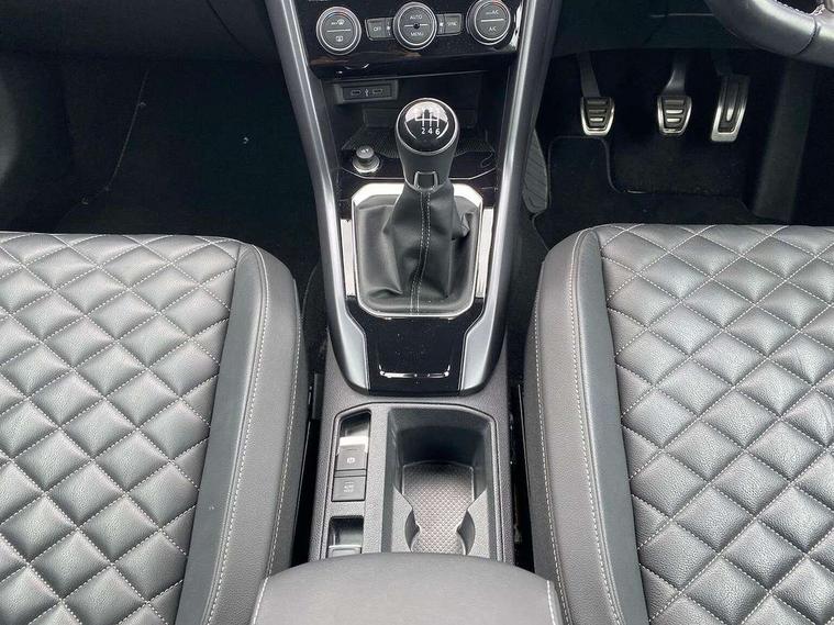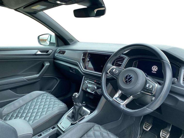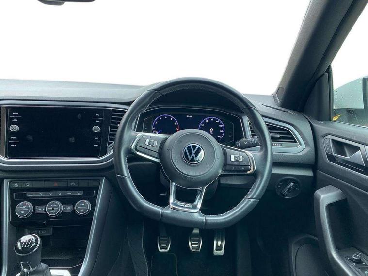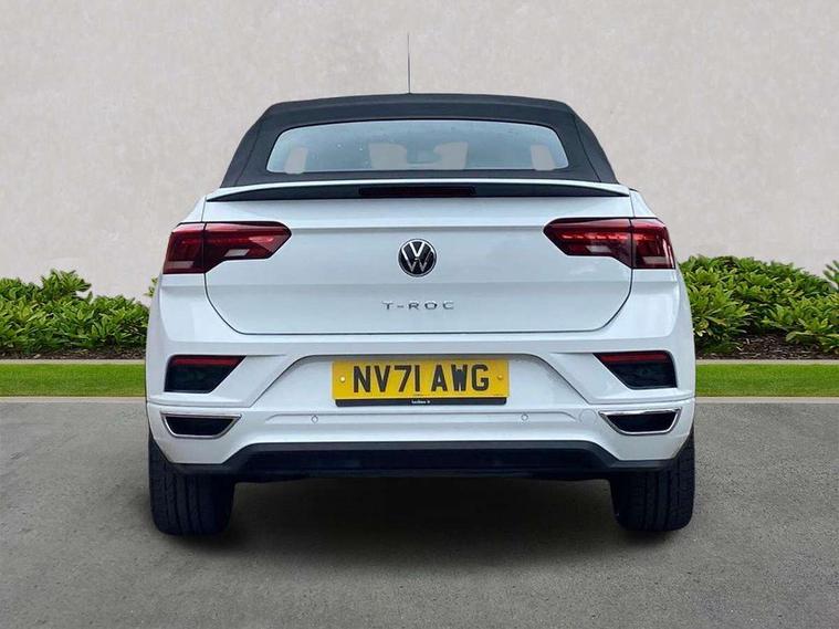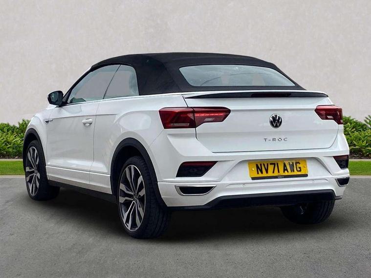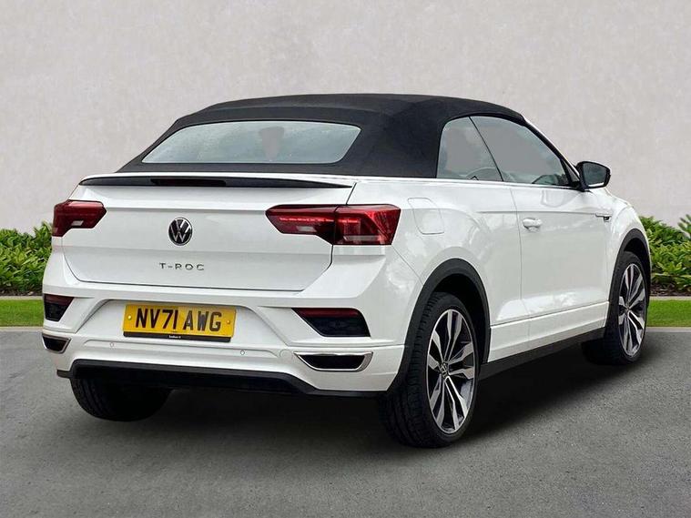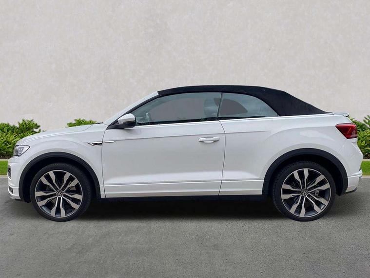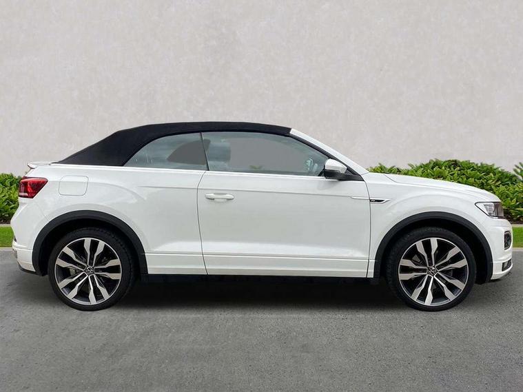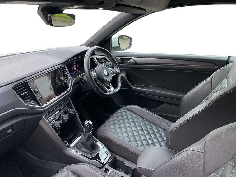 8" colour touch screen, Active Info display 10.25" high resolution TFT dash display with customisable menu and information, Adaptive cruise control, Bluetooth telephone and audio connection for compatible devices, Brake pad wear indicator, Car information display, Car-Net Security and Service, Driver alert system with fatigue detection, Driver tips and journey analysis, Dynamic road sign display, Emergency call service, Lane assist with warning text instrument cluster, Mobile phone interface, Modified key software - reduce switch off time for key status change to Long no motion, Multifunction computer with visual gear change recommendation for fuel consumption, Navigation system discover media including streaming and internet, Online services, Progressive power assisted steering, Speedo and rev counter, electronic odometer, trip, service interval display, digital clock and fuel gauge, Start/stop system with brake energy recovery, Tailgate/trunk lid release from outside, Warning sound and light for front seatbelts unfastened, Wired and wireless app connect, Bluetooth - Simultaneous pairing of 2 compatible mobile devices, DAB Digital radio, Diversity antenna for FM reception, Music playback - MP3, WMA and AAC files, SMS functionality - read, compose and send SMS messages using touch-screen display, Title and cover art display, USB-C Interface and USB charging socket, WeConnect plus, Auto dimming interior rear view mirror, Automatic coming/leaving home lighting function and daytime running lights, Automatic hazard lights activation under emergency braking, Body colour rear roof spoiler, Body coloured exterior mirror housings and door handles, Chrome effect left and right trapezoid exhaust tailpipe fascia surround, Chrome trim on upper and lower radiator grille, Darkened LED tail lamp, Dusk sensor, Dynamic headlight range control with self adjusting whilst driving, Electrically power adjustable, heated, folding, auto dimming, front passenger exterior door mirror lowering function, Front and rear electric windows, Front fog lights with static cornering function, Heat insulating glass windscreen, High level 3rd brake light, LED darkened rear light clusters, LED headlamps with automatic range adjustment and unique signature LED separate daytime running lights, LED rear number plate lights, LED tail lamp rear comination lamps, Power operated canvas convertible top, R-Line design body coloured bumpers, Rain sensor, Rear exhaust tailpipe, Rear fog lamp, Volkswagen roundel, Windscreen wiper with intermittent wipe light, 12V socket in centre console storage area, 2 front reading lights, 3 spoke leather wrapped multifunction sport steering wheel, 50/50 rear seat bench split folding rear seat backrests, Activated charcoal canister for intensified evaporation system, Chrome plated surround to light, mirror and window switch, Climate control - 2 zone electronic air conditioning with automatic air recirculation and allergy filter, Door and side trim panel in foam film, insert in leatherette, Entry aid easy entry (Front folding seats), Front + rear carpet mats, Front centre armrest, Front cupholders x 2, Front seat back storage pockets, Front sports comfort seats with manual height adjustment, Glove Compartment with light, Height/reach adjust steering wheel, Illuminated vanity mirrors in sun visors with air bag label on sun visor and b-pillar, Instrument lighting, white adjustable panel illumination, Interior light delay, Interior light in footwell, Isofix easy fit child seat preparation for 2 outer rear seats, Luggage compartment lighting, Power adjustable lumbar support in front, Rear head restraints, Scuff plates in door apertures, Stainless steel pedals, Storage compartments in driver and front passenger doors, Unique R Line door sill protectors, White ambient lighting, 2 x 3-point rear seatbelts, ABS, Autonomous emergency braking, Driver and front passenger safety-optimised head restraints, Drivers and front passengers airbags with passengers deactivation switch, Drivers seatbelt reminder, Electronic parking brake with auto hold, Electronic stability control (ESC) includes ASR, EDL, EDTC and trailer stabilisation function, Front assist with city emergency braking and pedestrian monitoring, Pedestrian monitoring, Predictive pedestrian protection, Rigid safety cell with front and rear crumple zones, Side airbag/thorax airbag system, for front passengers, Single tone horn, Three point height adjust front seatbelts + pretensioners, Tyre pressure loss indicator, Tyre pressure monitor, Ventilated front and rear disc brakes, Volkswagen roadside assistance, Alarm with interior protection and deactivation via infotainment system, Electronic engine immobiliser, Shadow steel matt decorative inserts in dash and door panel,