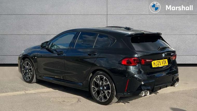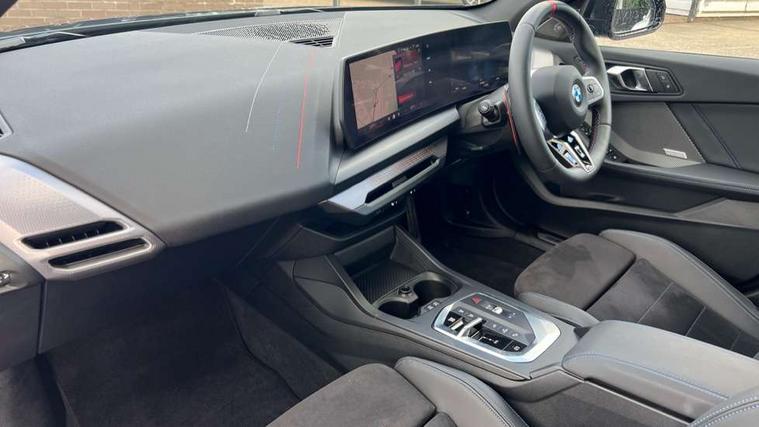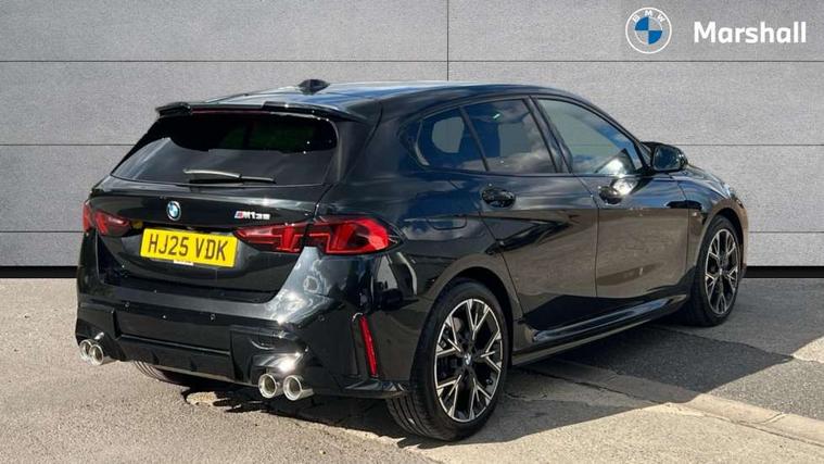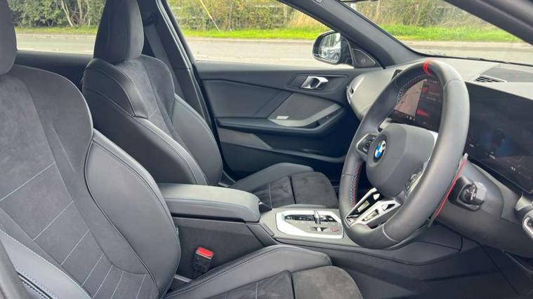 Active guard plus, Attentiveness assist, Bluetooth / WiFi interface for wireless connection of mobile terminal devices and audio streaming, BMW ConnectedDrive online services, BMW Live cockpit plus, BMW Teleservices, Check Control warning system for monitoring of lights and door/luggage compartment open warning, Eco pro mode, Electric power steering, Electro hydraulically controlled multi-plate clutch transfers drive to rear axle and with power take-off device located on the front differential., Energy efficient operating strategy, Evasion assistant, Flat airvents in instrument panel with adjustable slats, Front and rear parking sensors, Front axle single joint with specific axle kinematics to minimise drive influences on steering + provide increased rigidity agile driving behaviour, Gearshift time display in manual mode, Integrated owners handbook, Left turn warning with brake function, M Sports steering with M135i xDrive specific settings, My modes (Personal / Efficient / Sport), Oil sensor for level and grade, On board computer, Optimum shift indicator, Park assist including reversing assistant, lateral parking aid and reversing assist camera, Personal e-SIM, Personal Profile, Pull away assistant, Rigidly mounted rear subframe - Multi link construction with separate spring / damper configuration and excellent driving characteristics, Speed limit Info including no-overtaking indicator, Speed limiter, Sporty fast gear shifting in sport mode, 49 litre fuel tank, Aluminium lightweight construction, Anti roll bar front and rear, Balancer shaft, Double VANOS, Drive Performance Control, Electronic differential lock, Electronic selector lever, Engine cover with M performance designation, High precision injection, Launch control, M Adaptive suspension, M135i specific heavily de-throttled engine intake air guide, M135i specific high-performance cooling package, M135i specific larger turbocharger with integrated divert-air valve, Petrol Particulate Filter, Steptronic transmission with double clutch, Twin tube gas filled shock absorbers with degressive characteristic curve, VALVETRONIC engine management, Variable, stepless and infinitely adjustable distribution of drive torque between the front and rear axles, xDrive intelligent all wheel drive with M135i specific reinforced components, DAB Digital radio, Harman/Kardon surround sound audio system with 12 speakers, Auto dimming rear view mirror, Automatic windscreen wipers and automatic headlight, Body colour door handles, Body colour roof trims, Cerium grey exterior mirror caps, Direction indicator side lights in exterior mirrors, Electrically adjustable exterior mirror with mirror adjustment switch on drivers armrest and aspheric on driver side, convex on passenger side, Exhaust tailpipe, Cerium Grey with bevelled finish - twin, round 100mm, left and right split, Fading support, Folding side mirrors with auto dimming/folding wing mirrors with auto dimming, Follow me home headlights, Front and rear bumper system with replaceable deformation elements, Front and rear electric windows with open and close fingertip control, anti trap facility and comfort closing, Front door sill finishers with M135i designation, Green tinted heat protection glazing, Heated rear window, High gloss shadowline window frame, Recess cover mirror frames and B/C pillar embelisher trim, High level third brake light, Integrated front windscreen with washer jets, Kidney grille frame in Cerium Grey with Mesh design, LED daytime running lights, LED eyebrow turn indicators, LED Headlights, Lightweight engineering, M Performance exhaust system with valve control and minimised exhaust back pressure, M Performance specific setup, M rear spoiler in high gloss black, M sport roof spoiler, Matt black air guide grilles, Matt black wheel arch trim, Model badge on tailgate right, Nearside reverse light in rear light cluster, Preparation for high beam assistant, Rain sensor, Rear fog lights, Rear side wing doors, Rear window wiper, Reinforced crank drive, new pistons and adapted con rods, Shark fin antenna, Sun protection glass, Trailer stabilisation logic, Visible VIN plate, Welcome lighting, 12V power socket in front centre console with blanking plug, 3 rear seat head restraints, 3 seat bench in 2nd row, 3 spoke Walknappa leather steering wheel, decorative stitching, badge, pearl chrome finish, thumbnails, red centre and black/red high gloss paddles, Anthracite front and rear floor mats, Anthracite headlining, Black boot net with lashing eyes, Cargo function on 2nd seat row, Child seat ISOFIX attachment for two outer rear seats and front passenger seat with anchorage points, Conditioned based service, Driver and front passenger backrest net on rear, Driver and front passenger seat heating, Driver side folding compartment in instrument panel, Folding rear clothes hook, Footrest and pedals in black plastic, Four grab handles integrated in roof lining, Front and rear door pockets with bottle holders, Front and rear side armrest integrated into door trim, Front armrest with storage compartment, Glove compartment, Height adjustable front head restraints, Luggage compartment for bag hooks on left and right, foldable luggage compartment liner and four lashing eyelets, Manual adjust steering wheel, Multi-function controls for steering wheel, Rear seat backrest with manual 60:40 split folding with 3 top tether clips integrated on rear of seat panels, Single front passenger seat, Storage compartment in centre console, Storage compartment in luggage compartment, Stowage of the parcel shelf in luggage compartment trim, Sun visors with vanity mirrors and insert tab, Two front centre console cupholders, Type C two USB ports in rear centre console, Upper retaining strap integrated into backrest rear panels, Connected pack professional - 1 Series, Interior lights pack - 1 Series, M Sport exterior styling aerodynamics pack - 1 Series 135i, 2 tone horn, 3 point seatbelts on all seats, front pyrotechnic be