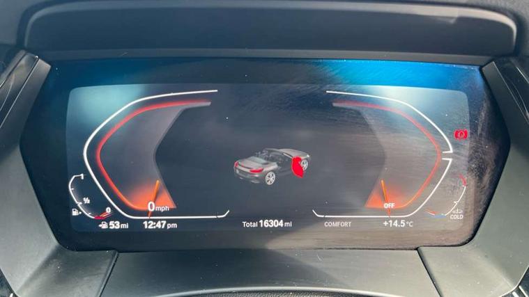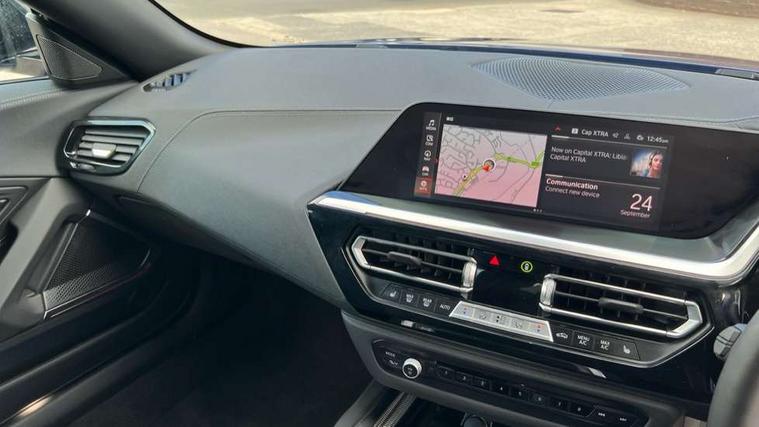 Active guard plus incl speed limit assist, lane departure warning with steering impulse and front collision warning with brake intervention, BMW ConnectedDrive online services, BMW Live Cockpit Professional with nav function/12.3" high resolution instrument +10.25" control display/Intelligent Voice Assist/2 USB/WiFi interface, BMW Teleservices, Condition based service, Electric power steering, Fuel gauge, iDrive touch controller with turn and press function, Instrument cluster, Language version English, Oil sensor for level and grade, warning by check control system, Oil temperature gauge, Optimum shift indicator, Pull away assistant, Run flat indicator, Speed limiter, Speedometer with mph readout, Tachometer, Variable sport steering, Double joint spring, Double VANOS, Drive performance control with ECO PRO comfort + sport mode, Eight speed steptronic sport transmission, with gearshift paddles, Electronic differential lock, Fuel tank breather system, High precision injection, M sport suspension, 2x USB Type C ports in front centre console for charging and data transfer, 2x USB Type C ports in rear centre console for charging, DAB tuner, USB connection, Auto dimming driver's door mirror, Automatic headlight beam throw control with load dependent regulating reaction, dynamic compensation of braking dive and acceleration squat, Door sill finishers with M designation, Door sill strips, Dynamic braking lights comprising activated hazard warning flashers, Electric folding door mirrors, Electric heated rear window, Exhaust tailpipe - split left and right, Extended high gloss shadowline exterior trim, Exterior mirror housing finished in body colour, Fingertip control / anti-trap function on electric window, Follow me home headlight function, Front and rear bumper system with replaceable deformation elements, Green tinted heat protection glazing, Heated windscreen washer jets, Interior rear view electrochromatic mirror with automatic anti dazzle function, Kidney grille in mesh design, LED 3rd brake light, LED daytime driving lights, LED Indicators, LED rear lights, Lightweight engineering, M aerodynamic body kit, M Sport exterior styling, Matt black window recess finisher, Model logo, Rain sensor, Rear boot, Reversing light, Tailgate release handle, Two stage brake force display, Visible VIN plate, Welcome lighting, Wind deflector, Windscreen wipers with adjustable interval, 12V power point in luggage area, 12V power socket in front storage compartment, 2 cup holders in front centre console, Activation of interior lighting, Additional storage compartment - 4 lashing eyes, strap and storage net, Ambient lighting, Battery in luggage compartment, BMW ID, Child seat ISOFIX attachments for passenger seat, Driver and front passenger heated seats, Front and rear armrests integrated in door trim + centre console includes storage compartment and rear centre armrest includes 2 cupholders, Front and rear velour floor mats, Front headrests, Height adjustable mechanically and infinitely variable steering column, Illuminated glovebox, Luggage compartment light, M sport leather steering wheel, M Sport seats for driver and passenger, Microfilter and active carbon filter, Multifunction steering wheel, Single front passenger seat, Sunvisors with vanity mirrors and ticket pocket, Through load system, Two zone automatic air conditioning, Vernasca leather upholstery, Connected package professional - Z4, 3 point front seat belts, Airbags - Front driver and passenger, front and side impact protection, Anti lock braking system (ABS) with brake assist, Automatic Stability Control (ASC), BMW emergency call, Brake energy regeneration, Braking readiness, Cornering brake control (CBC), Crash sensor activating central locking release, hazard warning lights, fuel cut off, interior lighting, safety battery terminal clamp and airbags, Curtain airbags, Deactivation of fuel pump in the event of a crash, Dry braking, Dynamic brake control, Dynamic stability control + (DSC+), Dynamic Traction Control - DTC, Electromechanical parking brake with automatic drive away release and auto hold function, Front and rear brake discs with interior ventilation, Head airbags, Plastic fuel tank, Pyrotechnic seat belt tensioners, Roll over protection, Seat belt force limiter, Seat belt stopper, Seat occupancy protection, Side airbags for driver and passenger, Two tone horn, Tyre pressure monitoring with three level warning strategy, Warning triangle, Centre lock switch, Closing system with central locking, Electronic vehicle immobiliser, Start/stop button with Comfort Go keyless engine start and auto Start/stop deactivation button, Thatcham cat 1 remote alarm, Sensatec dashboard, 18" Double spoke alloy wheels in bicolour ferric grey - style 798M, Reduced rolling resistance tyres, Tool kit, Tyre repair kit,
