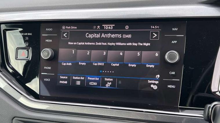Adaptive cruise control without follow-to-stop and speed limiter, Bluetooth mobile phone interface, Digital Cockpit Pro with 10.25" Display, Driver alert system, Dynamic road sign display, Emergency call service, Power assisted speed sensitive steering, Preparation for We connect and We connect plus, Speedo and rev counter, electronic odometer, trip, service interval display and fuel gauge, Standard rear axle, Travel Assist - Lane keeping system and traffic jam assist, Travel assist including emergency assist, Trip computer, Warning signal and warning light for front and rear seatbelts not fastened, Washer fluid level indicator, Wireless app connect, Front wheel drive, Rear shock absorpion, Start-stop system with battery regeneration (recuperation - energy recovery during braking), DAB Digital radio, Diversity antenna for FM reception, Front and rear 6 speakers, Automatic dimming interior rear view mirror, Automatic headlights, Body colour door handles, Body coloured bumpers and radiator grille with chrome trims, Electric front windows, Front fog lights with static cornering function, Heat insulating darkened glass in side and rear windows, Heat insulating glass windscreen, LED separate daytime running lights with coming/leaving home function, Power folding adjustable/heated exterior mirrors and front passenger exterior mirror lowering function, Rain sensor, Rear electric windows, Rear fog light, Rear side wing doors, Rear windscreen washer and wiper with interval delay, Third brake light, 12V power socket in centre console, 2 USB-C ports in the front, 2 USB-C charging sockets on the center console in the rear, 3 rear head restraints, 60/40 split folding rear seat and rear seat bench not split, Air care climatronic air conditoning system with active combination filter and 2-zone temperature control, Ambient lighting, Ceramique headliner, Chrome plated radiator grille inserts, air vent surrounds and light switch surrounds, Door and side trim panel, Driver and front passenger seat height adjustment, Driver/passenger sunvisors with illuminated vanity mirrors, Front + rear carpet mats, Front centre armrest, Front footwell illumination, Front seat backrest storage pockets, Front sports comfort seats, Handbrake lever handle in leather, Isofix child seat preparation easy-fit (for two outer rear seats, and front passenger seat) compatible with I-size, Leather trimmed gear knob, LED interior light with switch off delay and dimmer, 2 reading lights front and rear, Luggage compartment cover, Luggage compartment floor, Luggage compartment lighting, Lumbar adjustment for front seats, Multifunction steering wheel, Single front passenger seat, Standard pedal cluster, IQ LED matrix headlights pack - Polo, Light and vision pack - Polo, 3 point height adj front seatbelts + pretensioners, 3x3 point rear seatbelts, ABS, Driver and front passenger airbag with front passenger airbag deactivation, Drivers and front passengers safety optimised head restraints, ESC (Electronic stability control) + EDL (Electronic Differntial lock) and ASR (Traction control), Extended and predictive pedestrian/ cyclist protection, Front curtain and side airbags with center airbag, Front disc brakes, Hill hold control, Manual child lock in rear doors, Rear drum brakes, Single tone horn, Tyre pressure loss indicator, Alarm with interior protection, Anti-theft alarm system with interior monitoring, backup horn, and towing protection, Anti-theft wheel bolts, Electronic engine immobiliser, Chrome applications on rotary light, mirror adjustment, window regulator switches, outlet with frame in black, Deep iron gloss decorative inserts in dash and front door panels, Low rolling resistance tyres,