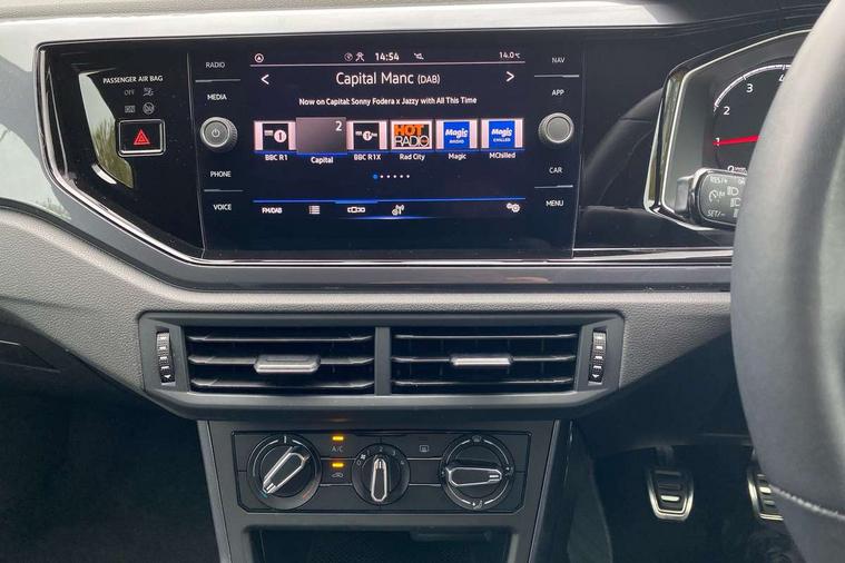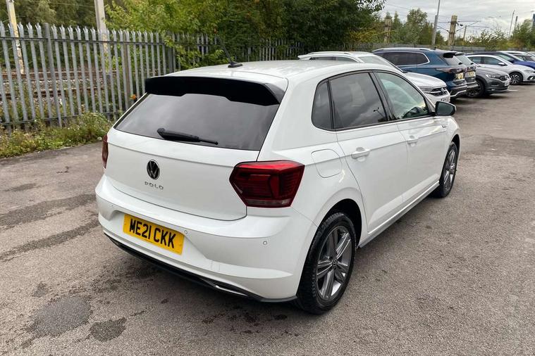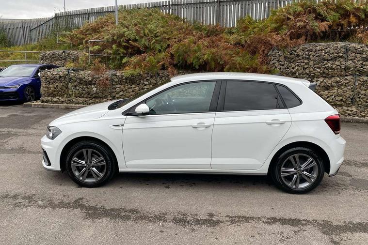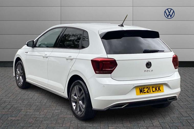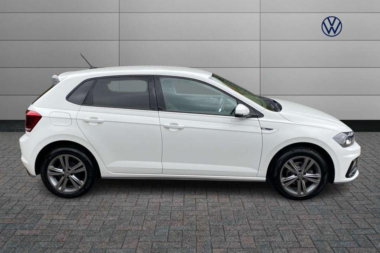 Digital clock, Driver alert system, Emergency call service, Lights on warning, Multifunction computer plus, Power assisted speed sensitive steering, Speedo and rev counter, electronic odometer, trip, service interval display and fuel gauge, Start/stop system, Volkswagen connect, Warning buzzer and light for front seatbelts unfastened, Wireless app connect, Battery regeneration during braking, Galvanished body, Diversity antenna for FM reception, Front and rear 6 speakers, Black grille with chrome surround, Body colour door handles, Body coloured side sills, Chrome trimmed strip on lower bumper, Electric front windows, Electrically adjustable and heated door mirrors with reverse activated kerb view adjustment on passenger's side, Front windscreen washers and wipers with 4 speed intermittent delay, Heated rear window with auto timer, High level 3rd brake light, LED darkened rear light clusters, LED daytime running lights, LED rear number plate lights, Left and right chrome effect trapezoid fascia exhaust tailpipe surrounds, Rear diffuser, Rear electric windows, Rear windscreen washer and wiper with interval delay, reverse activated, Unique R Line badging, 2 bag hooks in luggage compartment, 2 front cupholders and 12 V socket with cover, 3 rear head restraints, 60/40 split folding rear seat, Ambient lighting in front foorwell, front/rear door and dashboard light strips, Carbon flag cloth upholstery, Centre console storage with open storage compartment, Chrome-plated electric mirror adjustment switch surround, Chrome-plated electric window button surround, Driver and front passenger seat height adjustment, Driver and front passenger sunvisors with illuminated vanity mirrors, Dust/pollen filter, Folding rear seat backrest, Front + rear carpet mats, Front head restraints, Front seat backrest storage pockets, Front sport seats with lumbar adjustment and R line logo on seat backrest, Gear lever gaiter in black trim surround, Glovebox, Handbrake grip button in chrome effect, Height/reach adjustable steering column, Instrument lighting, adjustable panel illumination, Interior light with delay, Isofix Preparation 2 Rear child seats, Leather gear knob and handbrake grip, LED interior lighting - 2 reading lights front and rear with interior delay and dimming function, Luggage compartment cover, removable, Luggage compartment lighting, Luggage compartment with variable load floor, Stainless steel pedals, Storage compartment in front doors, Storage compartment in rear doors, Storage compartment under front seats, Three spoke leather trimmed multifunction steering wheel with aluminium inserts and R Line Logo, Titanium black roof lining and sun visors, Unique R Line door sill protectors, Light and sight pack - Polo, R Line styling pack - Polo, 3 point height adj front seatbelts + pretensioners, 3x3 point rear seatbelts, ABS, Automatic post collision braking, Driver/front passenger airbag, Drivers and front passengers safety optimised head restraints, ESP with EDL + ASR, Front and rear passenger curtain airbags, Front passenger airbag deactivation, Front seat side impact airbags, Front/rear disc brakes, Hill hold control, Hydraulic Brake Assist (HBA), Single tone horn, Tyre pressure monitoring system, Alarm with interior protection and deactivation via infotainment system, Electronic engine immobiliser, Remote central locking with 2 remote folding keys, Chrome plated air vent surround, Chrome plated instrument surrounds, Shadow steel decorative inserts,