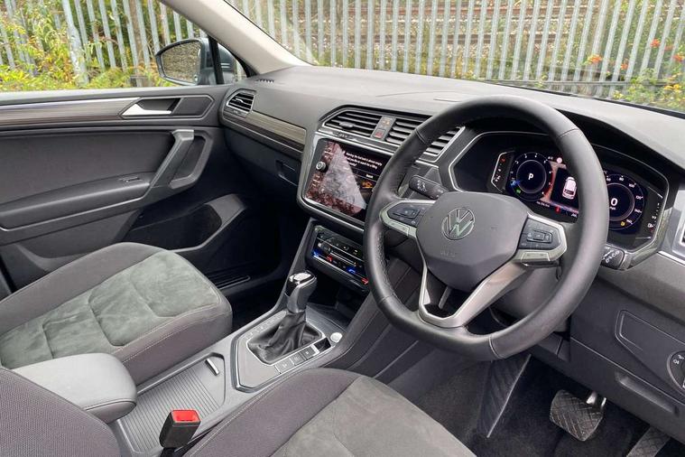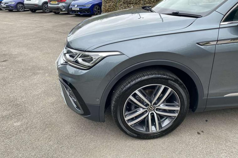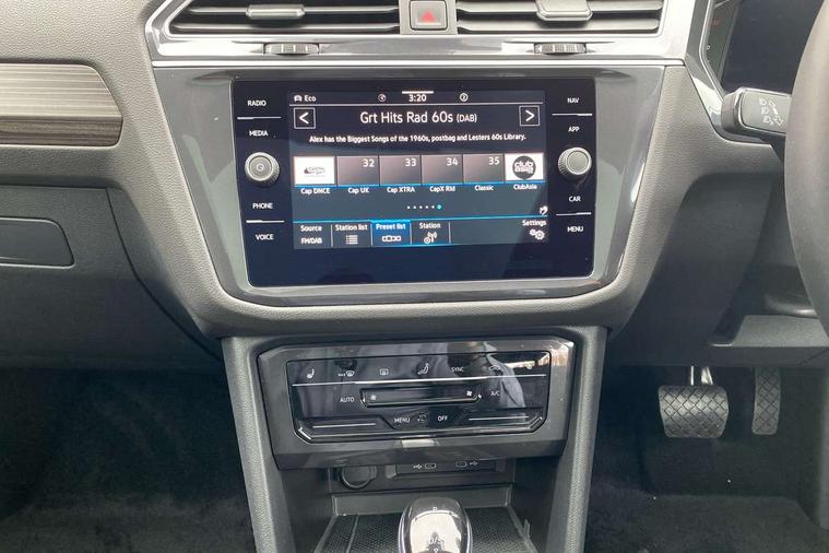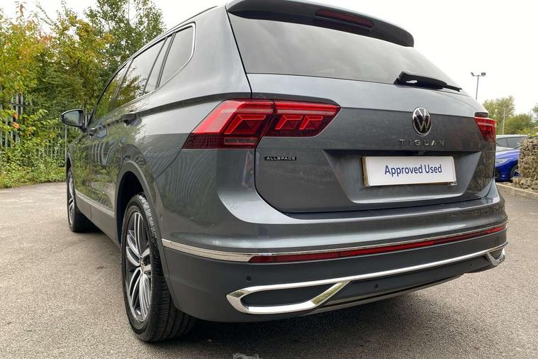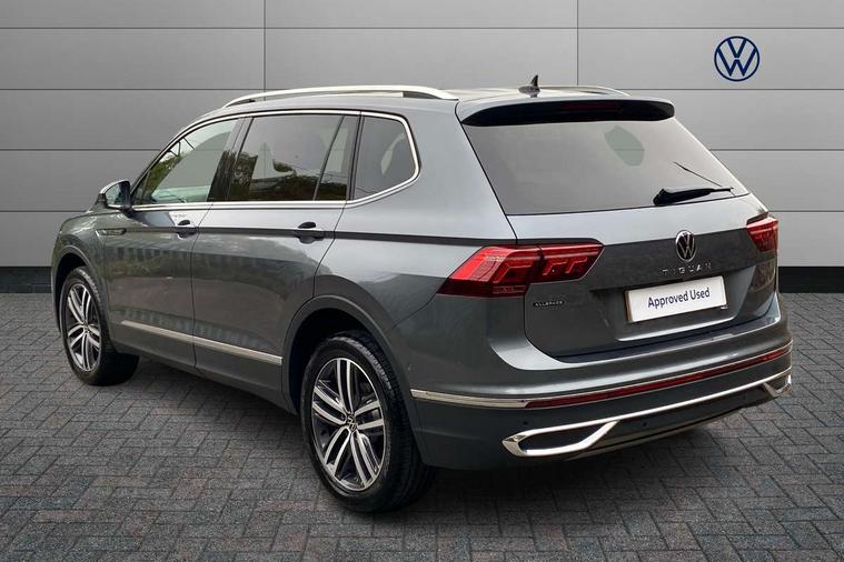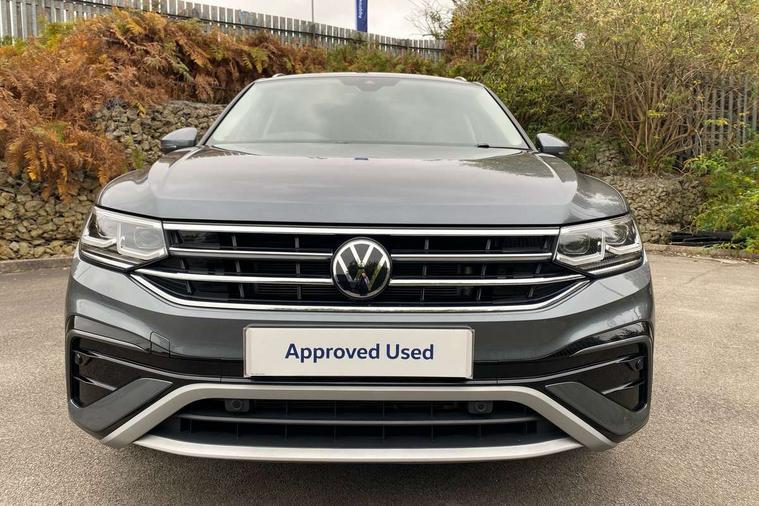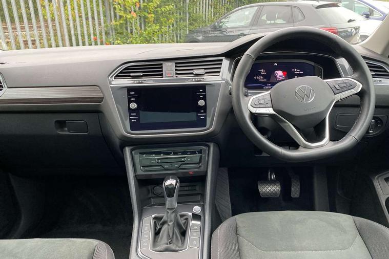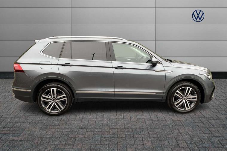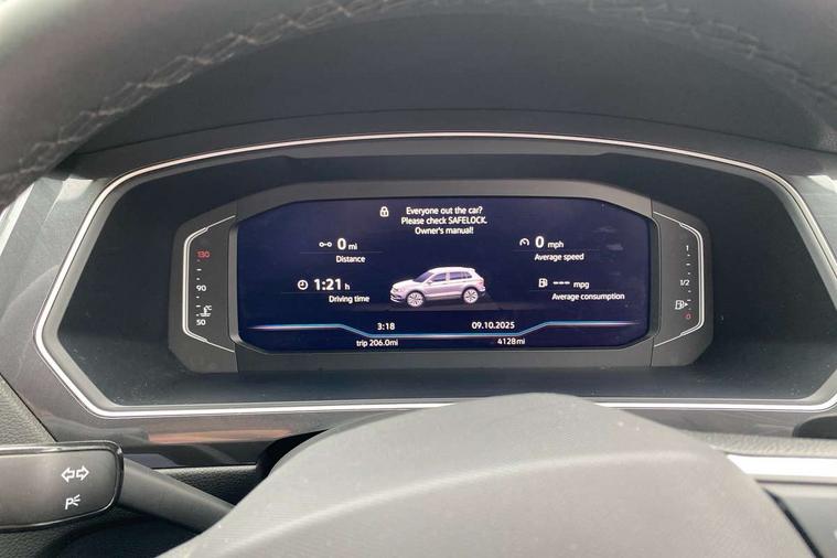 Adaptive cruise control, Advanced driver attention and drowsiness monitor, App-Connect, Digital cockpit pro, Driver profile selection, eCall emergency call service, Electric boot lid, Lane keeping system Lane Assist, Mobile phone interface comfort with inductive charging feature, Multifunction front facing camera, Power assisted speed sensitive steering, Speedo and rev counter, electronic odometer, trip, service interval display and exterior temperature gauge, Front wheel drive, Start-stop system with battery regeneration (recuperation - energy recovery during braking), 2 USB-C ports in the front, 1 USB-C charging socket on the center console in the rear, DAB Digital radio, Diversity antenna for FM reception, Auto dimming interior rear view mirror, Automatic headlight control system, Body coloured comfort bumpers, Chrome mouldings on side window, Coming/leaving home lighting function, Exterior badge deletion, Exterior mirror housings painted in silver, IQ light adv HBC, dyn light assist LED matrix headlamps, DH range, dark red LED rear combo light, poor weather, CL, LED headlamp with LED DRL and DCL - PXC, Privacy glass, Rain sensor, Rear fog light, Rear side wing doors, Rear wiper, Silver roof rails, Third brake light, Tilting and sliding panoramic sunroof, 12-volt outlet in centre console rear and luggage compartment, 12V socket in centre console, 3 head restraints in rear, 3 individual folding 2nd row seats, 3rd row 2 individual seats, Air Care Climatronic 3 zone automatic climate control with enhanced air filter and controls in the rear, Door and side trim panel, Drawers under front seats, Driver and front passenger seat height adjustment, Foldable front passenger seat backrest, Front + rear carpet mats, Front centre armrest, Front footwell illumination, Illuminated scuff plates, ISOFIX anchorage points for mounting 2 child seats on rear seats and i-Size child seats, Leather gearshift handle, Leather-wrapped multi-function steering wheel with shift paddles, LED interior light with switch off delay/dimmer and 2 front/rear LED reading lights, Sun visors with illuminated vanity mirrors, Ambience pack - Tiguan Allspace, Easy open and close pack with safelock - Tiguan Allspace, Park assist pack - Tiguan Allspace, 3 point seat belt for centre rear seat, 3 rear three point seatbelts, ABS+EBD+Brake assist, Driver and front passenger safety-optimised head restraints, Driver's and front passenger's airbag with front passenger's airbag deactivation switch, Electronic parking brake, Electronic Stability Control (ESC) inc EDL (Electronic Differential Lock) and ASR (Traction Control), Height adjustable front 3 point seatbelts + pretensioners, Manual rear child locks, Pedestrian monitoring, Rear disc brakes, Side airbag in front and rear with curtain airbag, Two tone horn, Warning buzzer for seatbelts if unfastened, Anti theft alarm system with interior monitoring, backup horn and towing protection, Anti-theft wheel bolts, Remote central locking with 2 remote folding keys, Chequered flag tinanium decorative inserts,