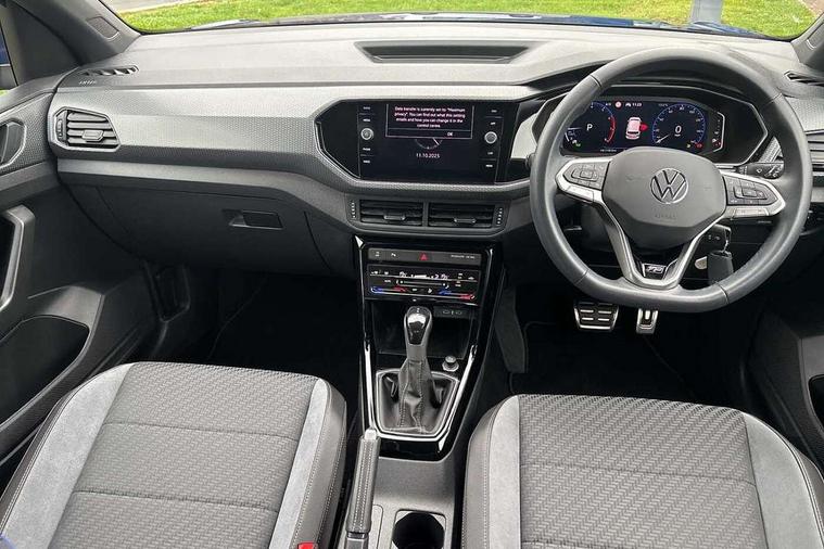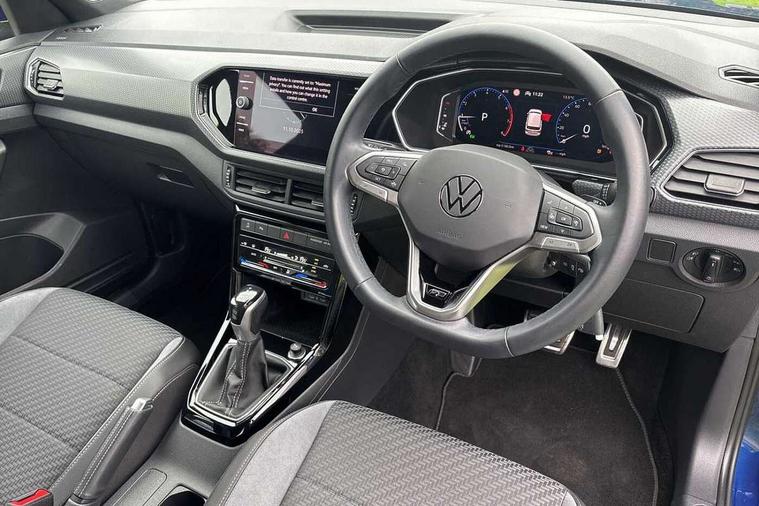 'Lights On' Reminder warning buzzer, 2D/3D map view, Active info display - 10.25" High resolution TFT dash display screen, Adaptive cruise control including front assist, forward collision warning, autonomous emergency braking, speed limiter, Blind spot monitoring, Bluetooth telephone and audio connection for compatible devices, Car information display, Driver alert system, eCall emergency call system, Lane assist, Low washer fluid warning light, Multifunction computer with visual gear change recommendation for fuel consumption, Operating permit alteration, Power assisted speed sensitive steering, Speed limit display, Speedo, rev counter, electronic odometer, trip, service interval display, exterior temperature and fuel gauge, Stop/start system, Tailgate, Warning sound and light for doors and tailgate open, Warning sound and light for front seatbelts unfastened, We connect plus preparation, Wireless Car net app connect with Apple CarPlay, combined functionality of Apple CarPlay/Android Auto and MirrorLink, Battery regeneration during braking, Misfuel prevention device, 2x USB connection with USB charging sockets and in rear centre console, DAB Digital radio receiver, Diversity antenna for FM reception, Multi device interface (MDI) with USB connection, Music playback - MP3, WMA and AAC files, Premium USB cable for Apple or Android smartphone compatibility, Simultaneous pairing of 2 compatible mobile devices, SMS Functionality, Three route options - Fast, Short, Eco, Title and cover art display, Automatic hazard lights activation under emergency braking, Body colour door handles, Body colour door mirrors with integrated indicators, Body colour rear roof spoiler, Body coloured bumpers, Dusk sensor + automatic driving lights, Electrically foldable, adjustable and heated door mirrors with reverse activated kerb view adjustment on passenger's side, Front and rear electric windows, Front fog lights with static cornering function, Galvanised body, Heated rear window, LED third brake light, Lower door sills and door pillars in black, Radiator grille with chrome trim and chrome bezel front fog lamp, Rear fog light on one side, reversing light on both sides, Rear lights incorporating LED technology, Rear side wing doors, Rear tinted glass 65% approx light absorbing from B pillar backwards, Rear window aerial, Rear windscreen washer and wiper with interval delay, Reflectors in all doors, Silver roof rails, Stainless steel door sill protection, Tailgate with integrated roof spoiler, Unique R Line badging, Windscreen wipers/ intermittent wipe + 4 position delay, 12V Accessory socket in centre console, 2 Front and rear reading lights incorporating LED technology, 2 Zone electronic climate control with automatic air recirculation, 3 rear head restraints and 3 rear three point seat belts with ECE label, 3 seat bench in 2nd row, 60/40 split folding rear seat backrest, Ambient lighting and sourround lighting, Black headlining, Branded points of interest, Brushed stainless steel pedals, Carbon flag cloth upholstery, Drawer under drivers seat, Driver and front passenger sunvisor with vanity mirror, Driver's sunvisor with ticket holder, Dust and pollen filter, Front and rear carpet mats with contrast stitching, Front centre armrest with storage compartment, Front footwell illumination, Front seat back storage pockets, Front seat R Line logo with rear seat backrest, Front sports seat with height and lumbar adjustment, Glovebox, Heating and fresh air system with 4 stage blower, Height/reach adjust steering wheel, Instrument lighting white adjustable panel illumination, Interior light with delay, Isofix child seat preparation for 2 rear child seats, Leather trimmed three spoke multifunction steering wheel with contrast stitching and aluminium inserts with R Line logo, Luggage compartment cover, Luggage compartment lighting, Moveable and foldable Rear bench seat, Scuff plates in door apertures, Steering wheel paddle shift, Storage compartment in drivers and front passengers door, R Line styling pack - T-cross, 3-point seat belts in front with electric tensioner + height adjustment, Anti-lock Braking System (ABS) with Hydraulic Brake Assist (HBA), Automatic post collision braking system, Driver and front passenger safety-optimised head restraints, Drivers and Front Passengers airbags with front passengers airbag deactivation switch, ESC with EDL, ASR, EDTC and trailer stabilisation function, Front and rear curtain airbags, Front seat side impact airbags, Hill start assist, Pre crash preventive occupant protection, Proactive passenger protection system in combination with front assist, Rear door child safety locks, Rigid safety cell with front and rear crumple zones, Single torn horn, Tyre pressure loss indicator, Volkswagen roadside assistance, Alarm with interior protection and deactivation via infotainment system, Child security locks in rear doors, Electronic engine immobiliser, Remote tailgate unlocking using key fob, Race decorative inserts in dash and doors, 18" Nevada black alloy wheels, Breakdown kit,