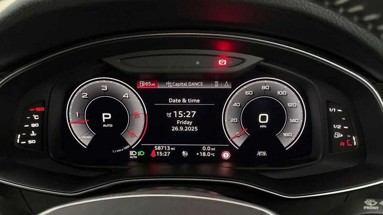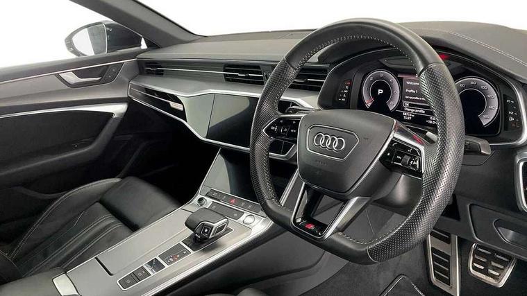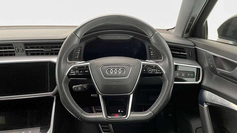 7" high resolution colour driver information display system, Amazon alexa Integration, Audi connect safety and service (e-call), Audi drive select, Audi smartphone interface, Automatic start/stop system with coasting functionality, Bluetooth interface, Electric boot lid release, Lane departure warning system, MMI navigation with MMI touch + twin touch screens 8.8" and 8.6" with haptic and acoustic feedback, Progressive steering, Service interval indicator, Voice control system, 48V Mild hybrid technology, Diesel particulate filter, Quattro all wheel drive with self locking centre differential, Sports suspension, Audi music interface, Auxiliary input socket, DAB Digital radio, USB connection, Electric front/rear windows, Electrically adjustable, heated and folding door mirrors with driver memory function and integrated LED indicators, Frameless auto dimming interior rear view mirror, Gloss black exterior mirror housings, Gloss black highlights on the exterior area of the Audi Single frame, Gloss black highlights on the front and rear bumpers, Gloss black highlights on the radiator grille, Gloss black highlights on the side windows trim strips, Headlight washers, Heat insulating glass in side and rear windows, LED signature front daytime running light, Matrix LED headlights with dynamic rear indicators, Privacy glass, Rain and light sensors, S line air inlet design with inlay in matt aluminium, S Line badge on front fender, S line rear diffuser and grille in matt black with matt aluminium tailpipes, S Line side skirts, Signature rear LED light design, Windscreen with acoustic glazing, 2 zone deluxe electronic climate control, 3 Spoke flat bottom high multi-function leather steering wheel with shift paddles, 4 way electric lumbar support for driver and front passenger, 40/20/40 split folding 3 rear seat bench in 3 parts with rear centre armrest, Black cloth headlining, Electrically adjustable front seats with driver memory, Front centre armrest, Front head restraints, Heated front seats, Height/reach adjust steering wheel, Illuminated door sill trims with S logo, Illuminated sun visors with vanity mirrors, ISOFIX child seat mounting and Top Tether with front passenger airbag deactivation, Leather gear knob, Rear headrests, S line front and rear floor mats with contrast stitching, Stainless steel pedals and foot rest, Tool kit and car jack, Non smoking pack - A6, 3 point seatbelts on all seats, Airbags - Front side, front and rear including head, Audi pre-sense front, Black seatbelts, EBD - Electronic brakeforce distribution, Electromechanical parking brake, Electronic Stability Control (ESC) including ABS, ASR and EDL, Extended pedestrian protection measures, Seatbelt monitoring, Tyre pressure warning light, Warning triangle and first aid kit, Anti theft alarm with tow away protection, Anti-theft wheel bolts and wheel loosening detection, Immobiliser, Keyless Go, Remote central locking, 20" 5 V spoke star design Audi sport cast aluminium alloy wheels in matt titanium look,