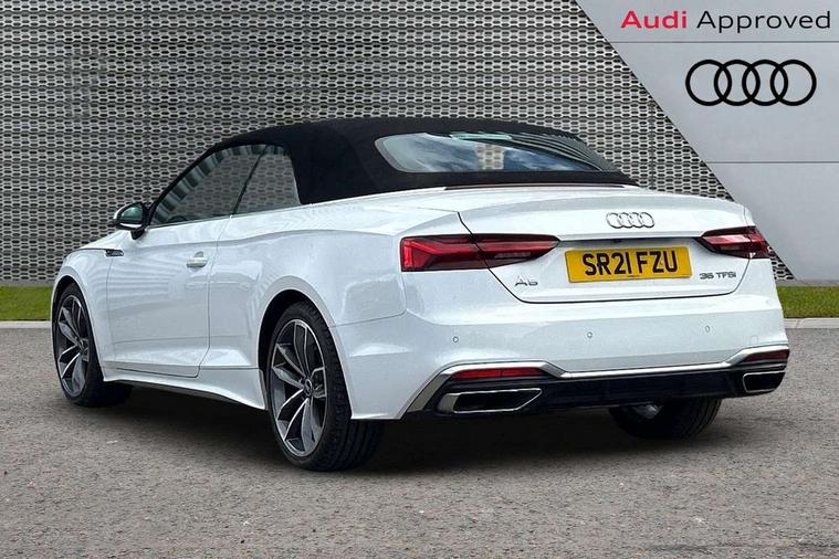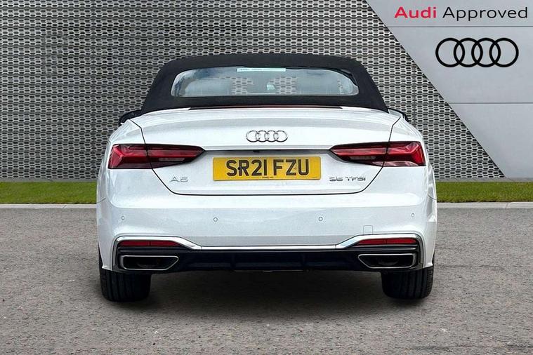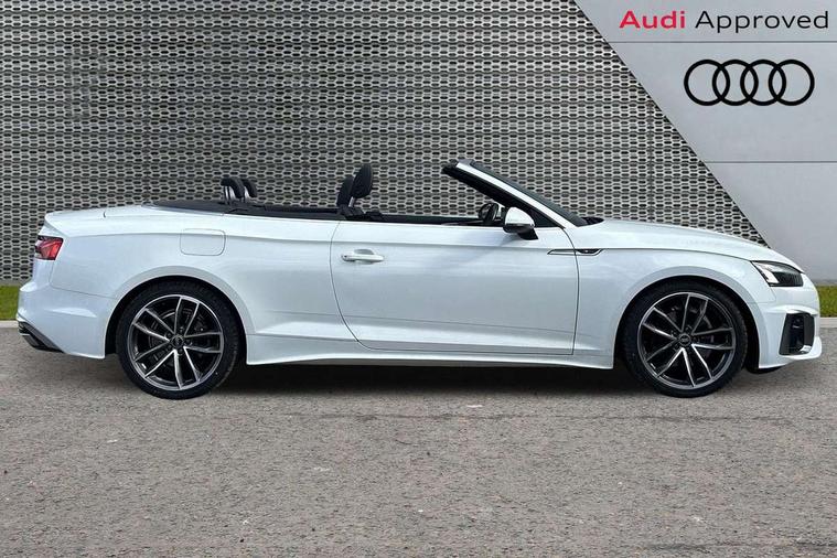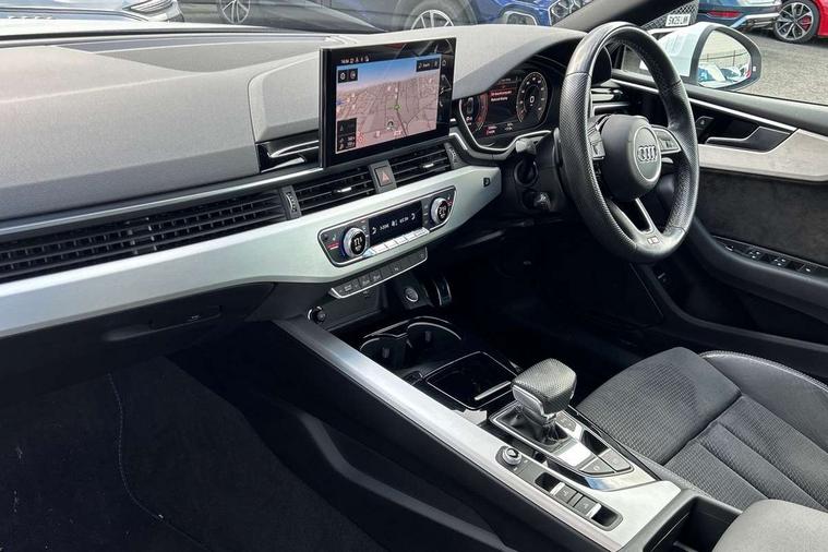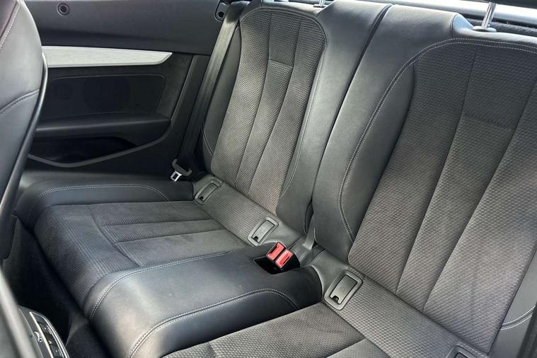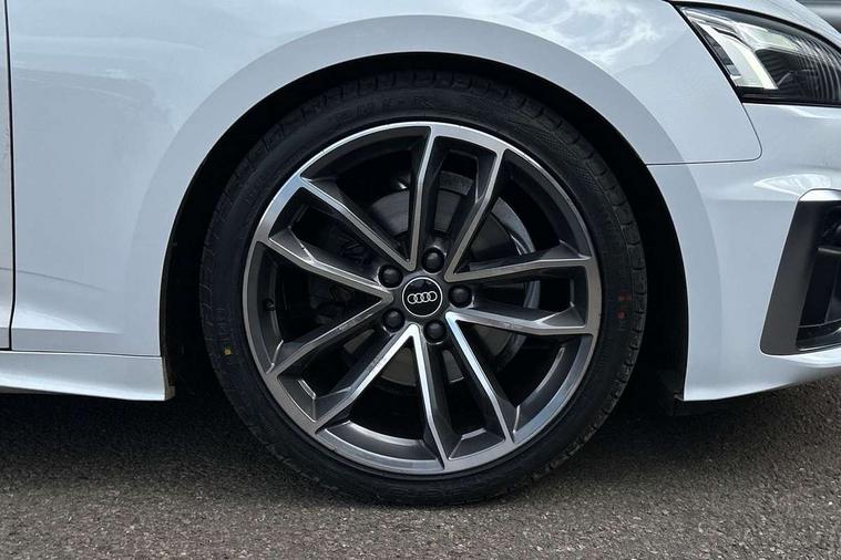 Audi connect safety and service (e-call), Audi connect with Amazon Alexa Integration, Audi drive select (Auto, Comfort, Dynamic and Individual), Audi parking system plus with front and rear sensors, Audi phone box with wireless charging, Audi smartphone interface, Audi virtual cockpit - 12.3" full colour digital instrument cluster, vehicle/engine speed, Radio/media information+Driver assistance systems, Automatic start-stop system with coasting functionality and efficiency programme, Bluetooth interface, Electric boot lid release, Electro-mechanical power steering, Email, calendar and text messages displayed via MMI, MMI nav+ with MMI touch - 10.1" high resolution MMI display, touch sensitive, 3D map, route/country info, dynamic route guide, personal route assist, Rear view camera, Service interval indicator, Voice control system, Sports suspension lowered by 23mm, 8 passive loudspeakers, CD player, DAB digital radio reception, Two additional USB ports for rear passenger in rear centre console, Two SDXC card slots, Audi matrix LED headlights with LED rear lights + dynamic front and rear indicators, Auto dimming rear view mirror, Body colour bumpers, Body colour door handles, Body colour front spoiler lip, Body colour side sill trim, Body coloured door mirrors, Electric adjustable heated door mirrors, Electric folding door mirrors, Electric front windows, Front fog lights, Honeycomb structure radiator grille in grained matt black, LED daytime running lights, Matt aluminium silver tailpipe trim, Rain and light sensors, S line badges on front wings, S line front and rear bumpers with side skirts, S Line rear diffuser in matt titanium black with trim strip in matt aluminium silver, Side air inlets in grained matt black with matt aluminium silver inlay, Windscreen with acoustic glazing, 4 way electric lumbar support for driver and front passenger, 50/50 split folding 2 seater rear bench seat, Adjustable steering column, Black cloth headlining, Black perforated leather gearknob, Contrast stitching on seats, steering wheel and gear lever gaiter, Deluxe 3 zone electronic climate control, Front centre armrest, Front head restraints, Front/rear floor mats, Heated front seats, Illuminated door sill trim with S logo, ISOFIX child seat mounting and top tether, Luggage compartment mat, Manual seat adjustment, Rear headrests, Stainless steel pedals, Sunvisors with vanity mirrors, LED interior light pack - A5/RS5, 2 x 3-point rear seatbelts, 6 airbags - Driver, front passenger, curtain and side airbags, Electromechanical parking brake, Electronic Stabilisation Control (ESC) including ABS, ASR and EDL, Front passenger airbag deactivation, Height adjustable front seatbelts, Hill hold assist, Multi collision brake assist, Pop-up bonnet for pedestrian protection, Pre sense city, Seatbelt monitoring, Tyre pressure warning, Variable restraint system, Warning triangle and first aid kit, Anti theft alarm system, Anti theft wheel bolts, Immobiliser, Keyless Go, Remote central locking, Matt brushed aluminium inlays, Tool kit, Tyre repair kit,