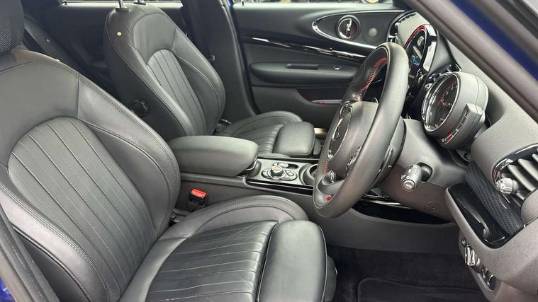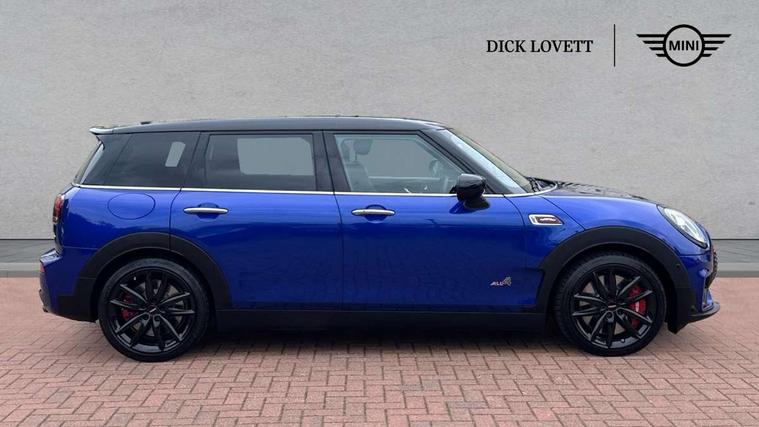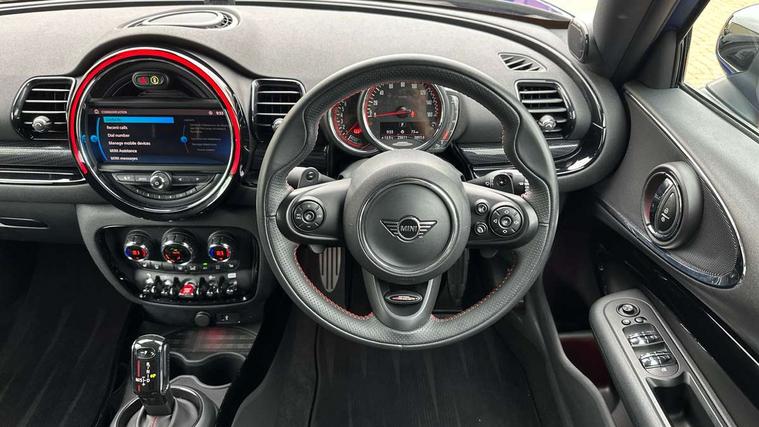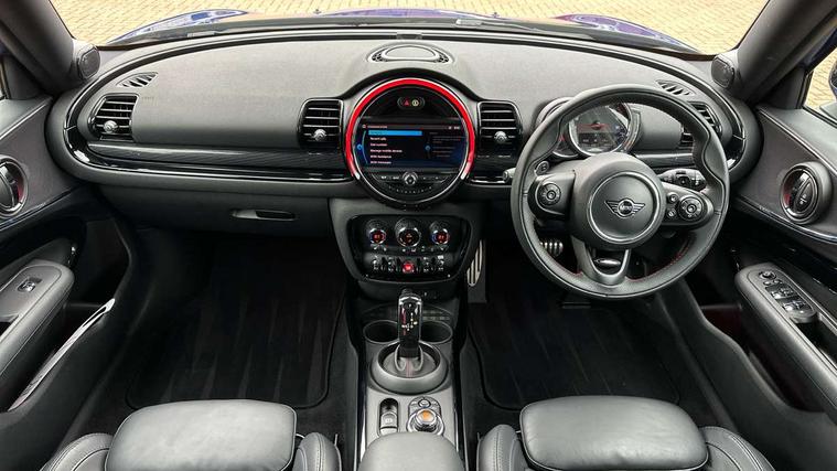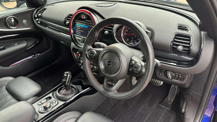 Active Guard incl speed limiting and lane departure functions with auto steering, and front collision warning with brake intervention, Automatic start/stop function with brake energy recuperation, Compatible mobile phone bluetooth with audio streaming, Digital cockpit, Electro-mechanical speed dependant steering assistance, Instrument cluster, Mini E-call, MINI TeleServices, On board computer, 8 Speed steptronic sport transmission including steering wheel paddles, All Wheel Drive (AWD), Double Vanos system, Fully variable valve control, High precision injection, Performance Control, FM tuner and DAB digital radio, Bonnet scoop, Chrome fuel filler cap, Dynamic brake lights, Electric windows, Heated rear window, Heated windscreen washer jets, John Cooper Works - aerodynamic kit (front and rear apron, spoiler), front and rear sport bumpers and part-painted side sills with door sill finishers, John Cooper Works rear spoiler, LED rear light with union jack design, Metal door sill strips with Cooper S imprint, Model logo, Model logo on rear doors, Piano black exterior, Radiator grille piano black border with honeycomb structure in matt black with John Cooper Works logo above an individual grille struct in chilli red, Rain sensor with auto headlights, Rear fog lights, Rear window wiper, Side scuttle with MINI John Cooper Works logo in high gloss black with red border, Split rear doors, Sun/heat protection glass, Twin exhaust tailpipe, White indicator lenses, 12V Accessory socket in centre console, 360L luggage compartment capacity, 4 lashing eyes in luggage compartment, 60/40 split folding rear seat, Anthracite headlining with grab handles and clothes hooks, Chrome interior highlights, Cupholders, English handbook, Glove compartment, Height and length steering column adjustment, Interior lighting with 12 basic colours selectable via toggle switch in roof, Isofix rear child seat preparation, John Cooper Works perforated leather steering wheel with contrast stitching in chilli red and John Cooper Works logo, John Cooper Works sports seat with integrated headrest, adjustable thigh support and John Cooper Works logo, Leather gearshift lever and handbrake gaiters, LED reading lights, vanity mirror lights, front foot well light and spotlight on front seats, Multifunction steering wheel, Rubberised stainless steel pedals, Storage compartments in doors, Sunvisors with vanity mirrors, Toolkit, Comfort plus pack - Mini Clubman, Excitement pack - Clubman, Navigation pack - Clubman, 17" front sport brake with 4 piston fixed calliper, 2 tone horn, 3 point seatbelts on all seats, 6 Airbags - front, side, head and seat belt tensioners, Anti-lock braking system (ABS), DSC - Dynamic Stability Control, Electronic handbrake, Front and rear disc brakes, Red brake callipers with John Cooper Works logo, Torsen mechanical limited slip differential, Tyre pressure monitoring system, Alarm system with tilt sensor, monitoring doors, bonnet interior and tailgate, Auto drive away locking, Comfort access system, Deadlocking function, Electronic vehicle immobiliser, Locking wheel bolts, Start/stop toggle with keyless go,