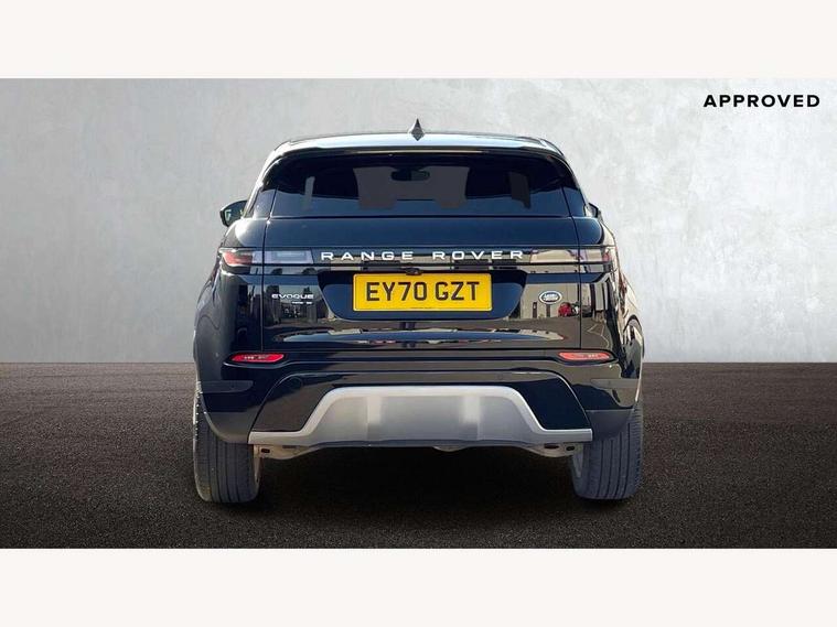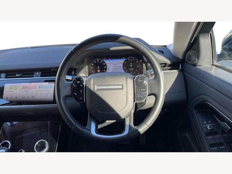 3D 360 degree surround camera, Android Auto, Apple car play, Blind spot assist, Bluetooth connectivity, Brake pad wear indicator warning light, Clear exit monitor, Driver condition monitor, Duo touch pro, Electronic power assisted steering (EPAS), InControl remote, Interactive Driver display instrument cluster, Land Rover InControl apps, Lane keep assist, Pivi pro connected includes upgraded infotainment, smart settings, connected navigation pro, Nuance speech licence, Push button starter, Rear traffic monitor, Traffic sign recognition with adaptive speed limiter, Voice control system, Wade Sensing, All terrain progress control, Efficient Driveline, Large fuel tank, Passive suspension, Terrain Response 2 Auto, Digital Audio Broadcast radio-DAB, Steering wheel mounted controls, Automatic headlight levelling, Electric windows with one touch open/close and anti trap, Evoque badge, Flush deployable exterior door handles, Heated rear window with timer, Heated washer jets, Heated windscreen, Power fold, auto-dimming, heated door mirrors with approach lights and auto dimming driver side, Rain sensing windscreen wipers, Rear fog lights, Tailgate spoiler, 40:20:40 split folding rear seats with centre headrest and armrest, Ambient interior lighting, Isofix system on outer rear seats, Overhead lighting console, Overhead stowage for sunglasses, Passive front head restraints, Rear air vents, Rear centre headrest, Sunvisors with illuminated vanity mirrors, Twin sliding front centre armrest, 3 rear 3 point seatbelts, Anti-lock braking system (ABS), Customer configurable autolock, DSC - Dynamic Stability Control, Electronic brake force distribution, Electronic parking brake, Electronic traction control, Emergency braking, Front and rear seatbelt reminder, Hill descent control, Hill launch assist, Low traction launch, Power operated child locks, Roll stability control, Six airbags - Driver and passenger airbags/driver knee airbag/front side airbag and curtain airbags, Torque vectoring brake, Tyre pressure monitoring system, Alarm, Immobiliser, Intrusion sensor, Locking wheel nuts,