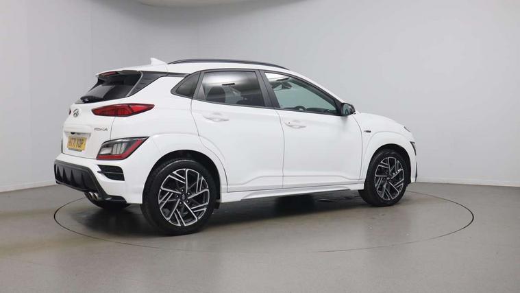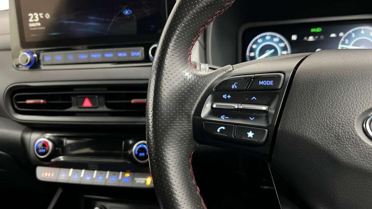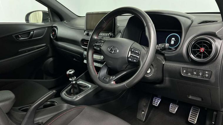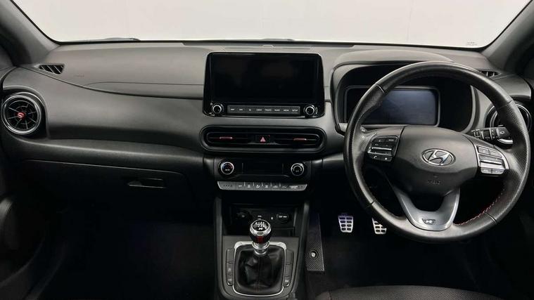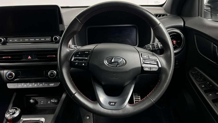 10.25" touchscreen centre console display satellite navigation with live services and mapcare, Bluetooth connectivity, Cruise control + speed limiter, Digital clock, Driver attention warning, Driver supervision instrument cluster with 10.25" LCD display, eCall emergency call system, Forward collision avoidance assist with pedestrian detection, Lane follow assist, Lane keep assist, Leading vehicle departure alert (LVDA), Parking system with rear camera and guidance system, PAS, Phone connection with apple carPlay and android auto, Rear parking sensor, Roadside assistance, Windscreen washer fluid sensor and warning indicator, Wireless phone charging pad, 6 speed intelligent manual transmission, Front and rear USB ports, Krell premium audio system with 8 speakers including external amplifier and subwoofer, RDS and Digital DAB, Steering wheel mounted audio/phone controls, Auto dimming rear view mirror, Automatic headlights with dusk sensor, Automatic windscreen wipers with rain sensor, Black radiator grille, Body colour bumpers, Body colour door mirrors and handles, Body colour side cladding, Body coloured garnish, Door mirror integrated indicators, Electric front/rear windows with drivers one touch/anti-trap, Electrically adjustable and heated door mirrors, Halogen headlights, LED daytime running lights, LED rear lights, Positioning Lights - LED, Power folding door mirrors, Privacy glass - Rear windows and tailgate, Rear roof spoiler with integrated LED brake light, Rear side wing doors, Rear skid plate - silver, Rear wiper, Roof rails, Solar glass with front door glass and windscreen shade band, Windscreen auto defog function, 12V power outlet in front console, 3 seat bench in 2nd row, 60/40 split folding rear seat, Adjustable head restraints, Air conditioning climate control, Ambient lighting, Centre interior light, Cloth upholstery, Door scuff plate, Driver and passenger front seat pockets, Driver's seat electric lumbar support, Driver's seat height adjustment, Driver/passenger sunvisors and illuminated vanity mirrors, Front interior light, Front passenger seat manual adjustments, Height/reach adjustable steering column, Isofix rear child seat fastenings, Leather wrapped steering wheel and gear knob, Luggage compartment lighting, Luggage hooks, Luggage net, Metal paint effect interior door handles, Metal pedals, N logo on the gear shift, Parcel shelf, Rear centre console with air vents, Single front passenger seat, Sunglasses holder, Vertical adjustment rear head restraints, Trailer wiring package - Kona, Airbags - front, front side and curtain airbags, Anti-lock brake system (ABS), Childproof rear door locks, Downhill brake control, EBD + Brake Assist, Electronic stability control, Fasten seatbelt reminder, Fixed 3 point for second row centre passenger seatbelt, Front seatbelt pretensioners, Height adjustable front seatbelts, Hill start assist control (HAC), Manual parking brake, Passenger airbag deactivate switch, Rear seat alert, Traction control, Tyre pressure monitoring system, Alarm/immobiliser, Deadlocks, Folding key, Locking wheel nuts, Remote central locking, 18" Alloy wheels,