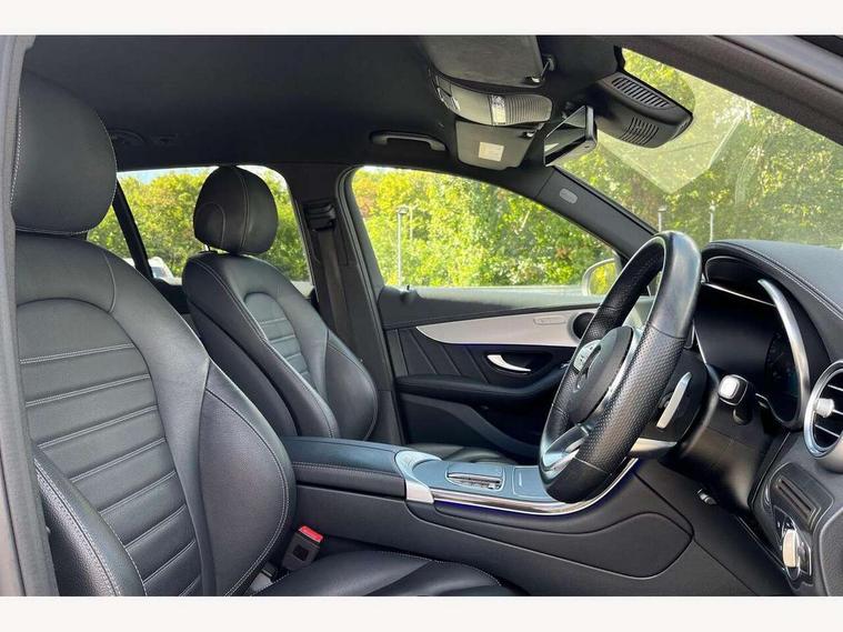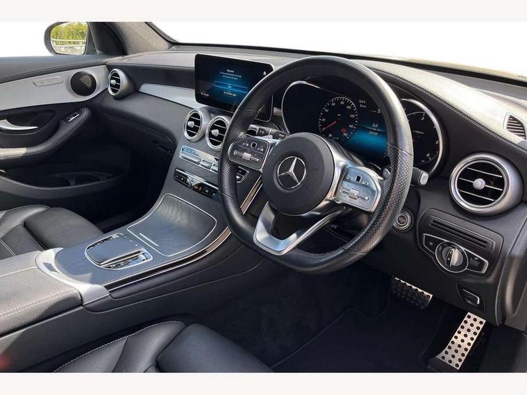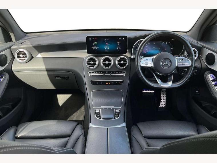 Active parking assist with parktronic system, Attention assist, Bluetooth interface for hands free telephone, Collision prevention assist plus, Cruise control with speedtronic variable speed limiter, Direct steer speed sensitive steering, DYNAMIC SELECT with a choice of driving modes (ECO, Comfort, Sport, Sport+ and Individual), Easy pack automatic powered tailgate, ECO start/stop function, Hard disk navigation, Hey Mercedes Voice activation, Instrument cluster with12.3-inch digital instrument cluster display. High resolution instrument cluster screen with choice of three display styles, MBUX Interior assistant, Mercedes connect me with remote online services, Multi function trip computer, Outside temperature display, rear seatbelt status indicator, Remote boot release, Reversing camera, Service indicator (ASSYST), Smartphone integration with Apple CarPlay and Android auto, Traffic sign assist, 4MATIC permanent four wheel drive, 66 litre fuel tank, 9G TRONIC plus automatic transmission with steering column gear selector, DIRECT SELECT steering wheel gearshift paddles, Diesel particulate filter, Sports suspension tuned for improved handling and driving dynamics, 5 speakers, Frontbass loudspeakers, MBUX multimedia system with DAB digital radio and touchpad, Media display 10.25-inch touchscreen display, Pre installation for Mercedes Benz Link, USB ports x 2 in centre console, Adaptive brake lights, Aluminium roof rails, AMG bodystyling - AMG front apron with sporty air intakes and chrome trim element, AMG diffuser-look rear apron with insert in black, Body colour door mirrors, Body coloured bumpers, Electric windows one touch open/close, Electrically adjustable and heated door mirrors, Front, side and rear exterior chrome trim, Headlamp assist automatic headlamp activation, High level LED brake light, LED high performance headlamps with integrated LED daytime running lights, LED tail lamp, Motor way mode function and locator lighting, Privacy glass with dark glass from B pillar backwards, Radiator diamond grille, Rain sensor windscreen wipers, Range adjustable headlights, Rear side wing doors, Rear wiper, Roof spoiler, Running boards, Tinted glass all round with single layer safety glass, Tinted rear windows, Two chrome plated tailpipe trim elements, Variable front intermittent wipers, 2 way rear head restraints, 3-spoke multifunction sport AMG steering wheel in black nappa leather with flattened bottom section, chrome insert and perforated leather in grip area, 40:20:40 split folding rear seats, Ambient lighting, AMG floor mats with edging and embroidered AMG lettering, AMG sports seats, Artico man-made leather upper dashboard with contrast topstitching, Automatic child seat recognition sensor, Black roof lining, Dividing net - rear, Double cup holder in centre console, Easy-pack removable load compartment cover, Front armrest with storage box, Front door sills with Mercedes Benz lettering, Front head restraints, Front seats with electric adjust (backrest, height and seat cushion inclination) with 4 way electric lumbar support and manual cushion depth adjust, Heated front seats, Height/reach adjustable steering column, Illuminated and lockable glove compartment, Leather upholstery, Rear top tether child seat ISOFIX attachment, Sports pedals with stainless steel surfaces and rubber studs, Steering wheel with touch control buttons, THERMOTRONIC 3 zone automatic climate control, Interior lighting pack - GLC, Mirror pack - GLC, Storage pack - GLC, 3 rear 3 point seatbelts, Active bonnet, Adaptive brake system with HOLD function and brake drying in the wet, ASR, Black seat belts, Brake calipers with Mercedes-Benz lettering + perforated brake discs, Child proof door locks, Dual-stage airbags - driver and front passenger, driver knee bag and window bags for driver, front passenger and rear passengers, Electronic parking brake, Electronic stability programme (ESP) with curve dynamic assist and cross wind assist, Front and rear seatbelt reminder, Front passenger seat occupancy sensor, Hill hold function, Tyre pressure monitoring system, Warning triangle and first aid kit, Alarm system/interior protection/immobiliser, Automatic door locking, KEYLESS-GO starting function, Remote central locking, Open pore black ash wood trim, 20" AMG multi spoke design alloy wheels painted in titanium grey with high sheen finish, Run flat tyres, Summer tyres,