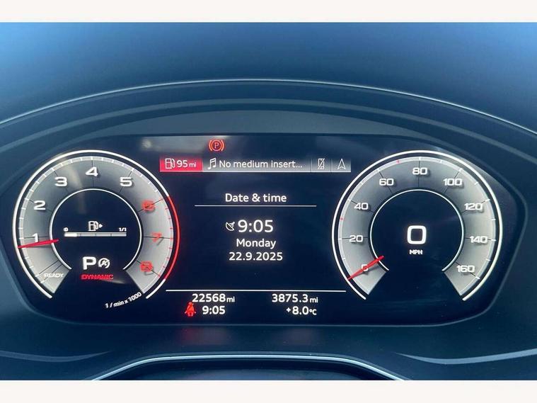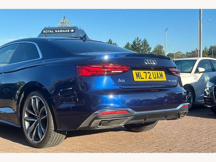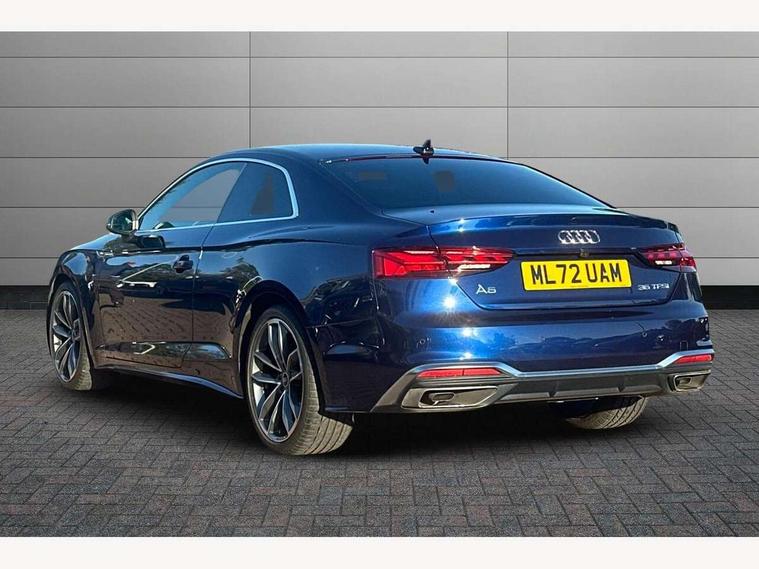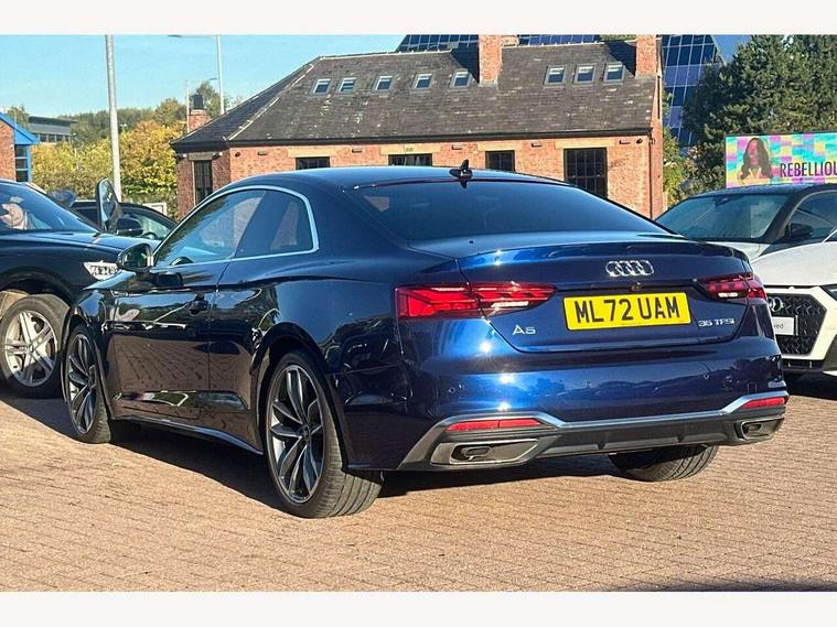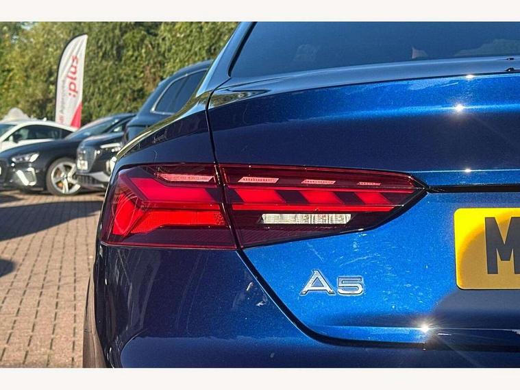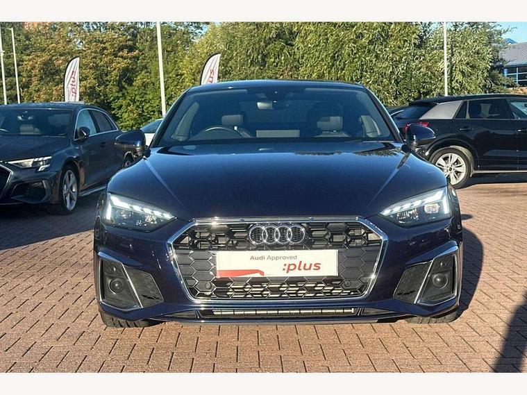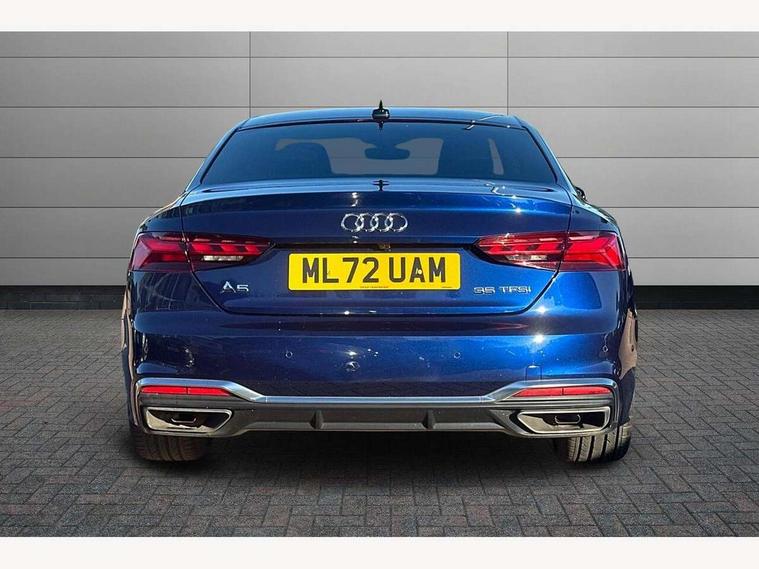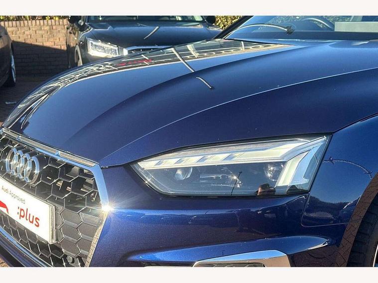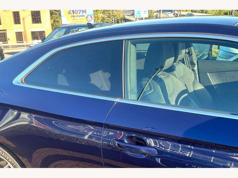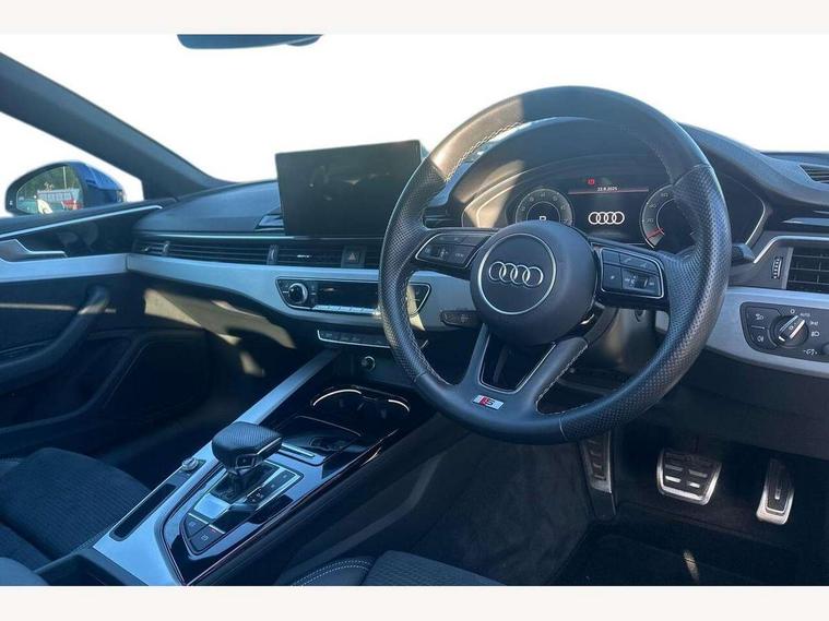 Audi connect safety and service (e-call), Audi connect with Amazon Alexa Integration, Audi drive select (Auto, Comfort, Dynamic and Individual), Audi parking system plus with front and rear sensors, Audi smartphone interface, Audi virtual cockpit - 12.3" full colour digital instrument cluster, vehicle/engine speed, Radio/media information+Driver assistance systems, Automatic start-stop system with coasting functionality and efficiency programme, Bluetooth interface, Electric boot lid release, Electro-mechanical power steering, Email, calendar and text messages displayed via MMI, MMI nav+ with MMI touch - 10.1" high resolution MMI display, touch sensitive, 3D map, route/country info, dynamic route guide, personal route assist, Rear view camera, Service interval indicator, Voice control system, Sports suspension lowered by 23mm, 8 passive loudspeakers, CD player, DAB digital radio reception, Two additional USB ports for rear passenger in rear centre console, Two SDXC card slots, Audi matrix LED headlights with LED rear lights + dynamic front and rear indicators, Auto dimming door mirrors, Auto dimming rear view mirror, Body colour bumpers, Body colour door handles, Body colour front spoiler lip, Body colour side sill trim, Body coloured door mirrors, Electric adjustable heated door mirrors, Electric folding door mirrors, Electric front windows, Front fog lights, Honeycomb structure radiator grille in grained matt black, Kerb-view function for passenger side, LED daytime running lights, LED side indicator lights integrated into door mirrors, LED third brake light, Matt aluminium silver tailpipe trim, Privacy glass, Rain and light sensors, Rear boot, Rear side wing doors, S line badges on front wings, S line front and rear bumpers with side skirts, S Line rear diffuser in matt titanium black with trim strip in matt aluminium silver, Side air inlets in grained matt black with matt aluminium silver inlay, Variable front intermittent wipers, Windscreen with acoustic glazing, 2 seat bench in 2nd row, 4 way electric lumbar support for driver and front passenger, 40/20/40 split folding 2 seater rear seat bench with rear centre armrest, Adjustable steering column, Black cloth headlining, Black perforated leather gearknob, Contrast stitching on seats, steering wheel and gear lever gaiter, Deluxe 3 zone electronic climate control, Front centre armrest, Front head restraints, Front/rear floor mats, Heated front seats, Illuminated door sill trim with S logo, ISOFIX child seat mounting and top tether, Luggage compartment mat, Manual seat adjustment, Rear headrests, Single front passenger seat, Stainless steel pedals, Sunvisors with vanity mirrors, Tool kit, LED interior light pack - A5/RS5, 2 x 3-point rear seat belts, 6 airbags - Driver, front passenger, curtain and side airbags, Electromechanical parking brake, Electronic Stabilisation Control (ESC) including ABS, ASR and EDL, Front passenger airbag deactivation, Height adjustable front seatbelts, Hill hold assist, Multi collision brake assist, Pop-up bonnet for pedestrian protection, Pre sense city, Seatbelt monitoring, Tyre pressure warning, Variable restraint system, Warning triangle and first aid kit, Anti theft alarm system, Anti theft wheel bolts, Immobiliser, Keyless Go, Remote central locking, Matt brushed aluminium inlays, Tyre repair kit,