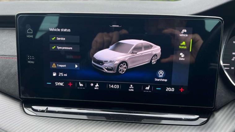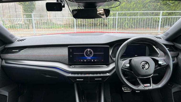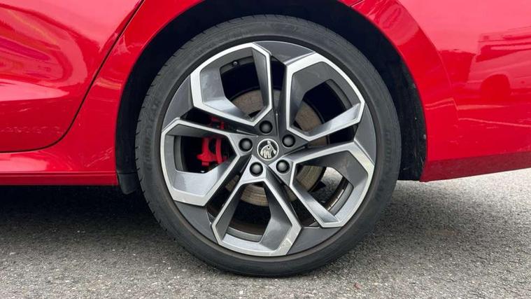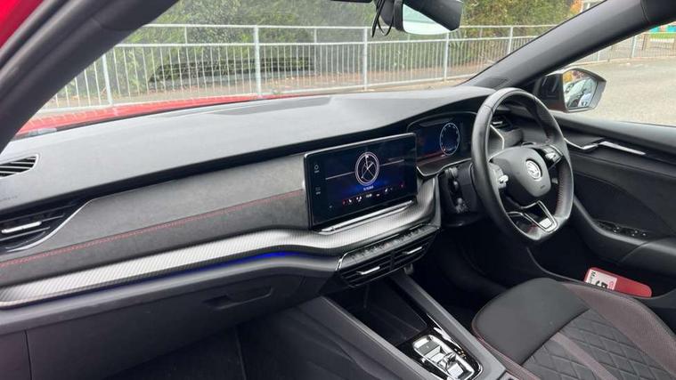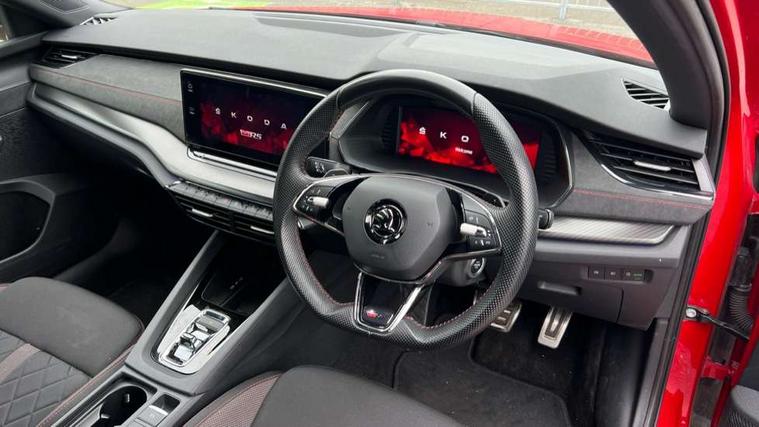 1x USB Type C port in rear view mirror (charging only), 2x USB Type C ports in rear of front centre armrest (charging only), Bluetooth system, Columbus satellite navigation with 10" touchscreen display, Driver fatigue sensor, eCall emergency system, Front and rear parking sensors with manoeuvre assist, Front assist system, Progressive dynamic steering, Speed limiter, Turn Assist, Virtual Cockpit - 10.25" digital display, Virtual pedal with electrically operated boot door (Rear LED lights (high functionality), dynamic indicators, Voice control system, Wireless SmartLink for Apple Car Play, Electronically controlled limited slip differntial, Front and rear stabilizers, 2x USB Type C ports (for charging and data transfer), 8 speakers, DAB Digital radio, Aero front windscreen wipers with intermittent function, Auto dimming rear view mirror, Body colour door handles, Chrome exhaust tailpipes, Door sills with vRS logo, Electric front and rear windows, Exterior gloss black sports styling including front grille, side strip, window surrounds, door mirror and badging, Full LED Matrix headlights with AFS, rear LED lights (high functionality) and dynamic indicators and cornering front fog lights, Headlight washers, Heated rear windscreen, High level third brake light, Ice scraper in fuel cap, LED daytime running lights, Rain and light sensors, Rear fog light on one side, Rear privacy glass, Rear side wing doors, vRS bumpers and lip spoiler, 3 rear headrests, 3 seat bench in 2nd row, 4 foldable roof handles, Aluminium pedals, Black headlining, Black microsuede padded dash panel with red contrast stitching, Chrome inner door handles, Front centre armrest, Front head restraints, Heated front seats, Illuminated glovebox, Leather trimmed gearshift lever, Luggage compartment lighting x1 light, Mechanical rear seat release, Parcel shelf - folding, Single front passenger seat, Sunglasses storage, Textile floor mat set, Three spoke leather sports multifunction steering wheel with paddles, Ticket holder, Umbrella in door panel, Unsplit rear bench seat and split folding backrest, LED interior light pack - Octavia, 3 point front/outer rear seatbelts+pre-tensioners, Alarm with interior monitoring, tilt sensor and back up horn, Automatic door unlocking in case of crash, Automatic fuel cut off in case of crash, Automatic warning lights in case of emergency braking, Curtain airbags and front side airbags, Driver and front passenger airbags, Drivers knee airbag, Electronic parking brake, ESC including ABS, EBV, MSR, ASR, EDS, HBA, DSR, Front and rear disc brakes, Front central airbag, Hill hold control, Hill start assist, ISOFIX on front passenger seat and outer rear seats, Manual rear child locks, Passenger airbag deactivate switch, Pro active services, Red brake calipers, Two tone horn, Tyre pressure monitor, Visual and acoustic seat belt reminder, Warning reflectors in front door, Door locks with immobiliser, Keyless entry and start/stop including rear doors, Remote central locking, Carbon optic decorative inserts, Gloss black air vent surrounds, 19" Altair anthracite alloy wheels,