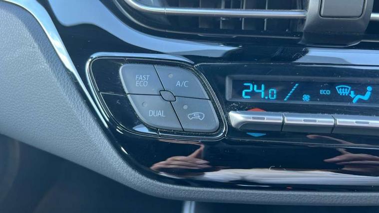 4.2" coloured TFT screen for multi-information display, Adaptive cruise control, Bluetooth connectivity, E-call, Electric power steering, Hybrid system indicator, Lane departure alert with steering control, Remote boot door release in cabin, Remote boot door release in key, Reversing camera, Road sign assist - RSA, Trip computer, Voice recognition, Vehicle Stability Control (VSC), 6 speakers, AM/FM radio, DAB Radio (Digital Audio Broadcasting), Toyota touch 2 multimedia system with 8" display, USB connector, Wi-fi connectivity, Anti-jam protection on power windows, Auto high beam, Auto up and down function on all power windows, Automatic headlights, Automatic headlights cut-off, Black and body coloured rear bumper, Black upper front grille, Body colour door handles, Body colour door mirrors, Body colour front spoiler lip, Body coloured front bumper, Boot door release with push button, Electric heated door mirrors, Follow me home headlights, Front and rear power windows, Front fog lights, Hard tonneau cover, Honeycomb lower front grille, LED daytime running lights, LED front light guide, LED High mounted stop light, LED rear brake lights, LED rear combination lights, Manual headlight levelling, Manually retractable door mirrors, Noise reduction layer on front windows and windscreen, Power adjustable door mirrors, Rain sensor, Rear side wing doors, Rear spoiler, Rear tailgate, Rear window defogger, Rear window wiper, Reflective LED headlights, Shark fin antenna, UV-filter on driver and passenger windows, UV-filter on rear windows, 12v power outlet - front, 3 rear headrests, 3 seat bench in 2nd row, 3 spoke leather steering wheel, 60/40 split folding rear seat, Adjustable rear headrests, Adjustable speed limiter switch on steering wheel, Assist grips front and centre pillar, Audio and telephone switches on steering wheel, Black front door assist grips, Boot light, Chrome interior door handles, Cloth upholstery, Driver and front passenger personal light, Driver and front passenger Whiplash Injury Lessening seats, Dual zone automatic air conditioning, Floor mats, Front cupholders, Front head restraints, Front sports seats, Glovebox with internal light, Hooks for luggage holding net, Humidifying Nanoe air purifier, Illuminated entry system, Isofix attachments on rear seats, Leather gearshift, Light on driver sun visor, Light on passenger sun visor, Manual telescopic steering wheel, Manual tilt steering wheel, Manually adjustable lumbar support on driver seat, Manually height adjustable driver seat, Manually height adjustable front passenger seat, Manually reclining driver seat, Manually reclining front passenger seat, Manually sliding driver seat, Manually sliding front passenger seat, Microphone on front personal light, Mirror on driver sun visor, Mirror on passenger sun visor, Multimedia switches on steering wheel, Pollen filter, Shopping bag hooks, Single front passenger seat, Slow opening on lower glovebox, Voice recognition switch on steering wheel, 16 Disk front wheel brake, 3x3 point rear seatbelts, ABS+EBD+Brake assist, Electronic parking brake, Front and rear seatbelt reminder, Front passenger airbag on/off switch, Hill start assist control (HAC), Pre collision system with pedestrian detection, Pre-tensioners and force limiters, Rear door child safety locks, SRS Airbags - Driver + Front passenger, front side, front and rear curtain and driver's knee airbags, Toyota safety sense, Tyre pressure monitoring system, Acoustic vehicle alert system (AVAS), Glass-breaking alarm sensors, Immobiliser, Intrusion alarm, Intrusion sensor, Motion sensor alarm, Power door locks, Power passenger window lock, Remote central locking, Black lower dashboard, Black upper dashboard, Grey deco line on upper dashboard, Matte black centre console, Tyre repair kit,