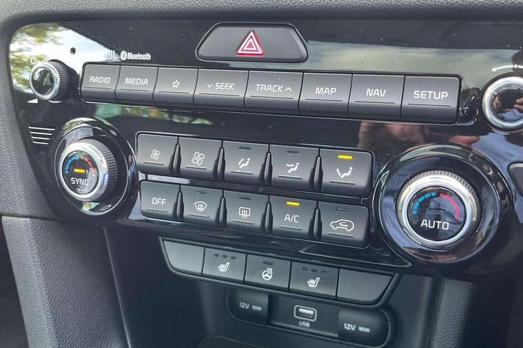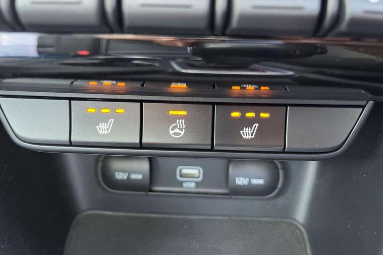 360 degree surround camera, 4.2" supervision colour cluster display, 8" touchscreen satellite navigation with European mapping and traffic messaging channel, Android auto with voice control, Apple car play with voice control, Blind spot collision warning, Bluetooth connectivity with voice control, Cruise control + speed limiter, Digital clock, Drive mode selector, Driver attention warning, Emergency stop signalling system, Forward collision avoidance assist, Front parking sensor, Kia connected services featuring TomTom live, Lane keep assist, Rear parking sensor, Speed limit information, Speed sensitive power steering, Trip computer, Windscreen washer level indicator, Intelligent Stop and Go, Bluetooth audio streaming, DAB Radio with MP3, JBL Premium sound system with 8 speakers, external amp, subwoofer and front centre speaker, Rear USB port, Steering wheel mounted audio controls, USB/iPod/auxiliary input connections, All round electric windows with drivers auto up/down function, Auto dimming rear view mirror, Automatic defog system, Automatic headlights, Black wheel arch body mouldings and side sills with chrome insert, Body colour door handles with chrome inserts, Body colour door mirrors, Chrome front bumper insert, Chrome grille surround, Chrome window surround, Cornering light, Electric panoramic glass sunroof, Electrically adjustable/heated/folding door mirrors with LED indicators, Front fog lights, High beam assist, High gloss black diamond mesh radiator grille, LED Bi-Function headlights, LED daytime running lights, LED rear lights, Privacy glass (rear side windows and rear screen), Rain sensing front wipers, Rear spoiler, Rear wiper, Roof rails, Shark fin antenna, Silver painted front and rear skid plates, Speed sensitive front wipers, Tinted glass, Trailer stability assist, Welcome and follow-me home light functionality, Wide view drivers door mirror, Windscreen wiper de-icer, 10 way driver/8 way passenger electrically power adjustable seats, 12V power in front and rear centre console, 3 x passenger assist grips, 60/40 split folding rear seat, Air filter, All-round height adjustable headrests, Centre console storage box, Door armrest in leather, Driver and front passenger side sunvisors with illuminated vanity mirrors, Drivers seat power lumbar support, Dual zone automatic air conditioning, Front and rear door storage, Front cabin LED map light with sunglasses case, Front door courtesy reflectors, Front seat and rear pockets, Front/rear centre armrests, Gear shift indicator, Glovebox illumination, Heated front and outer rear seats, Heated steering wheel, Illuminated glovebox, Interior door lock/unlock function, ISOFIX Child seat top tethers and anchor fixings, Leather steering wheel, Leather trimmed gearshift, Leather upholstery, Light grey headlining, Luggage area LED light, Luggage area load cover, Luggage net with hooks, Rear centre armrest with cupholder, Rear coat hooks, Rear headrests, Satin chrome interior door handles, Side cabin LED lights, Stainless Steel Scuff Plates, Tilt/telescopic adjustable steering wheel, Ventilation ducts to rear compartment, 3x3 point rear seatbelts, Active front headrests, All round 3-point seatbelts, Anti-lock braking system with electronic brakeforce distribution, Dual front side airbags, Electronic parking brake, Electronic stability control with downhill brake control, ESP + traction control, Front passenger airbag cut-off switch, Front seatbelt pretensioners + load limiters, Height adjustable front seatbelts, Hill start assist control (HAC), Impact sensing auto door unlocking, Rear door child safety locks, Twin curtain airbags with roll over sensor, Twin front airbags, Tyre pressure monitoring system, Advanced anti-theft system including immobiliser and alarm, Door deadlocks, Engine Start/Stop Button with Smart Entry System, Locking wheel nuts, Speed sensitive auto door locking, Visible vehicle identification number, High gloss black centre fascia, 19" Alloy wheels, Temporary spare wheel,