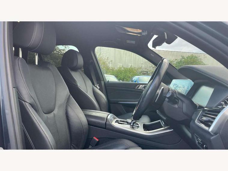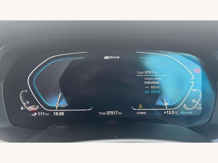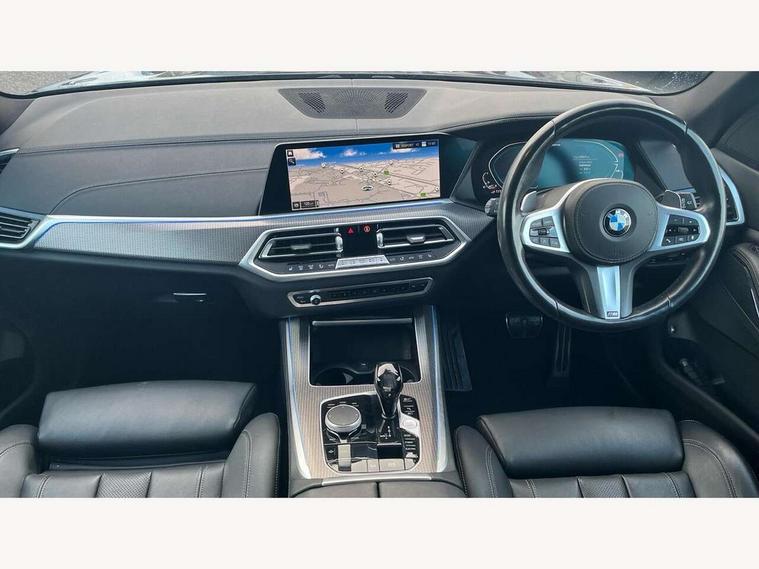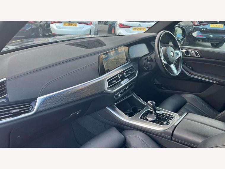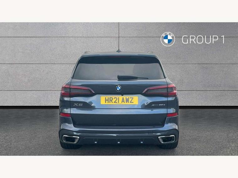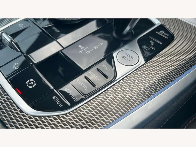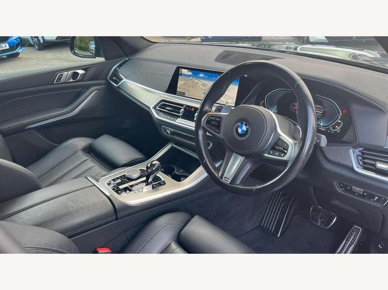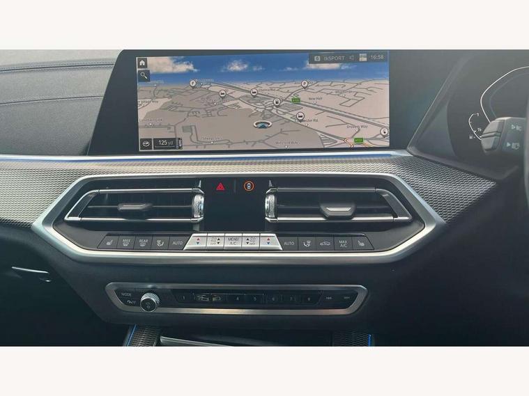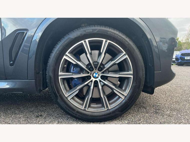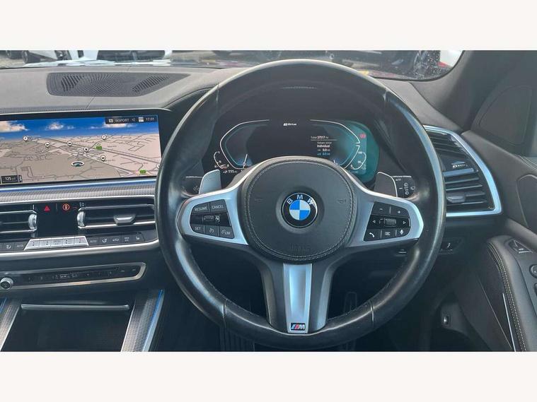 20GB hard disc drive (HDD) memory, Active guard plus, Attentiveness assist, Automatic tailgate with top hinged section open and manual bottom hinged section, BMW ConnectedDrive online services, BMW digital live cockpit professional - 12.3" digital instrument panel and 12.3" CID, with touch/voice command, BMW legal emergency call, BMW Teleservices, Brake force display, Brake pad wear indicator warning light, Cruise control with brake assist, eDrive button to select between AUTO eDrive, MAX eDrive and SAVE Battery settings, Front/rear park distance control, Galvanised plastic keyfob, Infinity symbol with line graphic on reset of average consumption, Lights on warning, Oil sensor for level and grade, On board computer inc. average speed, fuel consumption, liquid crystal Info display, journey computer, outside temperature display, personal profile, Service interval indicator, Speed limit info display, Speed limiting function, 5 metre AC Fast charge cable, Adaptive 2-axle air suspension, Double VANOS, Double wishbone front axle, Drive performance control with ECO PRO comfort + sport mode, eDrive exterior sound, Eight speed steptronic sport automatic transmission and gearshift paddles on the steering wheel, High precision injection, Petrol Particulate Filter, Safety battery terminal clamp, Standard Charging cable (Mode 2) for home socket, Twin scroll turbocharger with Valvetronic, DAB Tuner enables digital radio reception, Favourite buttons, USB connection, USB type A 1.5A in cupholder, USB Type C 3A in centre armrest, Active Air Stream kidney grille with high-gloss chrome, Adaptive air flap control bar in high-gloss black, Automatically dimming rear view mirror, BMW Individual high gloss black shadow line roof rails, Body colour bumpers, Body colour door handles, Dynamic brake lights with LED technology, Exhaust tailpipes - single, left and right with Chrome finisher, Follow me home headlight function, Front and rear electric windows with open and close fingertip control, anti trap facility and comfort closing, Heated windscreen washer jets, High beam assistant, High gloss black outer and central air intakes on front bumper with pearlescent chrome finish, High gloss black Side elements, LED daytime running lights, LED rear lights, Left charging flap on the front side, M aerodynamic body styling, M designation on left and right front side panels, Pearlescent chrome front grille bars, Rain sensor with automatic headlight activation and windscreen wiper control, Satin aluminium side window graphic, Third brake light in rear spoiler, Variable intermittent rear wash/wipe, Welcome light carpet, X5 on left tailgate, xDrive designation on right tailgate, 12V - Power sockets with 2x centre console and 1x luggage compartment, 40:20:40 split folding rear seats, Ambient interior lighting with 6 pre-designed selectable lights including dynamic function, Centre and rear interior light, Child seat ISOFIX attachment with rear outer seats includes top tether, Compartment in front of cupholder, Electric front seat adjustment with driver and front passenger memory function, Electrical steering column with adjustable height and length with activation and control on the steering column, Foldable rear centre armrest with 2 cupholders and storage compartment, Front and rear cupholders x 2, Front and rear door pockets, Front and rear door sill inlays with illuminated BMW M designation, Front and rear side armrest integrated into door trim, Front footwell lights, Front reading lights, Light inside glove compartment, Lockable glove compartment, Luggage compartment floor panel with integral storage tray, Luggage compartment lighting, M leather steering wheel, M specific key, M specific pedals, M specific steering wheel, M specific velour floor mats, Make-up mirror lights, Multifunction controls for leather steering wheel, Multifunctional hooks, Rear head restraints, Seat back with flap pocket, Securing rings in luggage compartment, Storage bins on all doors, Storage tray and compartment with cover in centre console, Sunvisors with illuminated vanity mirrors, Toolkit located in luggage compartment, Connected Package Professional - X5 xDrive45e, Expanded exterior mirror pack - X5/X5 M, Non-smokers pack - X5, Acoustic protection for pedestrians, Airbags - driver/front passenger, rear and side, first and second row seats head airbags, front passenger seat airbag deactivation + knee airbag, Anti-lock braking system (ABS), Automatic Stability Control (ASC), Brake drying, Brake energy regeneration, Brake fade compensation, Braking pre-tensioning, Cornering brake control (CBC), Crash sensor activating central locking release, hazard warning lights, fuel cut off, interior lighting + activation of safety battery terminal clamp, Deformation zones - front and rear with door reinforcements and bumpers up to 2.5 mph, DSC - Dynamic Stability Control, Dynamic brake control, Dynamic Traction Control - DTC, Electromechanical parking brake with automatic drive away release and auto hold function, Electronic brake force distribution, Front and rear seatbelts with seatbelt stopper, seatbelt tensioner for front and outer rear seats and belt force limiter, Front head restraints with anti-whiplash, Height adjustable front seatbelts, Hill start assistant, Integrated brake system, M Sport braking system in blue high gloss + blue painted brake calipers with M designation, Mechanical child proof lock on rear doors, Passive protection for pedestrians, Seat occupancy detection for driver and passenger side, Side impact protection, Three 3 point inertia reel seatbelts, Two tone horn, Tyre pressure monitoring system, Ventilated front and rear disc brakes, Warning triangle and first aid kit, Closing system with central locking, Driver and front passenger door centre lock switch, Locking wheel bolts, Thatcham 1 alarm system with remote control and engine immobiliser, Start/stop toggle diamond shaped trim finisher in pearl chrome,