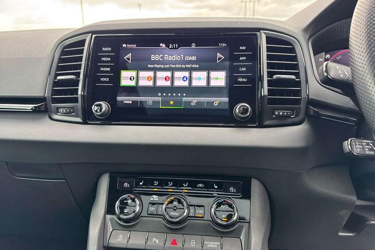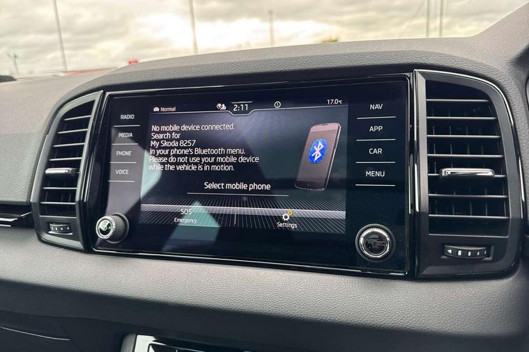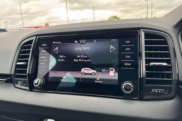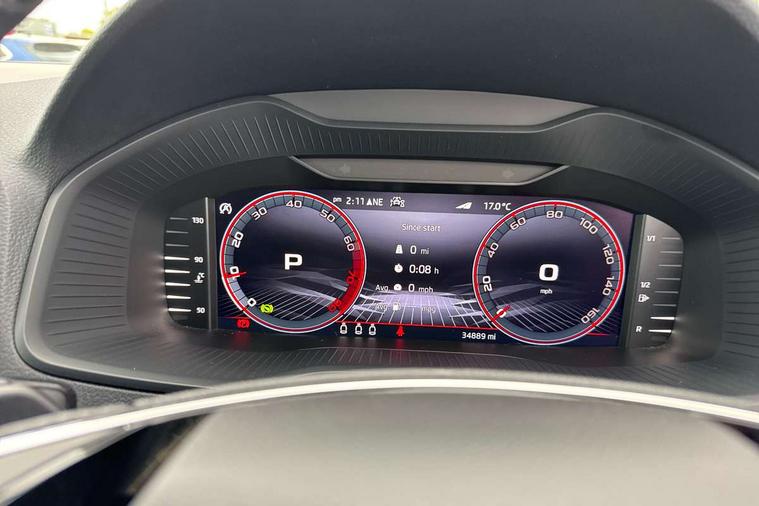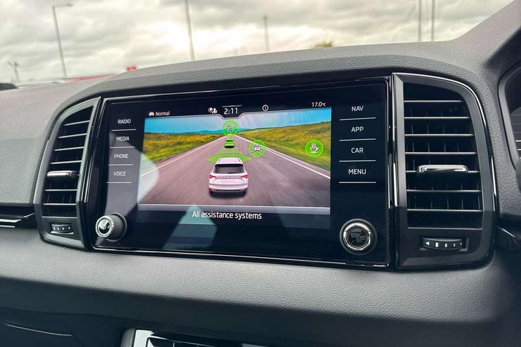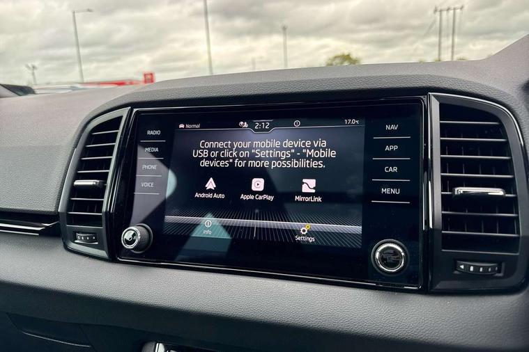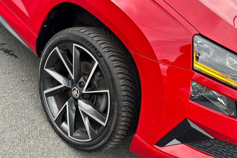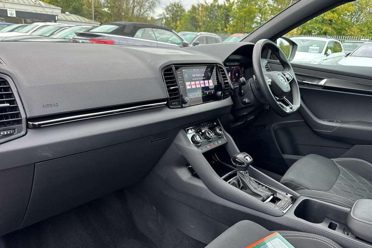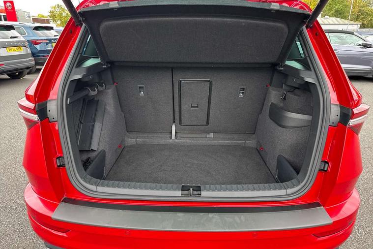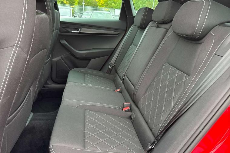8" Digital display, Care connect, Driver fatigue sensor, Emergency services call system, Outside temperature gauge, Service interval indicator, SmartLink wireless for Apple and wired for Android, Start/stop system with regenerative braking, USB C Port x 2 in front centre console, Virtual cockpit, Virtual pedal with electrically operated boot door, 8 Speakers, DAB radio with Bluetooth, USB connection, Wireless charging without wireless aerial connection, Acoustic glass, Aero front windscreen wipers with intermittent function, Auto dimming rear view mirror with light and rain sensors, Black door mirrors, Black electric window control buttons, Black radiator grille, Black roof rails, Body colour door handles, Dynamic headlight range control with cornering light function, Electric front and rear windows with child proof lock, Front door steps with SportLine logo, Heated rear windscreen, LED daytime running lights, LED rear lights with high functionality welcome effect and dynamic indicators, Light assistant (coming/leaving home/tunnel light), Panoramic sliding sunroof, Plastic scuff plates, Privacy glass, Protective door side sills in body colour, Rear diffuser, Rear side wing doors, Rear spoiler, Rear window wiper with washer system and intermittent control, Safety reflectors on front doors, Skoda lettering on tailgate in black, Sportline badge on front fender, Sportline decorative inserts with badging, Sports front and rear bumpers, 1.5 litre bottle holders in driver and front passenger door panels, 12V socket in boot, 12v socket in front centre armrest with storage compartment and rear air vents, 3 rear height adjustable headrests, 3 seat bench in 2nd row, 3 spoke leather sports multifunction steering wheel and silver stitching with gear shift paddles, 4 foldable roof handles with rear coat hooks, Black floor carpet, Black roof headlining, Chrome inner door handles, Double sided boot floor, Foldable hooks in the boot, Front head restraints, Height adjustable front three point seats belts with tensioners, Height/reach adjust steering wheel, Ice scraper, Illuminated glovebox, Illuminated luggage compartment, Isofix child seat preparation outer rear, Manual lumbar support for front seats, Pen holder, Pollen filter, Rear boot cover, Rear reading lights, Rear seats fixed folding and divided 60:40, Rubbish bin door, Safety vest holder, Single front passenger seat, Storage box in upper central dashboard closed, Sunvisors with illuminated vanity mirrors, Textile floor mats, Ticket holder, Titan black interior ceiling, Welcome animation with sportline logo, Boot pack - Karoq, Light Pack - Karoq, Parking pack - Karoq, Automatic door unlocking in case of crash, Automatic fuel cut off in case of crash, Child locks on rear doors, Driver airbag, Electronic parking brake with auto hold function, Emergency rear braking signal, ESC including ABS, MSR, ASR, EDS, HBA, DSR, RBS, MKB and traction control, Front side airbags, Hill hold control, Knee airbags, Passenger airbag with switch-off function, Pedestrian monitor, Seatbelt reminder signalisation and pretensioner for all seats, Three point seatbelts rear, Two tone horn, Tyre pressure display, Tyre pressure monitor, Alarm with interior monitoring, back up horn and tilt sensor with safe function, Electronic engine immobiliser, Keyless entry and start/stop, Remote central locking with 2 remote folding keys, Black air vent surround, Black centre console, Satin black dashboard, Satin black door trim, 19" Vega black polished alloy wheels, Anti-theft wheel bolts protection, Matt black aero hub caps, Storage on wheel cover, Tool kit,