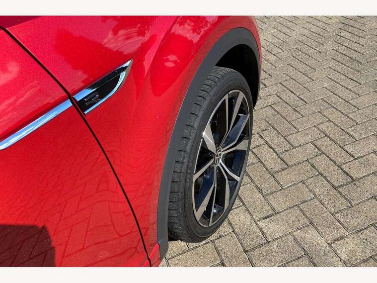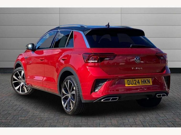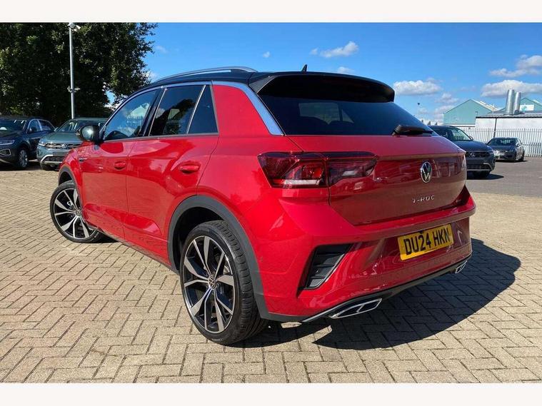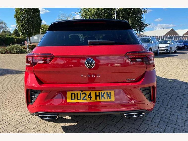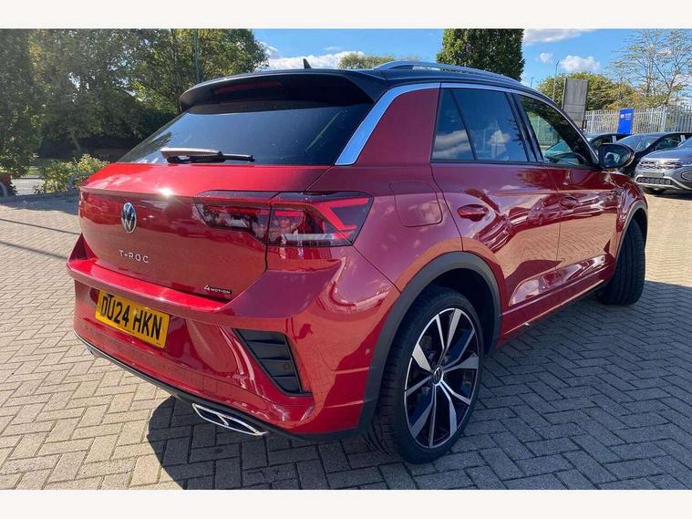 10.25" Digital cockpit pro, Advanced driver attention and drowsiness monitor, Bluetooth mobile phone interface, Emergency call service, Lane keeping system Lane Assist, Modified key software - reduce switch off time for key status change to Long no motion, Online services, Park assist including front and rear parking sensors, Service interval indicator, Tailgate/trunk lid release from outside, Think blue trainer driver tips and journey analysis, Warning sound and light for front seatbelts unfastened, Wireless app connect, Battery regeneration during braking, Four wheel drive, Start/stop function with battery regeneration, Diversity antenna for FM reception, Music playback - MP3, WMA and AAC files, Premium USB cable in choice of either Apple or Android smartphone compatibility, SD card slot, Simultaneous pairing of 2 compatible mobile devices, Title and cover art display, We Connect and We Connect Plus functionality, 3rd brake light, Auto dimming interior rear view mirror, Automatic hazard lights activation under emergency braking, Automatic headlight control with LED separate daytime running lights with coming/leaving home function, Electrically adjustable and heated door mirrors, Extended roof spoiler, Exterior mirrors aspherical on driver side, convex on front passenger side, External USB type C socket and charging sockets, Front windscreen wiper with intermittent wipe and 4 position delay, Heated rear window, LED rear combination lamps, LED rear number plate lights, Power windows with comfort operation and circuit breaker, R-Line design body coloured bumpers, Rain sensor, Rear exhaust tailpipe, Rear fog light on one side and reversing lights on both sides, Rear side wing doors, Rear wash/wipe with intermittent wipe setting, Remote electrically foldable door mirrors, puddle lights and reverse activated passenger's door mirror, 12V power socket in centre console, 3 rear head restraints, 3 seat bench in 2nd row, 4 load lashing points in luggage compartment, Air care climatronic air conditoning system with active combination filter and 2-zone temperature control, Black roof lining, Chrome plated radiator grille inserts, air vent surrounds and light switch surrounds, Door and side trim panel with leatherette insert, Front + rear carpet mats, Front centre armrest, Front cupholders x 2, Front footwell illumination, Front reading light, Front scuff plates with R Line logo, Front seat back storage pockets, Glove compartment door with light, Instrument lighting, white adjustable panel illumination, Interior ambient lighting and surround lighting, Interior light delay, Isofix child seat preparation, Leather gearshift handle, Load-through provision with cup holder when folded down ('Unsplit rear seat bench, split folding backrest, with centre armrest), Luggage compartment lighting, Single front passenger seat, Stainless steel pedals, Storage compartment in left and right luggage area, Storage compartment in rear doors, Storage compartments in driver and front passenger doors, Sunvisors with illuminated vanity mirrors, Variable boot floor, height adjustable and removable, Driver assistance pack without proactive passenger protection - T-Roc, 3 point height adj front seatbelts + pretensioners, 3 point seatbelts in outer rear with ECE label, ABS, Child locks on rear doors, City emergency braking and pedestrian monitoring, Driver and front passenger airbag with front passenger airbag deactivation, Driver and front passenger safety-optimised head restraints, Drivers seatbelt reminder, Electronic parking brake, Electronic Stability Control (ESC) inc EDL (Electronic Differential Lock) and ASR (Traction Control), Front and rear passengers curtain airbag system including front side airbags, Hill start assist, Predictive pedestrian protection, Rear disc brakes, Two tone horn, Tyre pressure loss indicator, Volkswagen roadside assistance, Anti-theft alarm system with interior monitoring, backup horn, and towing protection, Remote central locking with SAFELOCK, radio remote control with 2 remote control folding keys, Trims for alloy wheels,