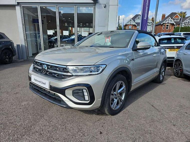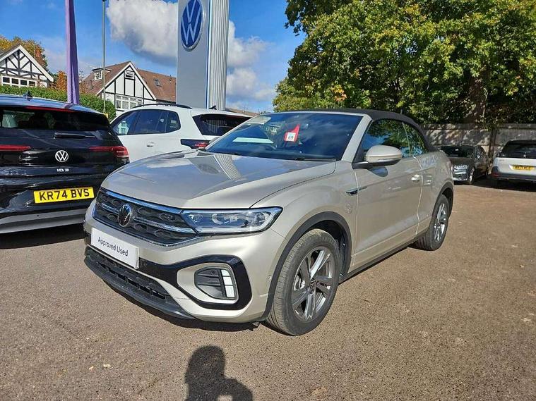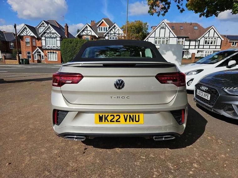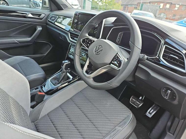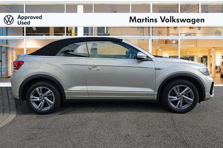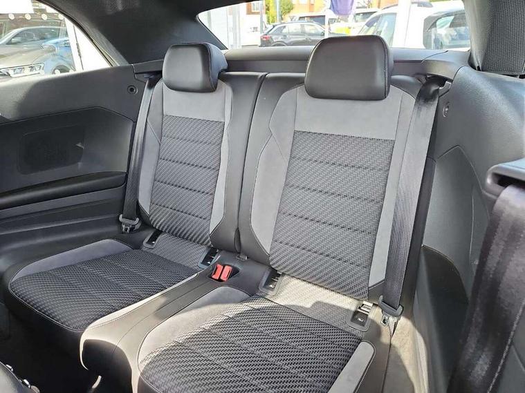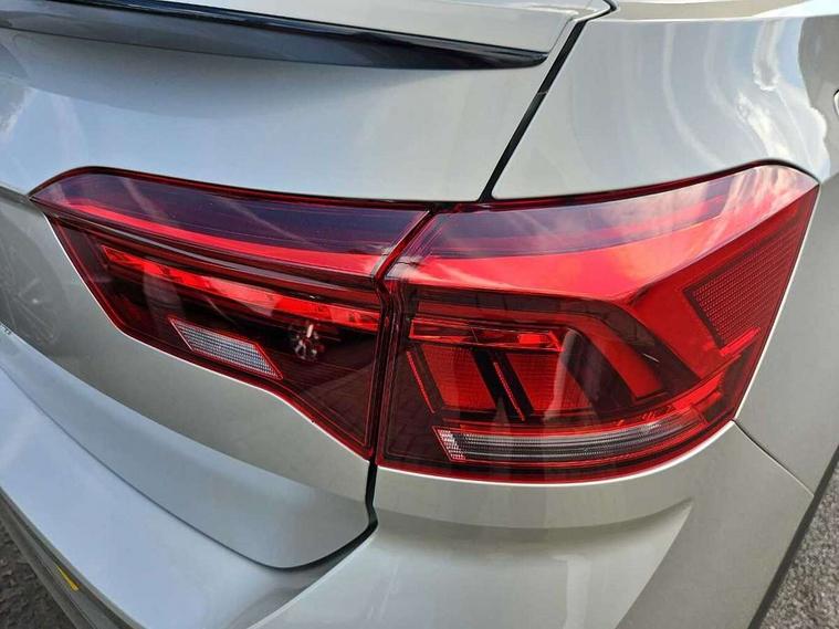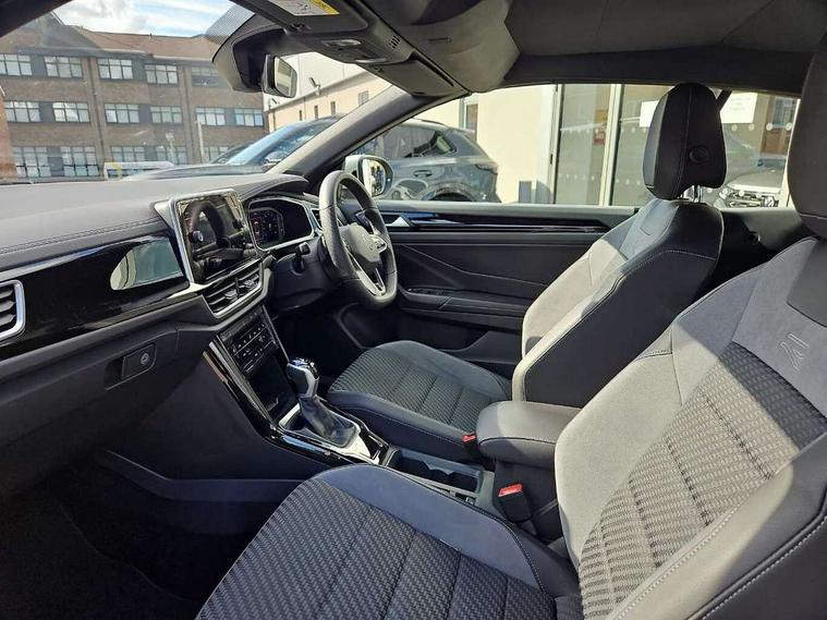 Adaptive cruise control and speed limiter, Bluetooth mobile phone interface, Brake pad wear indicator, Car information display, Digital Cockpit Pro with 10.25" Display, Driver alert system with fatigue detection, Driver tips and journey analysis, Emergency call service, Modified key software - reduce switch off time for key status change to Long no motion, Multifunction computer with visual gear change recommendation for fuel consumption, Multifunction front facing camera, Park assist including front and rear parking sensors, Speedo and rev counter, electronic odometer, trip, service interval display and exterior temperature gauge, Start/stop system with brake energy recovery, Tailgate/trunk lid release from outside, Warning sound and light for front seatbelts unfastened, Diversity antenna for FM reception, Music playback - MP3, WMA and AAC files, SMS functionality - read, compose and send SMS messages using touch-screen display, Title and cover art display, USB-C Interface and USB charging socket, We Connect and We Connect Plus functionality, Ambient lighting with logo projection, Auto dimming interior rear view mirror, Automatic hazard lights activation under emergency braking, Automatic headlight control with LED separate daytime running lights with coming/leaving home function, Black roof, Body colour door handles, Body colour rear spoiler, Chrome effect left and right trapezoid exhaust tailpipe fascia surround, Chrome trim on upper and lower radiator grille, Dark red rear combination lamps in LED technology, Dusk sensor, Exterior mirrors aspherical on driver side, convex on front passenger side, Heat insulating glass windscreen, High level 3rd brake light, LED performance matrix headlights - dynamic range control, dynamic cornering light and turn signal + light mode for rain/fog/snow, LED rear number plate lights, Power operated canvas convertible top, Power windows with comfort operation and circuit breaker, R-Line design body coloured bumpers, Rain sensor, Rear boot, Rear exhaust tailpipe, Rear fog light on one side and reversing lights on both sides, Remote electrically foldable door mirrors, puddle lights and reverse activated passenger door mirror, Volkswagen roundel, Windscreen wiper with intermittent wipe light, Without exterior ambient lighting, 12V socket in centre console storage area, 2 LED front reading lights, 2 seat bench in 2nd row, 50:50 Split folding rear seat backrests with fixed rear seat bench, Air care climatronic air conditoning system with active combination filter and 2-zone temperature control, Black door lower parts with chrome trim, Chrome plated surround to light, mirror and window switch, Door and side trim panel with leatherette insert, Easy entry backrest release, Front and rear carpet mats with black stitching, Front centre armrest, Front cupholders x 2, Front door pockets, Front seat back storage pockets, Front sports comfort seats with manual height adjustment, Heated leather wrapped multi function sports steering wheel with tiptronic, Height/reach adjust steering wheel, Inserts of front seats and outer rear seats in ArtVelours titan black, Instrument lighting, white adjustable panel illumination, Interior light delay, Interior light in footwell, Interior lighting with switch off delay and contact switches on all doors, Interior white ambient lighting and surround lighting, Isofix child seat preparation, Lockable glove compartment with light, Luggage compartment lighting, Power adjustable lumbar support in front, Rear head restraints, Single front passenger seat, Stainless steel pedals, Sun visors with illuminated vanity mirrors, Unique R Line door sill protectors, Driver assistance package - T-Roc cabriolet DSG, 2 x 3-point seatbelts/outer rear seats with ECE label, Driver and front passenger airbag with front passenger airbag deactivation, Driver and front passenger safety-optimised head restraints, Drivers seatbelt reminder, Electronic parking brake, Electronic Stability Control (ESC) including ABS, ASR and EDL, Front and rear disc brakes, Front assist with autonomous emergency braking, Pedestrian monitoring, Predictive pedestrian protection, Rigid safety cell with front and rear crumple zones, Side airbag/thorax airbag system, for front passengers, Single tone horn, Three point height adjust front seatbelts + pretensioners, Tyre pressure loss indicator, Volkswagen roadside assistance, Anti-theft alarm system with interior protection and central locking system with SAFELOCK, radio remote control and 2 remote control folding keys, Electronic engine immobiliser, Trims for alloy wheels,