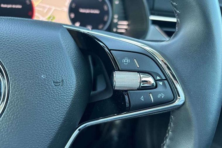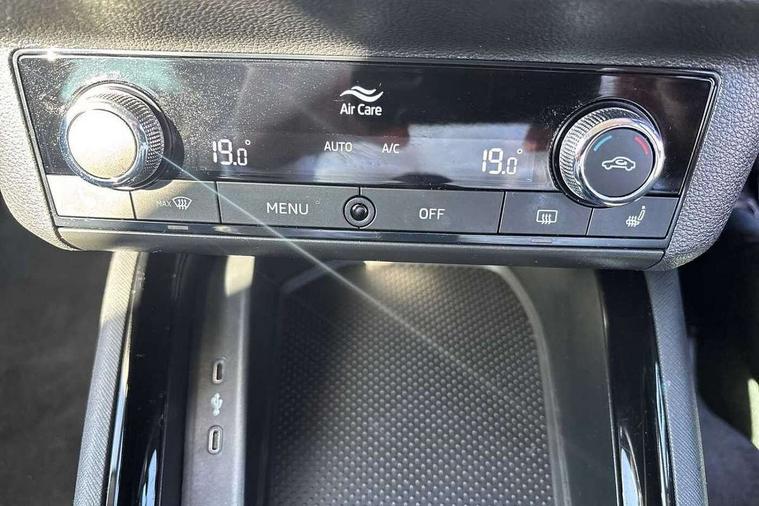 Amundsen satellite navigation with 9.2" touchscreen display, voice control, virtual cockpit and web radio, Bluetooth system, E-call, Front assist system, Gesture control, PAS, Rear view camera, Service indicator, Speed limiter, Virtual cockpit with 10.25" display, Wireless SmartLink for apple car play, android auto and mirrorlink, 8 Speakers, Auxiliary input socket, DAB Digital radio, Auto dimming rear view mirror, Body colour bumpers, Body colour door mirrors and handles, Chrome grille surround, Electric folding door mirrors, Electrically adjustable and heated door mirrors, Front and rear electric windows, Headlight range control, Heated rear window, LED rear lights - low functionality, Light sensors, Privacy glass, Rear fog lights, Rear side wing doors, Rear wiper, 12V Accessory socket in centre console, 3 seat bench in 2nd row, Chrome inner door handles, Dual zone climate control, Front head restraints, Glove compartment with illumination, Ice scraper, Isofix child seat fittings on outer rear seats, ISOFIX on front passenger seat, Manual lumbar support for front seats, Rake/reach adjustable steering wheel, Reading lights, Single front passenger seat, Sun visors with illumination on front passenger, Textile floor mats, Third rear headrest, Top tether for front passenger seat, Umbrella in driver's door, 3x3 point rear seatbelts, Airbags - driver and front passenger, ESP, Front passenger airbag deactivation switch, Front side airbags with curtain airbags, Hill hold control, Manual parking brake, Manual rear child locks, One tone horn, Rear disc brakes, Seatbelt reminder for driver an co-driver, Traction control, Tyre pressure monitor, Anti-theft alarm system with interior monitoring, backup horn, towing protection and remote central locking with SAFE system, Anti-theft wheel bolts, Electronic engine immobilizer, Latice curved decorative insert on the dashboard with hot stamping in copper and white ambient lighting white,