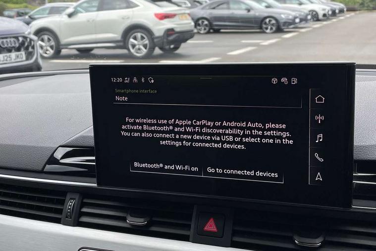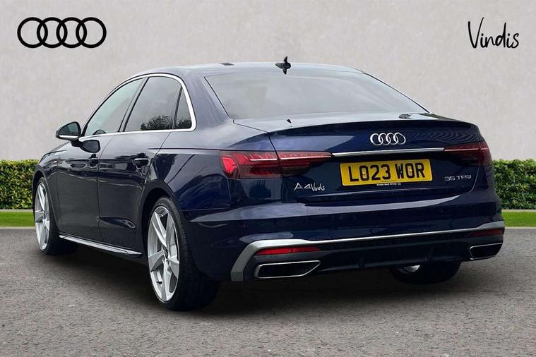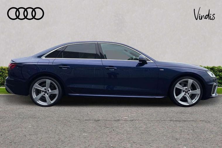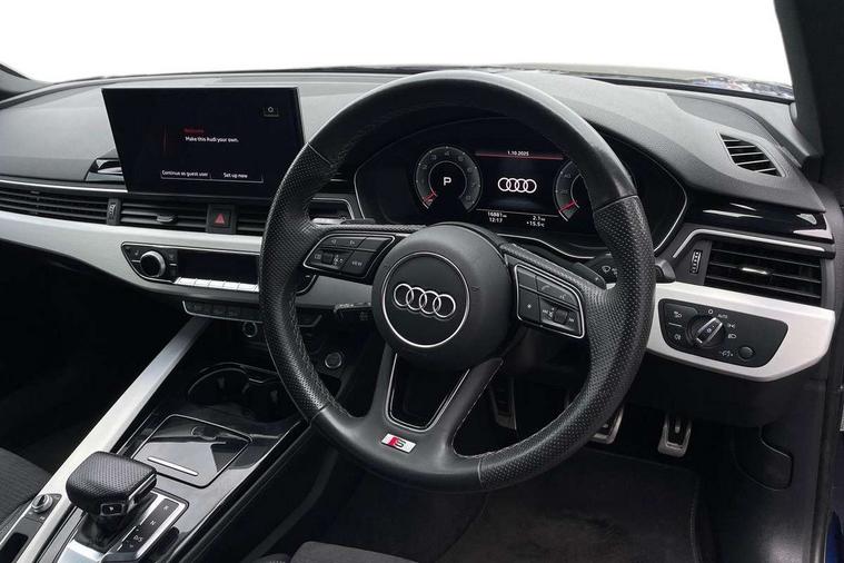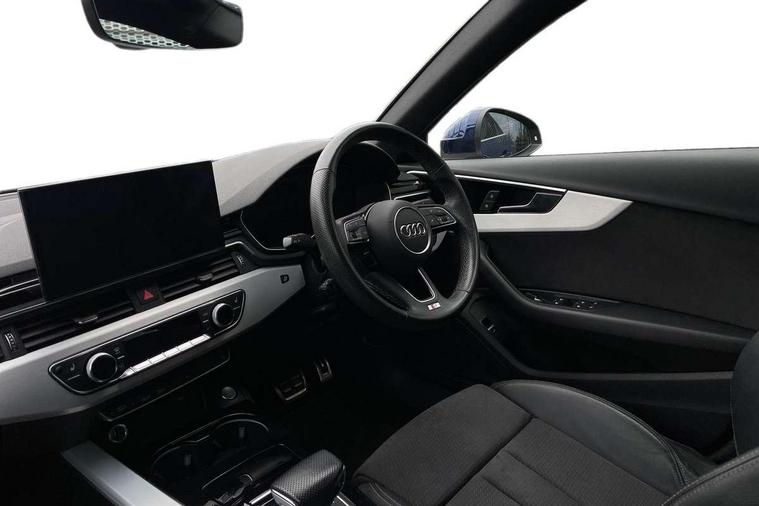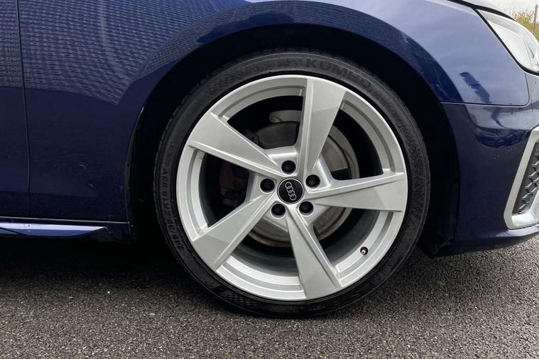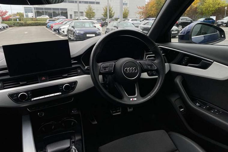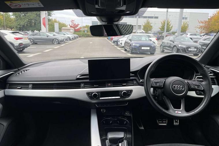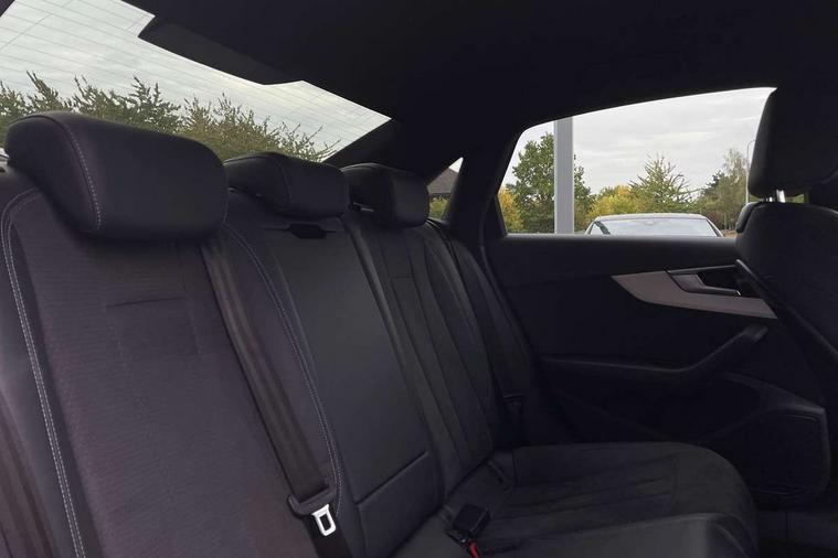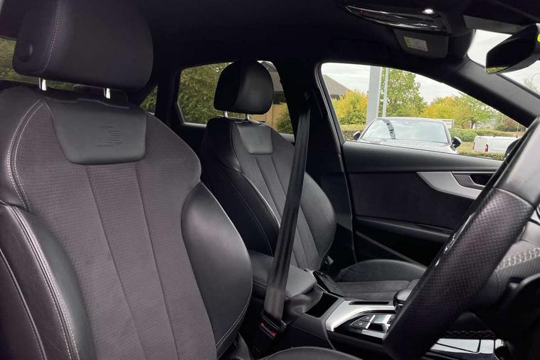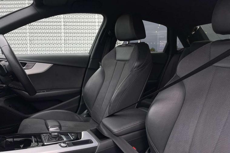 Audi connect safety and service (e-call), Audi drive select, Audi smartphone interface, Audi virtual cockpit, Automatic start-stop system with coasting functionality and efficiency programme, Bluetooth interface, Camera based traffic sign recognition, Electric boot lid release, Electromechanical power steering, Email, calendar and text messages displayed via MMI, Front and rear parking sensors, Lane departure warning, MMI Navigation plus with MMI touch includes 10.1" high resolution colour MMI display, 3D map, Rear view camera, Voice control system, 54 litre fuel tank, Sports suspension lowered by 23mm, 2 USB charging ports, 8 passive loudspeakers, DAB digital radio reception, Auto dimming rear view mirror, Body colour door handles, Body colour front spoiler lip, Body colour side sill trim, Body coloured door mirrors, Electrically folding auto dimming/adjustable/heated door mirrors with LED side indicators and kerb view function for passenger side, Grained matt black side air inlets with matt aluminium silver inlay, High beam assistant, Honeycomb structure radiator grille in grained matt black, LED headlights with LED rear lights + dynamic rear indicators + headlight adjustment and high beam, turning light + LED daytime running lights, LED third brake light, Matt aluminium silver tailpipe trim, Privacy glass, Rain and light sensors, Rear boot, Rear side wing doors, S Line badges on the front wings, S line front and rear bumpers with side skirts, S Line rear diffuser in matt anthracite black with trim strip in matt aluminium silver, Variable intermittent front wash/wipe, Windscreen with acoustic glazing, 3 spoke high multi-function sports leather steering wheel grips in perforated leather with S badging including paddle shift, 4 way electric lumbar support for driver and front passenger, 40/20/40 split folding 3 rear seat bench in 3 parts with rear centre armrest, Black cloth headlining, Black perforated leather gearknob, Contrast stitching on seats, steering wheel and gear lever gaiter, Deluxe 3 zone electronic climate control, Door sill trims with aluminium inlay, Front and rear head restraints, Front centre armrest, Heated front seats, Illuminated door sill trims with S logo, ISOFIX child seat mounting and top tether, Manual seat adjustment, Single front passenger seat, Stainless steel pedals and foot rest, High gloss package - A4, LED Interior light pack - A4/S4, 3 rear seatbelts, 6 airbags - Driver, front passenger, curtain and side windows, Attention and drowsiness assist, Electronic Stabilisation Control (ESC) including ABS, ASR and EDL, Hill hold assist, Multi collision brake assist, Pop-up bonnet for pedestrian protection, Pre sense city, Rear door child safety locks, Seatbelt monitoring, Warning triangle and first aid kit, Anti theft alarm, Anti theft wheel bolts, Central locking, Keyless Go, Matt brushed aluminium inlays, Tool kit, Tyre repair kit,