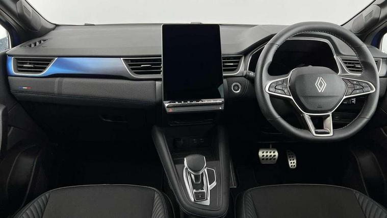 10.25" digital driver display, 10.4" OpenR link touchscreen with with built in Google Automotive Services and navigation, Adaptive cruise control with speed limiter, Blind spot warning and rear detection, Driver attention alert system, Eco mode driving function, Front, rear and side parking sensors, Front/rear detection with emergency lane keep assist incl. solid line, oncoming traffic and road edge detection, Gear change indicator, Lane centering assist, Multi Sense - 3 driving modes and up to 48 ambient lighting colours, My safety switch - ability to personalise ADAS features at press of a button, PAS, Power hands-free tailgate opening, Rear cross traffic/pedestrian alert with rear braking assitance, Rear view camera, Renault automatic emergency assist, Traffic sign recognition with overspeed prevention, Trip computer, Wifi smartphone integration compatible with Apple CarPlay and Android Auto, Wireless phone charger, 2 front and 2 rear USB-C ports, Arkamys speakers - x6 inc. 2 boomer, 2 tweeter and 2 bicone, DAB radio with Bluetooth, Automatic headlights, Automatic high / low beam, Automatic windscreen wipers with rain sensor, Dark tinted rear windows and tailgate, Electric adjustable/heated/auto folding door mirrors, Esprit alpine exterior styling, Frameless auto dimming rear view mirror, Front and rear electric windows with driver window one touch facility and anti pitch function, Front matte grey and rear skid plates, Full LED front and rear lights, Gloss black window surround, Heated rear window, LED daytime running lights, LED rear fog lights, LED third brake light, Radiator grille with 3D graphics in black upper part with grey graphics and body tone lower part, Rear side wing doors, Rear wiper, Shark fin antenna, 2 front roof LED lights and central rear rooflight with 3 reading LED lights, 3 seat bench in 2nd row, Aluminium sports pedals, Automatic air conditioning with one touch quick demist function and air quality regulator, Driver and front passenger seat with electric height adjustment, Esprit alpine interior styling, Flying console with central storage, sliding armrest and 2 rear air vents, Front and rear head restraints, Heated front seats, Heated synthetic leather steering wheel, Height and depth adjustable steering wheel, ISOFIX child seat fixing points on rear outermost seats, Modular boot floor, Rear seats - 1/3:2/3 foldable sliding bench, Recycled fabric upholstery, Single front passenger seat, Sunvisor with mirror and light, 3x3 point rear seatbelts, Abs with emergency brake assist, Active emergency braking system - Urban and pedestrian/cyclist, Distance warning alert, Driver and front passenger and 3 rear passengers seatbelt reminder, Driver and front passenger, side, head and curtain airbags, Driver height adjustable seat belt, Electronic parking brake with auto hold function, Front passenger airbag deactivation, Hill start assist, Occupant safe exit, Rear window and door child locking function, Tyre pressure warning light, Central door locking, Hands free keycard with Keyless access and start, Brushed blue decorative upper strip, Lower textile strip on dashboard with red, white and blue flag, 19" Esprit alpine elixir alloys wheels,