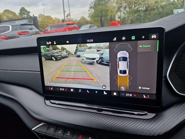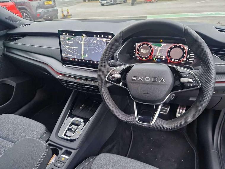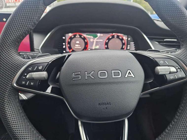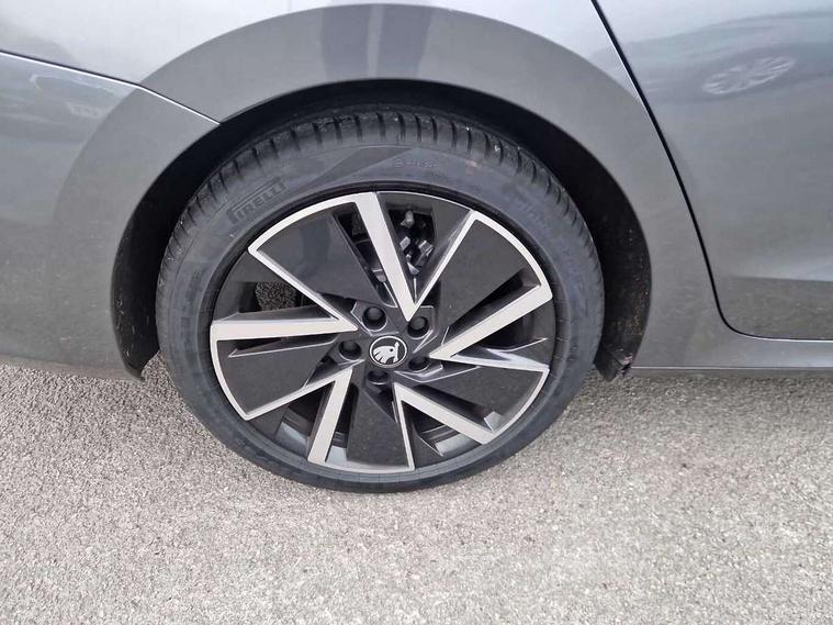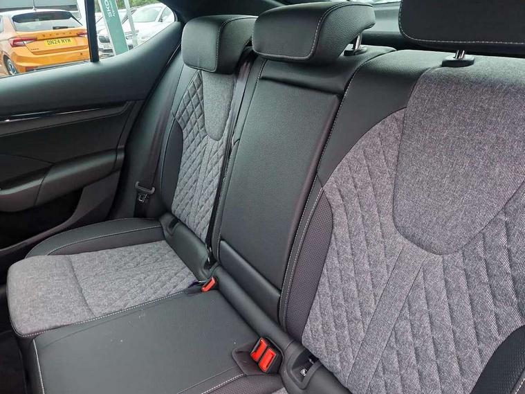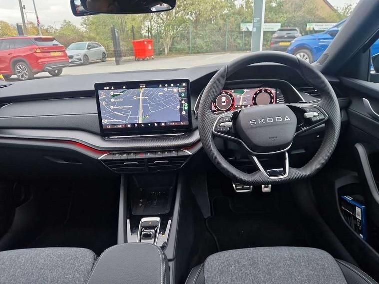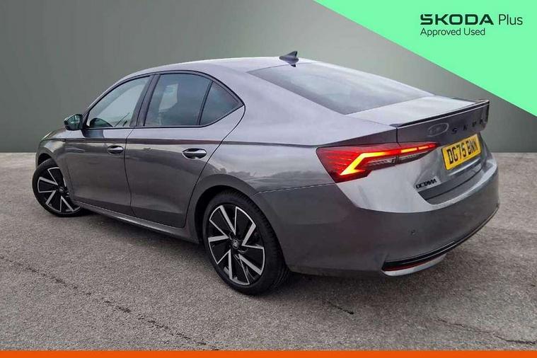 1x USB Typc C port in rear view mirror, 4x USB Type C ports - 2x in front centre console and 2x in rear (45W), Drive mode selection, Driver fatigue sensor, eCall emergency system, Front assist system, Progressive dynamic steering, Traffic sign recognition, Turn Assist, Virtual Cockpit - 10.25" digital display, Voice control system, Wireless charging (15W) with cooling function, Wireless SmartLink for Apple CarPlay and Android Auto, Sports suspension with 15mm lower, 13" touchscreen display with navigation, DAB Digital radio, Aero front windscreen wipers with intermittent function, Auto dimming rear view mirror, Body colour bumpers, Body colour door handles, Chrome strip in lower front bumper, Electric front and rear windows, Exterior gloss black sports styling including front grille, window surrounds, door mirrors and badging, Gloss black diffuser, Gloss black spoiler, Heated rear windscreen, High beam control, High level third brake light, Ice scraper in fuel cap, LED daytime running lights, Logo projection in front doors, Rain and light sensors, Rear fog light on one side and reversing lights on both sides, Rear privacy glass, Rear side wing doors, Rear wiper, 12 volt socket in boot, 3 rear headrests, 3 seat bench in 2nd row, 4 foldable roof handles, Aluminium pedals, Boot net programme, Front head restraints, Front sport seats, Heated front seats, Illuminated glovebox, Interior door handles in dark chrome, Jumbo Box storage, Luggage compartment lighting x2 lights, Mechanical rear seat release from boot, Parcel shelf - folding, Single front passenger seat, Steering wheel in black leather with black stitching, Storage compartments in left and right of boot, Sun visors with mirrors, Sunglasses storage, Three spoke leather sports multifunction steering wheel with paddles, Ticket holder, Umbrella in door panel, Unsplit rear bench seat, split folding backrest with centre armrest with cupholder, SportLine Design Selection pack - Octavia, 3x3 point rear seat belts, Alarm with interior monitoring, tilt sensor and back up horn, Curtain airbags and front side airbags, Driver and front passenger airbags, Drivers knee airbag, Electronic parking brake, ESC including ABS, EBV, MSR, ASR, EDS, HBA, DSR, Front central airbag, Hill hold assist, ISOFIX on front passenger seat and outer rear seats, Passenger airbag deactivate switch, Three point seat belts in front and rear, Two tone horn, Tyre pressure monitor, Visual and acoustic seat belt reminder, Warning reflectors in front door, Anti-theft wheel bolts, Keyless entry and start/stop, Remote central locking, Gloss black air vent surrounds,