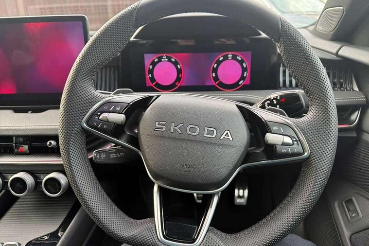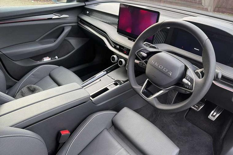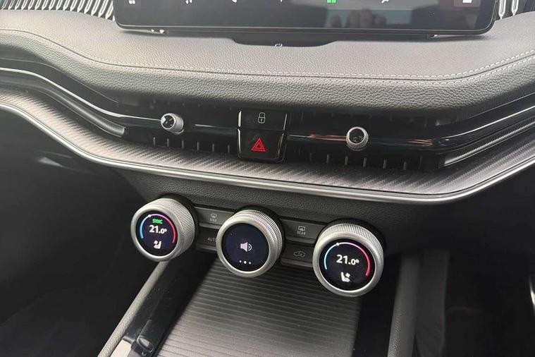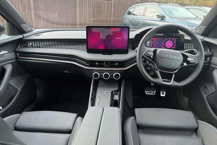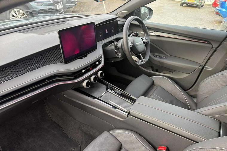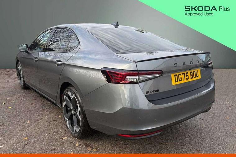 13" touchscreen display with satellite navigation, 4x USB-C ports (2x in front centre console and 2x in rear) (45W), Adaptive cruise control with speed assist, lane assist plus and traffic tram assist, Blind spot detection with door exit warning, Bluetooth system, CareConnect and Emergency Call, ChatGPT functionality, Driver fatigue sensor, Front assist with extended predictive pedestrian protection, Front cross traffic assist, PAS, Quick start all heating software functionality, Stop/start engine system, Traffic sign recognition, Turn assist with evasive assistance, Virtual Cockpit - 10.25" digital display, Voice control system, Washer for rear camera, Wireless charging for one smartphone (15W) with cooling function, Wireless smartlink apple carplay, SmartLink+ android auto, Dynamic chassis control plus with progressive dynamic steering, DAB Digital radio, Display cleaner, FM radio connection, Web radio connection, Acoustic side windows and interior noise suppression, Backdrop lighting, Black exterior styling window and grille surrounds, Body colour door handles, Dynamic range control with poor weather light and integrated fog light, Electrically adjustable, heated, folding and driver side auto-dimming door mirrors with memory function, integrated indicators and logo projection, Frameless auto-dimming rear view mirror with USB-C, Gloss black door mirrors, Ice scraper in fuel tank cap, LED 3rd brake light, Light assist with High beam control, Light assistant (coming/leaving home/tunnel light), Privacy glass, Rear fog lights (x2), Rear side wing doors, Skoda lettering in black, Sportline badging, Sports bumpers, Windscreen wipers with rain sensor, 12V socket 1x centre console 1x boot, 14-way electrically adjustable, memory, front seats with 4-way pneumatic lumbar support, and extendable thigh support with smart comfort entry aid, 2x cargo elements in boot, 2x light in boot, 3 seat bench in 2nd row, 60:40 Split folding rear seats, Aluminium pedals, Bottle holders in the front doors 1.5 litre bottle and rear 1.5 litre bottle, Cup holder in front with easy open mat, Front armrest with storage box, Front sports seats, Heated and ventilated front seats, Height adjustable front and rear head restraints, Illuminated glovebox, Interior lights with control switches, Isofix child seat fittings in outer rear and front passenger seats, LED front and rear reading lights, Single front passenger seat, Skoda lettering on steering wheel, Storage compartment with cover, Storage pockets on back of front seats, Sun visors with illuminated vanity mirrors, Ticket holder on A Pillar, Tri zone climate control, Umbrella in driver's door, Light and view package - Superb, Transport package - Superb Hatchback, 3 rear seatbelts, 8 Airbags - Front driver and passenger, front side driver and passenger, centre, curtain front and rear, drivers knee, Crew protect assist, Driver and passenger seatbelts with warning light, Electronic parking brake, ESC including ABS, EBV, MSR, ASR, EDS, HBA, DSR, RBS, CBC, multi-collision brake (MKB) and Auto hold, Hill hold assist, Power operated child lock in rear doors, Alarm with interior monitoring tilt sensor and back up horn, Backrest remote release from trunk, Electronic engine immobiliser, Keyless start/stop, Remote central locking with SAFE system, Third key, Walk away locking, Decorative front door sills, 19" Torcular polished black alloy wheels with anti theft wheel bolts,