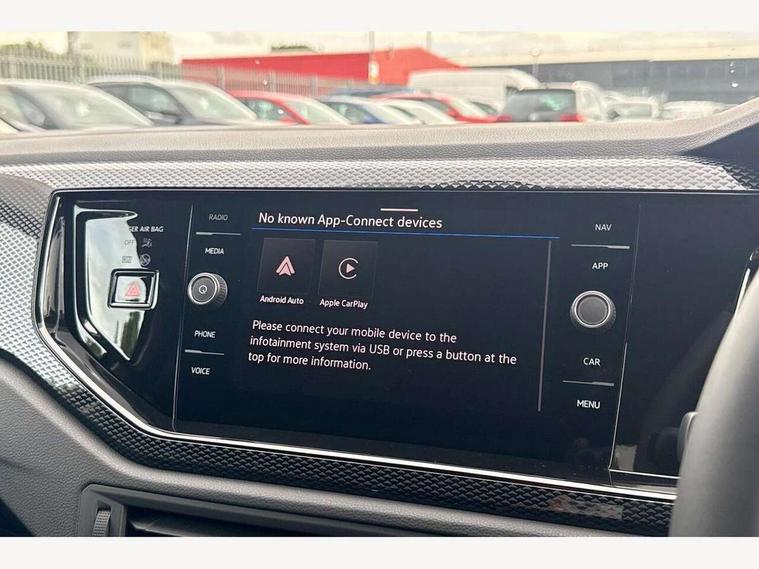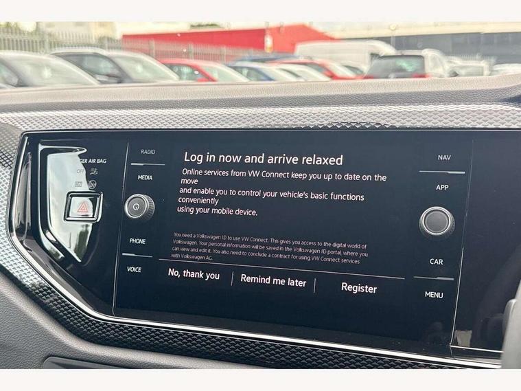 Advanced driver attention and drowsiness monitor, Bluetooth mobile phone interface, Dynamic road sign display, Emergency call service, Mobile phone preparation with inductive charging function, Multifunction front facing camera for distance control, Power assisted speed sensitive steering, Predictive adaptive cruise control without follow-to-stop and speed limiter, Preparation for navigation system with media and internet package, Preparation for We connect and We connect plus, Rear view camera, Speedo and rev counter, electronic odometer, trip, service interval display and exterior temperature gauge, Standard rear axle, Travel Assist - Lane keeping system and traffic jam assist, Travel assist including emergency assist, Trip computer, Warning signal and warning light for front and rear seatbelts not fastened, Washer fluid level indicator, Wireless app connect, Front wheel drive, Rear shock absorpion, Start-stop system with battery regeneration (recuperation - energy recovery during braking), DAB Digital radio, Diversity antenna for FM reception, Automatic dimming interior rear view mirror, Automatic headlight control with LED separate daytime running lights with coming/leaving home function, Body colour bumpers with chrome inserts, Body colour door handles, Body colour door mirrors, Electric front windows, Engine badge deletion, Headlight range adjustment, Heat insulating and laminated safety glass windshield, LED Headlights, LED rear combination lamps, Power folding adjustable/heated exterior mirrors and front passenger exterior mirror lowering function, Rain sensor, Rear electric windows, Rear fog light, Rear side wing doors, Rear tinted glass from B-pillar backwards approx 65% tinted, Rear windscreen washer and wiper with interval delay, Third brake light, 12V power socket in centre console, 2 front and 2 rear reading lights with switch off delay and dimmer, 2 USB-C ports in the front, 2 USB-C charging sockets on the center console in the rear, 3 rear head restraints, 60/40 split folding rear seat and rear seat bench not split, Ceramique roof lining, Chrome plated radiator grille inserts, air vent surrounds and light switch surrounds, Door and side trim panel, Driver and front passenger seat height adjustment, Driver/passenger sunvisors with illuminated vanity mirrors, Front centre armrest, Front seat backrest storage pockets, Front standard seats, Handbrake lever handle in leather, Hartley/Thomas cloth upholstery, Headliner in recycled material, Isofix child seat preparation easy-fit (for two outer rear seats, and front passenger seat) compatible with I-size, Leather trimmed gear knob, Luggage compartment cover, Luggage compartment lighting, Removable luggage compartment floor, Single front passenger seat, Standard climatic zones, Standard pedal cluster, Three spoke leather wrapped multifunction steering wheel with shifting paddles, Light and vision pack - Polo, 3 point height adj front seatbelts + pretensioners, 3 point seat belt for centre rear seat, 3 point seatbelts, outer rear with ECE lable, ABS, Driver and front passenger airbag with front passenger airbag deactivation, Drivers and front passengers safety optimised head restraints, ESC (Electronic stability control) + EDL (Electronic Differntial lock) and ASR (Traction control), Extended and predictive pedestrian/ cyclist protection, Front assist with autonomous emergency braking (for Adaptive Cruise Control ACC up to 130 mph), Front curtain and side airbags with center airbag, Front disc brakes, Hill hold control, Manual child lock in rear doors, Rear drum brakes, Single tone horn, Tyre pressure loss indicator, Alarm with interior protection, Anti-theft alarm system with interior monitoring, backup horn, and towing protection, Anti-theft wheel bolts, Electronic engine immobiliser, Lava stone black gloss/matt decorative inserts in dash and front door panels, 16" Torsby alloy wheels, Low rolling resistance tyres,