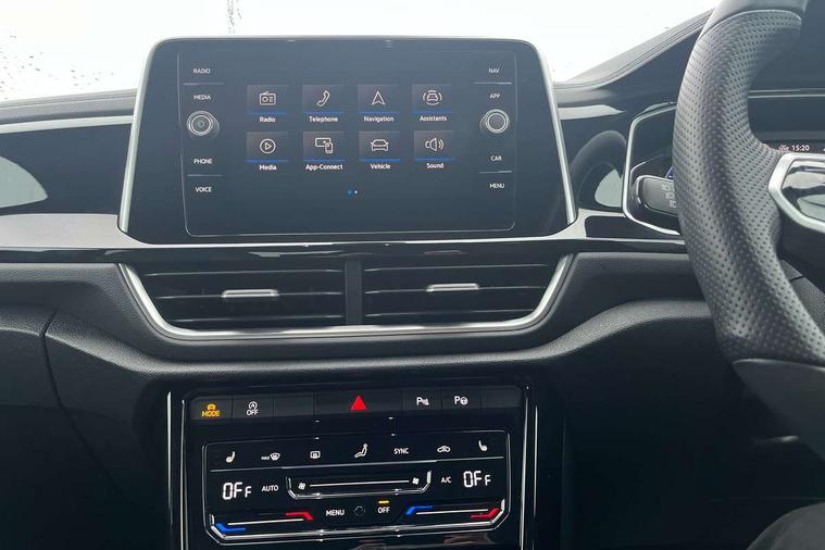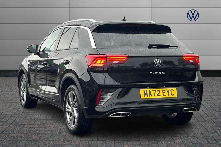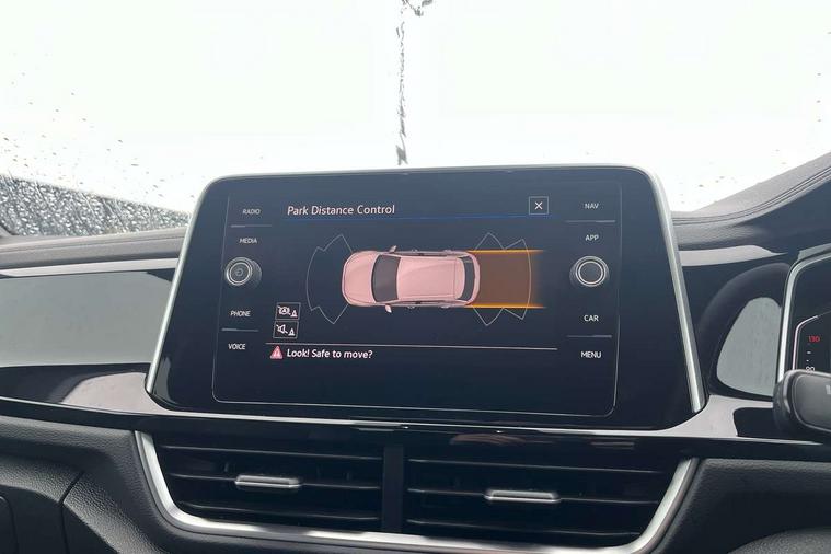 10.25" Digital cockpit pro, Bluetooth mobile phone interface, Driver alert system with fatigue detection, Driver tips and journey analysis, Emergency call service, Lane keeping system Lane Assist, Modified key software - reduce switch off time for key status change to Long no motion, Online services, Park assist including front and rear parking sensors, Service interval indicator, Tailgate/trunk lid release from outside, Think blue trainer driver tips and journey analysis, Warning sound and light for front seatbelts unfastened, Wireless app connect, Battery regeneration during braking, Start/stop function with battery regeneration, Diversity antenna for FM reception, Front and rear 6 speakers, Music playback - MP3, WMA and AAC files, Premium USB cable in choice of either Apple or Android smartphone compatibility, SD card slot, Simultaneous pairing of 2 compatible mobile devices, Title and cover art display, We Connect and We Connect Plus functionality, 3rd brake light, Auto dimming interior rear view mirror, Automatic hazard lights activation under emergency braking, Automatic headlight control with LED separate daytime running lights with coming/leaving home function, Extended roof spoiler, Exterior mirrors aspherical on driver side, convex on front passenger side, External USB type C socket and charging sockets, Front windscreen wiper with intermittent wipe and 4 position delay, Heated rear window, LED Plus headlamps, LED rear combination lamps, LED rear number plate lights, LED tail lamp rear comination lamps, Power windows with comfort operation and circuit breaker, R-Line design body coloured bumpers, Rain sensor, Rear exhaust tailpipe, Rear fog light on one side and reversing lights on both sides, Rear side wing doors, Rear wash/wipe with intermittent wipe setting, Remote electrically foldable door mirrors, puddle lights and reverse activated passenger's door mirror, 12V power socket in centre console, 3 rear head restraints, 3 seat bench in 2nd row, 4 load lashing points in luggage compartment, Air care climatronic air conditoning system with active combination filter and 2-zone temperature control, Black roof lining, Chrome plated radiator grille inserts, air vent surrounds and light switch surrounds, Door and side trim panel with leatherette insert, Drawer under drivers seat, Front + rear carpet mats, Front centre armrest, Front cupholders x 2, Front footwell illumination, Front reading light, Front scuff plates with R logo, Instrument lighting, white adjustable panel illumination, Interior ambient lighting and surround lighting, Interior light delay, Isofix child seat preparation, Leather gearshift handle, Load-through provision with cup holder when folded down ('Unsplit rear seat bench, split folding backrest, with centre armrest), Luggage compartment lighting, Single front passenger seat, Stainless steel pedals, Storage compartment in left and right luggage area, Storage compartment in rear doors, Storage compartments in driver and front passenger doors, Sunvisors with illuminated vanity mirrors, Variable boot floor, height adjustable and removable, Driver assistance pack without proactive passenger protection - T-Roc, 3 point height adj front seatbelts + pretensioners, 3 point seatbelts in outer rear with ECE label, ABS, Child locks on rear doors, Driver and front passenger airbag with front passenger airbag deactivation, Driver and front passenger safety-optimised head restraints, Drivers seatbelt reminder, Electronic parking brake, Electronic Stability Control (ESC) inc EDL (Electronic Differential Lock) and ASR (Traction Control), Front and rear passengers curtain airbag system including front side airbags, Front assist with city emergency braking and pedestrian monitoring, Front seat side impact airbags, Hill start assist, Predictive pedestrian protection, Rear disc brakes, Single tone horn, Tyre pressure loss indicator, Volkswagen roadside assistance, Alarm with interior protection, Anti-theft alarm system with interior monitoring, backup horn, and towing protection, Remote central locking with SAFELOCK, radio remote control with 2 remote control folding keys, Trims for alloy wheels,